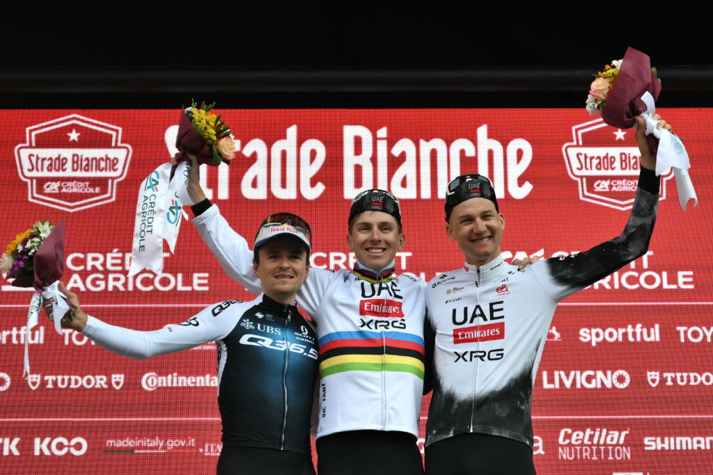 Rien ni personne ne peut troubler Tadej Pogacar lorsqu’il est au départ des Strade Bianche: la superstar du cyclisme mondial a remporté samedi à Sienne pour la troisième fois la classique italienne malgré une chute à 50 kilomètres de l’arrivée et quelques contusions.Comme le Suisse Fabian Cancellara dont il a égalé le record de victoires dans l’épreuve, Pogacar aura dès l’année prochaine un “sterrato”, ces chemins de cailloux blancs qui sillonnent les collines toscanes, à son nom.Un virage aussi va être désormais immanquablement associé au phénomène slovène: celui juste avant le redoutable secteur du Colle Pinzato, où il a chuté, avant de finir après une spectaculaire cabriole au milieu des ronces dans un fossé.Malgré cette sortie de route et des plaies sur le flanc gauche et à la main droite, Pogacar, 26 ans, a vite pu reprendre la course, le maillot et le cuissard arrachés, mais la confiance à peine écornée.Il est vite revenu sur Pidcock, qui, le voyant fondre sur lui, s’est relevé et l’a attendu, puis il a profité du deuxième passage dans le Colle Pinzato pour lâcher le Britannique, vainqueur de l’épreuve en 2023, à 18 kilomètres de l’arrivée.Un an après son impressionnant raid solitaire de 80 kilomètres, Pogacar a certes dû serrer les dents pour rallier la Piazza del Campo en vainqueur, mais il a encore écrit une nouvelle page d’histoire des Strade Bianche.- Moyenne record -Malgré sa chute, Pogacar, qui a devancé sur la ligne d’arrivée Pidcock d’1 min 24 sec et son coéquipier belge Tim Wellens de 2 min 12 sec, a établi un nouveau record avec une moyenne de 40,704 km/h.Le leader de l’équipe UAE est aussi le premier dans l’histoire de la classique, créée en 2007 et qui rêve de devenir un Monument, à s’imposer deux années de suite. “Ce n’est pas la meilleure façon de gagner une course, mais cela reste une victoire”, a-t-il insisté.”Je suis rentré trop vite dans le virage, c’est bizarre, car je connais pourtant bien cette route (…) Après ma chute, j’ai un peu paniqué, j’ai commencé à me poser plein de questions, +Est-ce que mon vélo est OK ? Est ce que ma montre est OK ?+”.”Il y avait plein de trucs qui se bousculaient dans ma tête, mais très vite, je me suis dit qu’il fallait revenir sur la tête et finir l’énorme travail réalisé par l’équipe”, a-t-il poursuivi.Reste à savoir si cette victoire dans la douleur va avoir un impact sur son calendrier.Dans deux semaines, le champion du monde 2024 tentera de remporter Milan-Sanremo (22 mars), l’un des deux Monuments du cyclisme qui se refuse à lui et qui est son grand objectif du début de saison.Cette chute aura en revanche peut-être mis fin à ses envies de s’attaquer pour la première fois à Paris-Roubaix.Si Pogacar n’a pas voulu évoquer son programme, son directeur sportif Mauro Gianetti a écarté tout impact à moyen ou long terme de ces déboires toscans: “Tout va bien, il n’y a rien à craindre”, a-t-il balayé.En l’absence de Julian Alaphilippe, seul Français à s’être imposé à Sienne, en 2019, les coureurs tricolores n’ont pas été épargnés par les chutes et crevaisons.Le meilleur d’entre eux, Jordan Labrosse (Decathlon AG2R), a terminé à la 17e place, à plus de cinq minutes de Pogacar, tandis que Romain Grégoire (Groupama-FDJ), cité au départ parmi les outsiders mais ralenti par une chute, s’est classé 52e. La formation Groupama-FDJ a également perdu, sur chute, David Gaudu, mais son équipe s’est voulue rassurante, évoquant “des plaies superficielles”.
