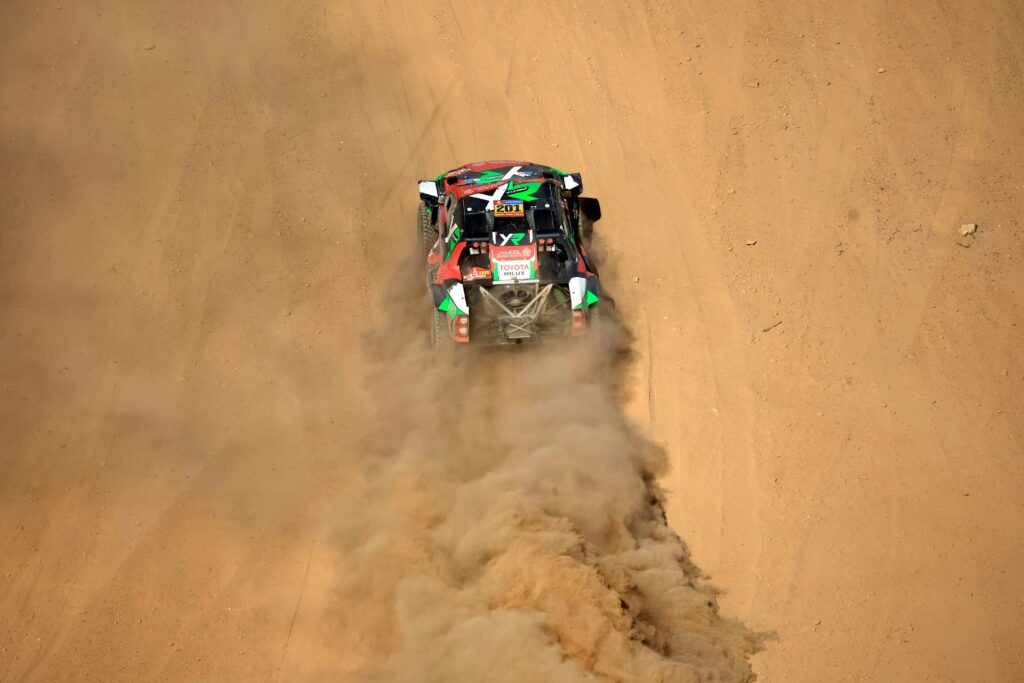 Hommes et machines ont souffert: le pilote saoudien Yazeed al-Rajhi et le motard australien Daniel Sanders ont remporté lundi la 2e étape du rallye Dakar en Arabie saoudite, l’éreintante “48h chrono”.”C’était vraiment très, très dur. J’ai l’impression qu’on en est à notre dixième jour de Dakar”, a réagi Yazeed al-Rajhi à son arrivée au bivouac du célèbre rallye-raid, qui n’a commencé que vendredi et s’étire jusqu’au 17 janvier.Le Saoudien de 43 ans (Overdrive) a bouclé les 967 km de spéciale, répartis sur deux jours, en 10h 56min 54sec, malgré une pénalité de 2min pour excès de vitesse.Il est suivi par le Sud-Africain Henk Lategan à 4min 16sec, qui prend la tête du classement général provisoire.Yazeed al-Rajhi a fait la course en tête presque tout au long des deux journées dans la région de Bisha (sud-ouest). Seul Nasser al-Attiyah l’a dépassé au km 231, avant d’être rattrapé peu avant le km 373. Le Qatarien termine troisième.Pour cette étape de longue haleine, les concurrents devaient bivouaquer dans le désert et ne bénéficiaient pas de l’assistance de leurs équipes à la halte nocturne.Victime d’un tonneau dimanche qui a gravement endommagé sa Ford Raptor, le tenant du titre Carlos Sainz est parvenu à terminer l’étape mais avec 01h 35min de retard sur le leader.Accusant une demi-heure de retard dimanche soir au campement, suite à un problème de ventilateur qui surchauffait son moteur, le Français Sébastien Loeb a largement comblé son retard lundi et termine 7e, à 13min 10sec.- Et de trois pour Sanders -“Ca a bien gazé tout le long. A part quand on était en panne, on n’a pas lâché grand chose”, a déclaré l’Alsacien de 50 ans à l’arrivée, en regrettant les “bouchons” sur le trajet du parcours.Le nonuple champion du monde de rallye a bien cru dimanche que ses problèmes mécaniques allaient lui coûter une nouvelle fois son rêve d’un triomphe au Dakar, qui lui échappe encore à sa neuvième participation.”Quand je suis arrivé au premier +refuel+, je pensais qu’on y restait”, a-t-il confié au campement dans le désert où les pilotes ont dû passer la nuit à mi-étape.La pilote Dacia Cristina Gutiérrez a dû sortir de la 48h chrono au deuxième jour de course, tractée par un camion d’assistance au km 729 en raison d’un problème de direction assistée.En moto, l’Australien Daniel Sanders continue de dominer le rallye en s’imposant pour la troisième fois d’affilée au guidon de sa KTM en 11h 12 min 13sec, 6 min 45 sec devant le Français Adrien Van Beveren (Honda).Cette troisième victoire d’affilée, après le prologue et la première étape, est une série inédite dans la catégorie moto depuis celle réussie par l’Espagnol Joan Barreda en 2017 entre la Bolivie et l’Argentine.Daniel Sanders a l’ambition de devenir le deuxième Australien à remporter le Dakar en moto après Toby Price (2016 et 2018).Il conserve logiquement la tête du classement général provisoire, avec 12 min 36 sec d’avance sur Skyler Howes. La troisième marche est occupée par le Botswanais Ross Branch (Hero), quatre secondes derrière l’Américain.