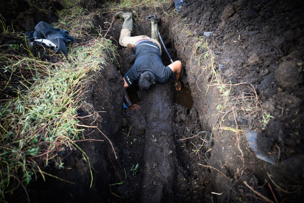 A près d’un mètre de profondeur, au fond d’un trou creusé à la pelle dans la tourbe du marais de Brière (Loire-Atlantique), gît un tronc âgé de plusieurs milliers d’années, témoin paléontologique d’une forêt disparue et de l’histoire du climat.Agenouillés dans la tranchée qu’ils viennent de creuser, deux couteliers extraient un tronc de chêne en cours de fossilisation, appelé morta. Matériau noble de l’artisanat local, il est aussi étudié par des chercheurs comme vestige archéologique.Au Néolithique, une forêt aujourd’hui disparue bordait la Brière. Progressivement noyés par la remontée des niveaux d’eau, les chênes enfouis ont été conservés par la terre humide.L’atelier JHP, installé en bordure de ces 30.000 hectares tapissés de jussie et de roseaux, extrait chaque année quelques-uns de ces troncs couleur ébène pour y tailler des manches de couteaux, sous le sceau d’un accord avec la commission syndicale qui gère une partie du marais.”C’est un bois solide, résistant, qui a été utilisé dans le temps pour fabriquer des charpentes”, raconte Aymeric Lavauzelle, coutelier de l’atelier JHP, les bras maculés de terre.- Modèles climatiques -Cette année, dans le cadre d’un projet de géoarchéologie mené par des chercheurs du conseil départemental de Loire-Atlantique, l’atelier enverra un échantillon de chaque tronc pour analyse et datation.”Les arbres, notamment les chênes, à travers leurs cernes, enregistrent les variations de l’environnement. C’est un petit peu comme si vous aviez un enregistrement de la météo de l’époque”, explique le géoarchéologue Yann Le Jeune. “Cela nous permet de reconstituer l’histoire du climat et de l’environnement, et même d’alimenter des modèles qui servent à comprendre comment pourrait évoluer le climat.”Pour trouver les troncs, les artisans de l’atelier JHP parcourent le marais chaque automne – quand le niveau d’eau n’est pas encore trop haut -, enfonçant à chaque pas de fines sondes en inox dans la tourbe. Lorsqu’ils rencontrent une résistance, ils se rassemblent pour creuser. Ce matin d’octobre, Aymeric Lavauzelle et ses collègues ont entrepris de déterrer un tronc de près de quatre mètres de long.Une fois détouré puis dégagé, il est excavé à l’aide d’un palan fixé à trois poteaux de châtaignier, et tronçonné pour être transporté jusqu’à l’atelier.- Ressource -L’association fondée par les quelques artisans locaux qui travaillent ce morta tente d’obtenir une indication géographique auprès de l’Institut national de la propriété industrielle (INPI), afin que le nom morta soit réservé au chêne enfoui du marais de Brière.”Il y a quelques années, on a vu arriver sur le marché des chênes de marais polonais, ou lituaniens, vendus sous le nom de morta. Le morta est un chêne des marais mais tous les chênes de marais ne sont pas du morta”, défend Jean-Henri Pagnon, fondateur il y a près de quinze ans de l’atelier JHP.Le président du parc régional naturel de Brière, Eric Provost, a par ailleurs récemment demandé à rencontrer la direction régionale des affaires culturelles (Drac) des Pays de la Loire pour évoquer la protection du morta, ressource par essence limitée.Il s’agira d’examiner “s’il y a un sujet ou pas de protection de la ressource, si l’on peut continuer de l’administrer localement, puis voir comment on fait en sorte qu’elle soit durable, dans la quantité disponible, comment on fait en sorte qu’il y ait une visibilité sur une exploitation équilibrée”, explique-t-il.La saison d’extraction terminée, les couteliers retrouvent à plein temps leur atelier. Le morta sèchera trois ans avant d’être travaillé.