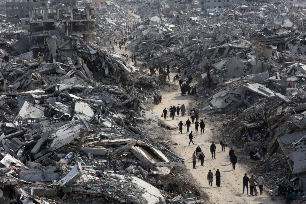Dans un paysage apocalyptique laissé par plus de 15 mois de guerre, des Gazaouis rentrent chez eux, beaucoup pour n’y retrouver que ruines, au premier jour du cessez-le-feu entre le Hamas et Israël.L’immense majorité des 2,4 millions d’habitants du territoire pilonné sans relâche ont été jetés sur les routes, déplacés plusieurs fois dans des camps de tentes improvisés, dans des logements provisoires ou des écoles transformées en refuge.Sur la route, plusieurs confient qu’ils ne pensaient pas “survivre” jusqu’au cessez-le-feu.Tout juste rentré chez lui à Jabalia, épicentre depuis octobre d’une vaste offensive israélienne qui a chassé les habitants vers Gaza-ville, Walid Abou Jiab, est effondré. “Il ne reste plus rien, c’est devenu invivable.” Dans ce secteur du nord de la bande de Gaza, des enfants font rouler un gros réservoir d’eau en plastique qui leur sert à transporter des affaires, des femmes aux visages fermés charrient de gros sacs débordant de vaisselle ou couvertures.Choqué lui aussi par “l’immensité de la destruction” à Jabalia, Fouad Abou Jilboa veut pourtant tourner la page: “grâce à notre détermination, notre foi et notre force, nous reconstruirons”.A travers tout le territoire dévasté et assiégé, dans la poussière des rues défoncées, les colonnes de déplacés progressent, la plupart à pied, au milieu d’un océan gris de décombres, blocs de béton effondrés et ferrailles tordues. Ca et là, des groupes de jeunes hommes chantent, certains formant un “V” de la victoire, devant des photographes de l’AFP, après plus de 15 mois de guerre déclenchée par une attaque du Hamas le 7 octobre 2023.”Je veux simplement rentrer”, s’exclame Wafaa al-Habil, originaire de la ville de Gaza (nord), et réfugiée à Khan Younès, dans le sud, à cause des combats et des bombardements. “Je me suis tant languie de Gaza, et de nos proches.”Passant à côté d’elle au volant d’une voiture pleine à craquer, un homme extatique lance: “c’est la plus grande des joies… Je rentre à Rafah!”, plus au sud, à la frontière avec l’Egypte.- “Epuisés” -Ces célébrations ont toutefois été troublées pendant plusieurs heures.A la suite d’un retard présenté comme “technique” par le Hamas, la trêve est finalement entrée en vigueur à 11h15 GMT, avec 2h45 de retard. La Défense civile de la bande de Gaza a annoncé que 19 personnes avaient été tuées dans l’intervalle par les derniers bombardements israéliens avant que les armes ne se taisent. Mahad Abed était assise devant sa tente d’al-Mawasi (sud), avec ses bagages, “dès l’aube”, attendant son mari pour regagner Rafah.”Il m’a appelée et m’a dit que nous ne reviendrions pas aujourd’hui” à cause des tirs des “hélicoptères”, dit à l’AFP cette femme de 27 ans.”Nous sommes épuisés”, souffle-t-elle, “je ne veux pas passer une nuit de plus dans cette tente!”Dans le chaos ambiant, le Hamas qui affirme vouloir maintenir l’ordre a déployé la police municipale. Ses patrouilles, comme les pick-up chargés de combattants armés paradant dans certains secteurs, laissent indifférents de nombreux marcheurs, aux traits tirés.- Camper avant de reconstruire -A Rafah aussi, à la pointe sud de Gaza, Mohammed al-Rabayaa affirme n’avoir trouvé que des “ruines” là où étaient les maisons de sa famille. Mais il se prépare à y planter sa tente: “on vivra ici jusqu’à ce que nos maisons soient reconstruites”.D’autres habitants restent muets à la vue de quartiers entiers dévastés. La guerre a provoqué à Gaza d’après l’ONU un niveau de destructions “sans précédent dans l’histoire récente”, augurant, selon les experts, d’une très longue reconstruction au coût exorbitant.Selon l’accord de cessez-le-feu, les habitants du tiers nord du territoire réfugiés au sud ne pourront rentrer qu’après la première semaine de la trêve et le retrait prévu des soldats israéliens de plusieurs secteurs. Dans l’attente, l’armée coupe toujours en deux le territoire, au niveau du “couloir de Netzarim” au sud de la ville de Gaza. Mais déjà, à Gaza-ville, des pelleteuses ont commencé à déblayer une partie des décombres.