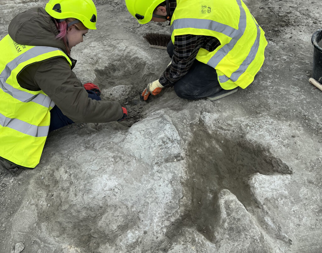 Près de 200 empreintes de dinosaures ont été découvertes cet été dans une carrière de l’Oxfordshire (sud-est de l’Angleterre), sur le plus grand site jamais révélé au Royaume-Uni, ont annoncé jeudi les universités d’Oxford et Birmingham.Ces impressionnantes traces de pas laissées il y a 166 millions d’années par cinq dinosaures seront dévoilées dans l’émission d’archéologie “Digging for Britain” le 8 janvier sur la chaîne BBC Two.La plus longue des pistes tracées par l’un d’eux s’étend sur 150 mètres de long dans la carrière de Dewars Farm, véritable “autoroute de dinosaures” où herbivores et carnivores se sont croisés à l’époque du Jurassique moyen.”Il est très rare d’en trouver en si grand nombre au même endroit, et de découvrir des pistes aussi étendues”, a indiqué à l’AFP Emma Nicholls, paléontologue spécialiste des vertébrés au musée d’histoire naturelle de l’université d’Oxford.Il pourrait aussi s’agir, selon elle, d’un des plus grands sites d’empreintes au monde.Les premières d’entre elles ont été découvertes en juin par Gary Johnson, un ouvrier qui travaillait avec une pelleteuse dans cette carrière exploitée par une entreprise, Smiths Bletchington.”J’ai réalisé que j’étais la première personne à les voir, c’était surréaliste”, a-t-il confié à la BBC.Dans les jours qui ont suivi, une centaine de personnes ont participé à des fouilles supervisées par les deux universités, sur le site de ce qui était un ancien lagon d’eau chaude et peu profonde.Les scientifiques ne savent pas exactement ce qui a permis de conserver ces traces laissées dans la vase, “mais il se pourrait qu’une tempête ait déposé des sédiments sur les empreintes, ce qui a permis de les figer”, a indiqué Richard Butler, paléobiologiste de l’université de Birmingham.Quatre traces ont été laissées par des sauropodes, des dinosaures herbivores au long cou, probablement de l’espèce Cetiosaurus. Ces animaux mesuraient jusqu’à 18 mètres de long, et leurs empreintes ressemblent à celles d’un éléphant – en beaucoup plus grand.La cinquième trace a probablement été laissée par un mégalosaure, le plus grand prédateur du Jurassique en Angleterre, qui marchait sur deux pattes et dont on distingue nettement les trois griffes dans le sol.Cette carrière a été abondamment photographiée par drone pour créer des modèles 3D et conserver cette découverte exceptionnelle.En 1997, un autre site avec une quarantaine d’empreintes avait été découvert à proximité, mais il n’est plus accessible aujourd’hui et les éléments collectés à l’époque sont limités.