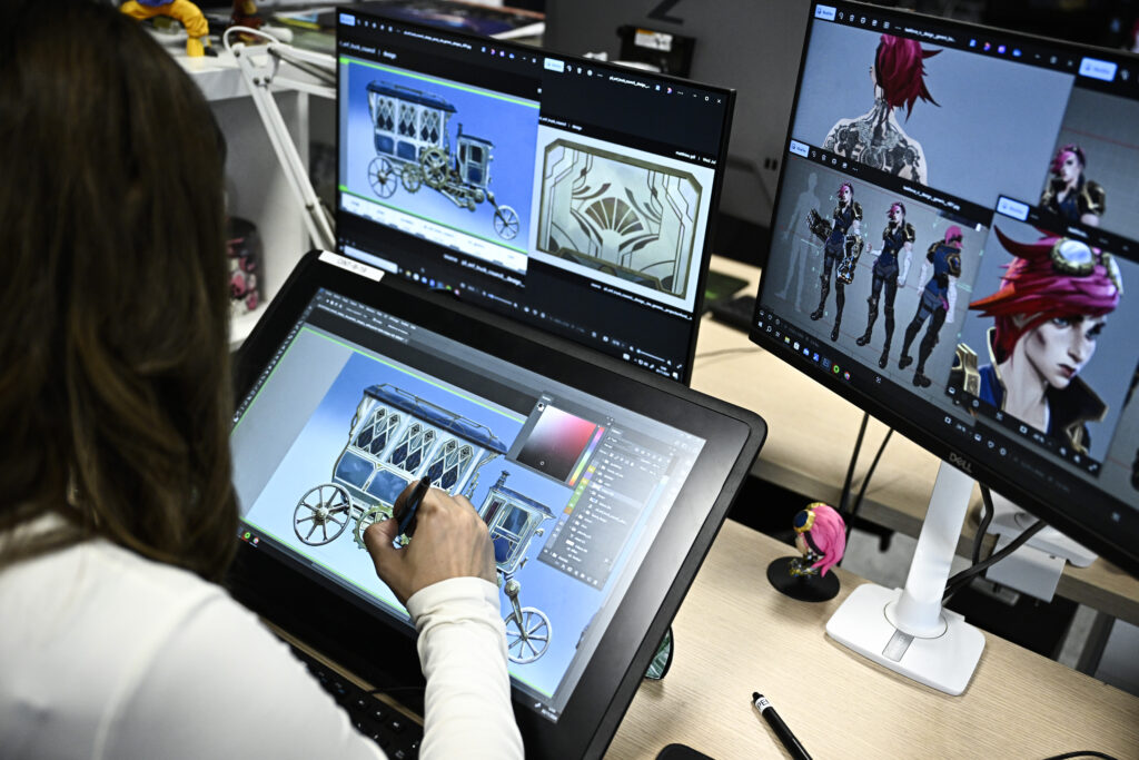 Lancé en 2009 comme un “petit studio sans prétention”, le Français Fortiche espère reconquérir le monde avec la mise en ligne samedi de la saison 2 d'”Arcane”, série animée adaptée du jeu vidéo “League of Legends”.Destinée aux plus de 16 ans, cette fiction au style rétro-futuriste suit Vi et Jinx, deux soeurs qui se déchirent sur fond de conflit entre Zaun, territoire des bas-fonds, et Piltover, riche cité des dominants, à une époque où magie et technologie s’entremêlent.Fidèle à l’univers du titre du studio Riot Games qui l’a produite et écrite, acclamée pour sa patte graphique mêlant 2D et 3D propre à Fortiche, la saison 1 a créé la surprise en dominant le classement des séries Netflix pendant trois semaines dans 65 pays. Avant de glaner une multitude de récompenses outre-Atlantique, dont quatre Emmy Awards.De quoi mettre la pression avant l’arrivée samedi de neuf nouveaux et derniers épisodes ? “On aimerait bien renouveler cette réussite”, reconnaît auprès de l’AFP Pascal Charrue, cofondateur de Fortiche Production et coréalisateur d'”Arcane”.”Mais on n’a pas à rougir de nos images. On a essayé d’atteindre et même de dépasser le niveau d’exigence de la saison 1″, assure-t-il. Cette “exigence”, caractéristique selon lui de la “Fortiche touch”, est illustrée par le budget élevé accordé au projet.- “A la main” -Huit ans de travail, 12 heures de contenus, 700 collaborateurs… Avec un total avoisinant 250 millions de dollars, selon le magazine américain Variety, pour la production et la promotion des deux saisons, c’est la série d’animation la plus chère jamais réalisée.Grâce à elle, Fortiche, lancé dans l’appartement d’un de ses trois fondateurs, a changé de dimension. Le studio, désormais basé à Paris, Montpellier et Las Palmas, aux Canaries, a ainsi employé jusqu’à 450 personnes en simultané (contre 160 actuellement).Les animateurs font tout “à la main”, produisant chacun moins d’une demi-seconde de film par jour, détaille Martial André, superviseur de l’animation, lors d’une visite du studio parisien. Telle une “marionette”, chaque personnage 3D est doté “d’environ 300 contrôleurs” sur le visage et le corps, des sourcils aux phalanges, les animateurs se filmant au préalable pour “comprendre les mécanismes corporels” à reproduire, déroule-t-il. De même, “chaque décor, c’est une peinture (numérique) faite à la main”, insiste Barthélémy Maunoury, directeur créatif et co-réalisateur d'”Arcane”, avec “beaucoup de références à l’Art Déco et à l’Art Nouveau”.- “Style unique” -Il y a aussi une volonté de “créer de nouvelles directions artistiques” lors de séquences particulières recourant par exemple au fusain, relève la productrice Christine Ponzevera.”On sent toujours que l’artiste derrière l’image se soucie vraiment de ce qu’il fait”, déclare à l’AFP le co-créateur d'”Arcane” et directeur créatif de Riot Games Christian Linke, pour justifier la collaboration entamée avec Fortiche dès 2013.A l’époque, le studio tricolore, qui depuis a également réalisé la série Marvel “Rocket & Groot” (2017), se fait la main sur des publicités et des clips, notamment pour le groupe britannique Gorillaz.Séduit par l’un d’entre eux (“La gaviota” du groupe français Limousine), Christian Linke lui confie une vidéo musicale autour de Jinx, personnage de “League of Legends” qui compte plus de 130 millions de vues à date. D’autres projets suivent, dont un clip pour le groupe de K-Pop virtuel K/DA (613 millions de vues) jusqu’à la consécration “Arcane”. “Il y avait des studios plus établis en Amérique (…) qui auraient été un pari plus sûr”, se rémémore Christian Linke. Mais Fortiche a “un style si unique, un instinct créatif et une passion” tels que “cela méritait d’investir et de les aider à se développer”, ajoute-t-il, alors que Riot Games détient une participation minoritaire dans le studio.Si “Arcane” s’arrêtera après la saison 2, des histoires autour d’autres personnages sont envisagées, selon Christian Linke.