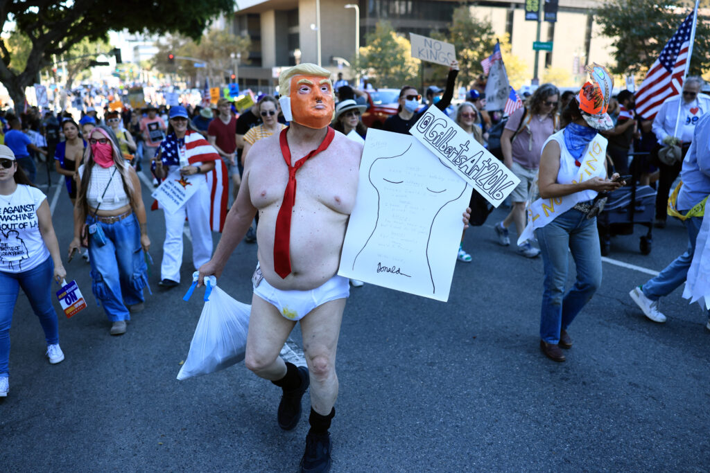 Des Américains de tout âge sont descendus dans les rues samedi en nombre pour faire entendre leur opposition à Donald Trump lors d’une journée de mobilisation nationale dépeinte par la droite comme un mouvement “de haine de l’Amérique”.De New York à Los Angeles, en passant par des petites villes du centre des Etats-Unis, environ 7 millions de personnes ont participé à plus de 2.700 rassemblements, selon les organisateurs.Cette coalition d’associations ralliées sous le slogan “No Kings” (“Pas de rois”), avait déjà tenu mi-juin une mobilisation très suivie, avec selon elles environ 5 millions de manifestants, un chiffre impossible à vérifier. Il s’agissait néanmoins du plus grand mouvement de contestation observé dans le pays depuis le retour au pouvoir du républicain.Dans d’importants cortèges ou par dizaines sur le bord des routes, les manifestants se sont mobilisés ce week-end dans une atmosphère joviale pour dénoncer ce qu’ils qualifient de “prise du pouvoir autoritaire” de Donald Trump et de ses proches.”Ils sont en train de détruire la démocratie”, dénonce Isaac Harder, un lycéen rencontré par l’AFP à Washington, où entre 8.000 et 10.000 personnes ont manifesté, selon les estimations. “Ce n’est pas l’Amérique, c’est du fascisme”, ajoute-t-il.”Nous sommes en pleine crise face à la cruauté de ce régime, à son autoritarisme”, abonde Collen Hoffman, une retraitée venue manifester à New York, où plus de 100.000 personnes ont défilé “pacifiquement”, selon la police locale. – Déguisements -Au Texas et en Floride, fiefs des conservateurs, des manifestations se sont également tenues.”Combattez l’ignorance, pas les migrants”, pouvait-on lire aussi sur une pancarte à Houston (Texas), où près d’un quart de la population est composée d’immigrants, selon les données d’un think thank spécialisé.Face au camp républicain qui les accuse de promouvoir “la haine de l’Amérique” et est allé jusqu’à les assimiler à des terroristes, les manifestants ont répliqué sur le ton de l’humour.Certains d’entre eux ont ainsi défilé vêtus de costumes incongrus de pingouin, de homard ou encore d’hippopotame, d’autres brandissant fièrement le drapeau américain.A travers le pays, diverses pancartes montrant Donald Trump grimé en Staline, en reine d’Angleterre ou encore en Roi Soleil ont été observées dans les cortèges, où résonnaient des chants appelant le républicain à quitter le pouvoir.En réponse, le président américain a publié une série de vidéos générées par intelligence artificielle sur sa plateforme Truth Social, le représentant sous les traits d’un roi.Dans l’une d’elles, il apparaît coiffé d’une couronne et aux commandes d’un avion de chasse qui largue ce qui semble être des excréments sur des manifestants anti-Trump.- “Culte de la personnalité” -Depuis son retour au pouvoir en janvier, Donald Trump a bouleversé l’équilibre démocratique américain en empiétant sur les pouvoirs du Congrès et des Etats et en menaçant ses opposants de représailles judiciaires, autant d’actions dénoncées avec force samedi.”Comment cela a-t-il pu arriver?”, s’émeut auprès de l’AFP Jennifer Bryant, une avocate rencontrée à Houston au Texas. “Les choses évoluent si rapidement, ils détruisent nos institutions, licencient des fonctionnaires et s’emparent des fonds publics”.Cette nouvelle journée de mobilisation survient par ailleurs en pleine paralysie budgétaire de l’Etat fédéral et alors que Donald Trump a déployé des militaires dans plusieurs fiefs démocrates pour selon lui lutter contre l’immigration illégale et la criminalité.En signe de contestation, plusieurs rassemblements se sont tenus dans les villes où il a envoyé la Garde nationale, telles que Chicago ou Los Angeles.Dans le centre-ville de Los Angeles, la police a tiré des gaz lacrymogènes tard samedi soir pour disperser la foule qui comptait des manifestants “No Kings”, a rapporté le Los Angeles Times. “Après que des milliers de personnes se soient rassemblées pour exprimer pacifiquement leurs droits constitutionnels du Premier Amendement plus tôt dans la journée, près d’une centaine d’agitateurs ont défilé jusqu’à Aliso et Alameda” où ils ont utilisé des lasers et des lumières clignotantes de taille industrielle, a déclaré la division centrale du LAPD (Los Angeles Police Department) sur X.Plusieurs figures de gauche, comme Bernie Sanders ou encore le chef des sénateurs démocrates Chuck Schumer, étaient présents dans les cortèges.”Nous avons un président qui veut toujours plus de pouvoir entre ses mains et entre celles de ses acolytes oligarques”, a déclaré M. Sanders près du Capitole à Washington.