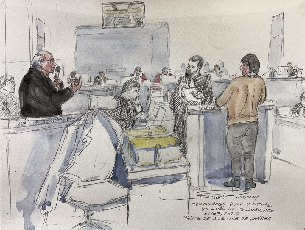 A la barre de la cour criminelle du Morbihan vendredi, Amélie Lévêque regarde dans les yeux avec une colère feutrée le pédocriminel Joël Le Scouarnec qu’elle accuse de l’avoir violée quand elle avait neuf ans: “Je veux savoir.”Accusé pour des violences sexuelles sur 299 patients, l’ex-chirurgien a détaillé dans ses carnets les viols et agressions sexuelles commis sur ses victimes, qui étaient mineures dans leur grande majorité à l’époque des faits, de 1989 à 2014.Mais sur Amélie Lévêque, 43 ans, opérée de l’appendicite en 1991 à l’âge de neuf ans, le médecin ne note qu’une ligne, se remémorant un regard scabreux sur la “fente” de la petite fille.Les regards accompagnés de pensées pédophiles n’étant pas réprimés par la loi, les enquêteurs ne la contactent pas.Carré blond, fines lunettes et foulard gris, Amélie raconte comme elle apprend en 2019 par la presse que le médecin, interpellé deux ans plus tôt pour le viol de sa voisine de six ans, est désormais soupçonné de viols et agressions sexuelles sur plusieurs centaines de personnes.En fait-elle partie? Elle dit avoir aussitôt appelé l’avocate de la jeune voisine, Me Francesca Satta. Qui lui confirme que le chirurgien mentionne bien une “Amélie” opérée à Loches (Indre-et-Loire).”Moi, mon carnet, il ne parle que d’un regard, alors (Joël le Scouarnec) il va avoir un regard sur ma vie”, lance-t-elle, la voix qui résonne, presque défiante, dans le silence du tribunal de Vannes.- “Haine et dégoût” -Phobie des hôpitaux, peur panique des aiguilles, anorexie, pleurs sans raison, épisodes dépressifs… Incapable de dormir sans somnifères depuis 2019, Amélie Lévêque égrène devant la cour les troubles qui l’affectent depuis son appendicectomie.De son opération, la quadragénaire ne se rappelait que d’un chirurgien qui “était méchant et m’avait fait mal”. Des séances d’EMDR (désensibilisation et retraitement par les mouvements oculaires) lui permettent de retrouver le souvenir d’une main sur son bas-ventre et d’une “douleur rapide dans l’entrejambe”: une pénétration digitale vaginale, mais aussi, peut-être “un toucher rectal” imposé.Elle se souvient d’avoir eu froid, et précise avoir eu une bronchite à la suite de son opération.Sa voix se brise. Amélie Lévêque sanglote, paraît soudain plus menue qu’elle ne l’est. Puis elle se redresse et demande à la cour: “J’aimerais m’adresser à lui, si vous le permettez.”Lui, rigide sur son banc dans le box, ne bouge pas, écoute attentivement. Elle se tourne vers lui.”Vous m’avez violée alors que j’étais une petite fille de neuf ans tellement joyeuse, et vous avez mis en moi tant de troubles, de phobies inexpliquées et enfouies”, accuse-t-elle.”Je vous regarde et j’ai un mélange de haine, de dégoût, une envie de vomir parce que malgré tout, vous me faites de la peine, vous ressemblez à un grand-père.”Les larmes affluent. “Je vous demande de me redonner ma joie de vivre parce que j’en ai vraiment besoin pour continuer”, supplie celle qui “attend ce moment depuis cinq ans.”- “Les types comme moi” -Poursuivi en ce qui concerne Amélie Lévêque pour viol sur mineur de moins de 15 ans, Joël Le Scouarnec avait demandé un non-lieu pour insuffisances de charge au motif qu’il n’a écrit, dans ses carnets, “qu’un acte de contemplation, sans contact physique”.Mais, lorsque la présidente Aude Buresi lui donne la parole, l’ex-chirurgien fait volte-face. “Je ne mets absolument pas en doute les souvenirs qu'(Amélie Lévêque) a eus après sa séance d’EMDR”, dit-il.”Ça ne peut pas être inventé. Il s’est donc passé quelque chose, ce qu’elle a pu évoquer, et qui ne peut que correspondre à une réalité”, insiste l’accusé qui, comme d’habitude, ne se souvient, lui, “de rien”.”Les types comme moi, faut pas les laisser agir”, conclut-il.L’audience se poursuit. Amélie Lévêque laisse la place à une autre victime du médecin.A l’extérieur, l’attendent ses parents qui la serrent dans ses bras, et un parterre de caméras et micros. Depuis l’annonce du procès, et même avant, elle a été l’une des rares à accepter d’être interviewée, désirant que “la honte change de camp”.Sur les marches du tribunal, la quadragénaire affiche un grand sourire. Elle se sent “vide, mais libre.””Libre d’être heureuse”, ajoute-t-elle après un court silence.