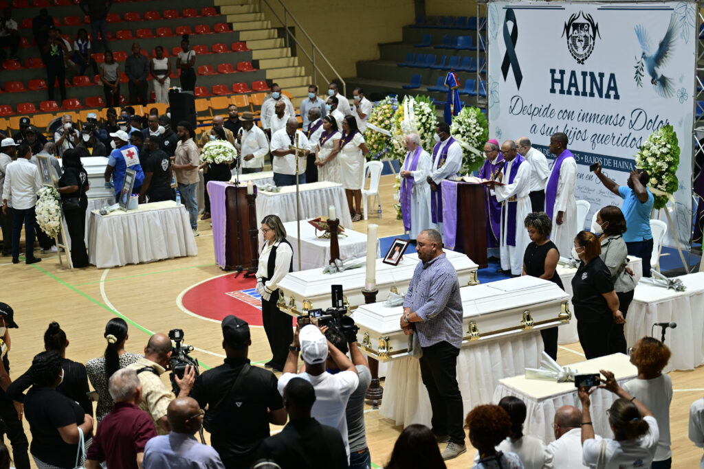 Face à deux cercueils blancs posés sur le terrain de basket-ball transformé en chapelle, des personnes debout assistent dans la douleur à une messe de funérailles de leurs proches tués lors de l’effondrement du toit de la discothèque de Saint Domingue.”Haina dit adieu avec une immense douleur à ses enfants bien-aimés”, est écrit sur un grand panneau. Vingt cercueils se succéderont jeudi sur le parquet de l’enceinte sportive de cette ville en périphérie de la capitale dominicaine.A l’entrée, une grande affiche avec les photographies et les noms des défunts. Les corbillards ornés d’arrangements se fraient un chemin à travers la foule.”Avec qui allons-nous vivre, qui va nous emmener? Luis ne viendra plus nous chercher, Luis ne nous cherchera plus!”, crie une femme inconsolable. Vingt-cinq des 221 victimes recensées du drame survenu mardi sont originaires de Haina, ville toute proche du lieu de la catastrophe. Parmi elles, la star du merengue Rubby Perez, qui se produisait sur scène (son cercueil n’était pas dans le stade) ou l’ancien professionnel de baseball Tony Blanco, qui a joué aux Etats-Unis et au Japon.Sur le cercueil de Tony Blanco a été déposé une photographie de lui avec la tenue des BayStars de Yokohama, où il a joué en 2013 avant de prendre sa retraite, ainsi qu’un trophée. Les cérémonies s’enchainent. Deux par deux. Brèves. Les proches se tiennent debout près des cercueils, six prêtres prient dans l’odeur d’encens. – “Un vide” -“Dire qu’il s’agit d’un coup dur serait un euphémisme, vraiment cette catastrophe a touché les sensibilités de notre commune”, assure Fernando Nina, 59 ans, directeur d’une école de la région. “C’est incroyable comment, dans certaines familles, trois, quatre, voire cinq membres sont morts. Il y a une atmosphère de tristesse et de profond chagrin”. Santo José Germán a perdu quatre membres de sa famille dans la tragédie. Il n’arrive toujours pas à réaliser. Dans un premier temps, il n’a pas cru à l’effondrement du toit de la discothèque le Jet Set lorsque sa femme lui en a parlé en pleine nuit. “Une douleur, qui ne s’apaise pas, je veux penser que ce n’est pas réel, et pourtant c’est la réalité”, a-t-il confié à l’AFP. “La vie se perd en une seconde”. Félix Silvestre joue de sa trompette tout au long des cérémonies. “Il faut trouver du courage là où il n’y en a pas, car là-bas (au Jet Set) sont morts des gens avec qui j’ai grandi depuis l’enfance, beaucoup de gens”, raconte le professeur de musique à la maison de la culture de Haina. Ses doigts tremblent, il s’arrête de jouer pour respirer et essuyer des larmes, puis reprend une mélodie fréquemment jouée aux enterrements: “Quand un ami s’en va… il laisse un vide”.