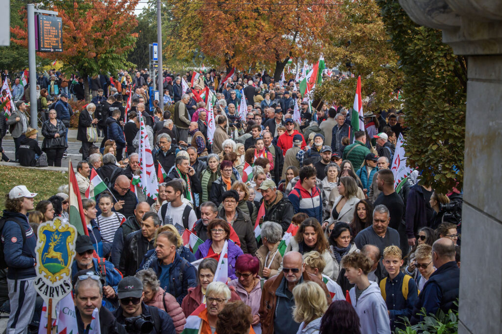 Des dizaines de milliers de Hongrois se sont rassemblés jeudi à Budapest lors de manifestations rivales du gouvernement et de l’opposition, chacun cherchant à mobiliser ses soutiens, à six mois de législatives qui s’annoncent disputées. Le nationaliste Viktor Orban, 61 ans, fait face à la concurrence de l’opposition la plus dangereuse pour lui, depuis quinze ans qu’il est au pouvoir comme Premier ministre. Le chef de l’opposition, le conservateur Peter Magyar, 44 ans, fait campagne contre ce qu’il appelle l’élite politique “corrompue” de ce pays de 9,6 millions d’habitants, situé au coeur de l’Europe. M. Orban, qui entretient des liens avec les présidents américain Donald Trump et russe Vladimir Poutine, s’est posé en protecteur face à la guerre et s’est réjoui de voir le président américain proposer récemment un sommet avec son homologue russe à Budapest.Il a accusé Bruxelles, à la fin de sa “marche pour la paix”, d’entraver la “mission” du locataire de la Maison Blanche pour obtenir un cessez-le-feu en Ukraine.”Bruxelles a décidé de faire la guerre”, a déclaré le dirigeant face à ses partisans brandissant des drapeaux hongrois au pied du parlement. “Si Bruxelles n’entravait pas le président américain, la guerre serait déjà terminée”, a-t-il ajouté.Il a accusé ses opposants de “soutenir la guerre en soutenant un changement de gouvernement”, alors que dans la foule, une banderole affichait le slogan “Nous ne voulons pas mourir pour l’Ukraine”.”Je soutiens vraiment la tenue de ce sommet pour la paix”, a affirmé à l’AFP Istvanne Ambrozi, une retraitée de 72 ans.” Je suis convaincue que tout s’y passera bien”.- “Changement de système” – Viktor Orban a l’habitude d’organiser de tels rassemblements, qu’il avait baptisés “marches pour la paix” bien avant l’invasion russe de l’Ukraine en 2022.Cette fois, la manifestation a lieu le jour de la fête nationale commémorant le Soulèvement de 1956 contre le joug soviétique, alors écrasé dans le sang par les troupes du Kremlin.Peter Magyar, qui a avait durci sa position contre la Russie ses derniers mois, organise un défilé concurrent, appelé “marche nationale”. Il a aussi réussi à faire venir des dizaines de milliers de personnes à Budapest, défilant derrière une banderole appelant à un “changement de système”. Il s’adressera à l’assemblée plus tard dans la journée, sur la place des Héros.Son parti, Tisza, est actuellement placé en tête des intentions de vote, selon la plupart des sondages.Mais l’annonce la semaine dernière du choix de Budapest par Donald Trump pour un sommet avec son homologue russe Vladimir Poutine a redonné des couleurs à M. Orban. Car si un tel sommet a finalement été repoussé sine die par Donald Trump, sa proposition a virtuellement placé la capitale hongroise au centre de la diplomatie mondiale, au bénéfice de ce soutien indéfectible du locataire de la Maison Blanche.M. Orban, dont le pays est membre de l’Otan et de l’UE, doit partir jeudi pour un sommet européen à Bruxelles où il affrontera ses homologues de l’UE sur la question du soutien à l’Ukraine.Sa formule “pour la paix” est, selon Agoston Mraz, directeur de l’institut de réflexion Nezopont, soutenue par les Hongrois “bien au-delà de sa base” et le fait apparaître comme un modérateur.Même l’opposition a été obligée d’accueillir favorablement l’annonce du potentiel rendez-vous, tout en avertissant qu’une paix “véritable” n’était envisageable qu’en invitant l’Ukraine à la table des négociations.