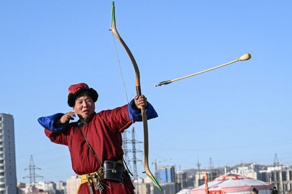 Tir à l’arc, yourtes et musique: à Oulan-Bator, la capitale la plus froide du monde, un inédit festival de culture nomade attire les Mongols urbains, qui viennent braver les températures extrêmes pour redécouvrir leurs traditions.D’une durée de sept jours, cet événement organisé dans un grand parc tient sa première édition et vise à dynamiser le tourisme pendant les rudes mois d’hiver, lorsque le mercure peut descendre, dans certaines régions de Mongolie, jusqu’à -40°C.Si Oulan-Bator bénéficie d’une température plus clémente cette semaine (avec des minimales aux alentours de -20°C), le vent piquant fouette les sculptures de glace hautes de plusieurs mètres, tandis que les visiteurs s’engouffrent dans des yourtes représentant différentes provinces de Mongolie.”Rien ne m’a totalement surpris (…) C’est juste agréable de redécouvrir et de rafraîchir nos connaissances sur notre culture traditionnelle”, affirme à l’AFP Darkhan Altantsetseg, une habitante d’Oulan-Bator.”C’est une belle façon de nous rappeler à quel point notre culture est riche.”A l’extérieur des yourtes, des chameaux et rennes déambulent. Des enfants s’élancent sur des toboggans de glace ou glissent sur une piste gelée à bord de luges doublées de fourrure.En costumes traditionnels, des archers et des fauconniers qui pratiquent la chasse à l’aigle font des démonstrations de leurs talents.- Musique et mouton -A côté, une petite foule est rassemblée autour d’un jeu de shagai, où les joueurs lancent un palet pour tenter de toucher des osselets disposés sur une surface gelée.Malgré l’épaisseur des parois, le bourdonnement des instruments de musique s’échappe des yourtes.Dans l’une d’elles, un trio de Mongols d’ethnie kazakhe, venus de la province de Bayan-Ölgii, la plus à l’ouest du pays, interprète des chansons tandis que des visiteurs se font servir du thé au lait.”Quand les habitants d’Oulan-Bator entrent dans notre yourte, ils sont émerveillés par son luxe et par sa différence avec la plupart des autres yourtes mongoles”, explique Badein Huatbyek, un musicien, qui souligne notamment l’absence de colonnes centrales dans cette habitation finement décorée.Lui-même a été surpris en arrivant dans la capitale.”J’ai été étonné de voir à quel point la ville s’est développée. La dernière fois que j’étais là, c’était il y a trois ou quatre ans”, explique-t-il.A l’approche du Nouvel An lunaire, le 1er mars, de nombreuses yourtes ont dressé une table de banquet, avec des moutons rôtis et des piles de biscuits.- Lait de jument -Coiffées de bonnets rouges et vêtues de robes aux motifs éclatants, deux femmes âgées distribuent de l’airag (du lait de jument fermenté) avant de se lancer dans une danse traditionnelle de l’ouest de la Mongolie.Juste à côté, un percussionniste utilise des os de mouton pour marquer le rythme tandis qu’un artiste spécialiste du chant guttural, typique de la Mongolie, interprète une ode à la nature.De nombreux habitants d’Oulan-Bator avaient eux aussi revêtu des habits traditionnels, parés de fourrures et de soies, pour arpenter les allées glissantes du parc.D’après la Banque mondiale, un quart des 3,4 millions d’habitants de la Mongolie mènent encore une vie nomade, mais des centaines de milliers de personnes se sont installées à Oulan-Bator durant les deux dernières décennies.Venu avec ses deux filles, Byambasure, un économiste spécialisé dans l’agriculture, explique à l’AFP que son métier l’amène souvent à travailler dans les zones rurales.Mais “mes enfants sont nés et ont grandi à Oulan-Bator, donc ils ne connaissent pas très bien nos traditions et notre culture”, explique ce père âgé de 50 ans.”C’est une belle opportunité pour elles d’apprendre. Je suis content de les avoir amenées ici.”