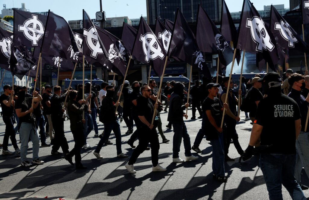 Environ 1.000 militants d’ultradroite, selon la préfecture de police de Paris, ont défilé samedi après-midi dans la capitale sans incident notable à l’appel d’un “Comité du 9-mai” pour commémorer la mort de l’un d’entre eux, Sébastien Deyzieu, décédé accidentellement en 1994.Derrière une banderole “Sébastien Deyzieu Présent”, ces militants, souvent vêtus de noir et le visage dissimulé, ont marché entre Port-Royal et la rue des Chartreux (VIe arrondissement), où le militant de L’Oeuvre française avait trouvé la mort il y a 31 ans faisant une chute accidentelle lors d’une manifestation.Les militants, qui ont défilé au son de tambours, entonnaient le slogan d’ultradroite “Europe Jeunesse Révolution”, selon un journaliste de l’AFP.Environ 1.000 personnes ont participé à la marche, selon la préfecture de police (PP) de Paris.Certains participants arboraient des croix celtiques ou des tee-shirts évoquant l’iconographie nazie, ainsi que la mouvance hooligan.Encadré par un service d’ordre encagoulé et surveillé par d’importants effectifs des forces de l’ordre, le défilé s’est déroulé sans incident notable, malgré quelques tirs de mortier par des contre-manifestants d’ultragauche à proximité du cortège lors de son passage à Montparnasse.Arrivés rue des Chartreux, les militants, dont certains venus d’Allemagne, Italie, Hongrie ou encore Espagne, se sont recueillis par petits groupes à proximité de l’immeuble d’où avait chuté le militant. L’un d’eux a ensuite pris la parole pour évoquer la mémoire de Sébastien Deyzieux, mais aussi délivrer un discours. Au total, 13 personnes, dont des contre-manifestants, ont été interpellées, selon la préfecture de police de Paris. La préfecture avait initialement interdit cette manifestation annuelle en arguant d’un risque de troubles à l’ordre public.Mais le tribunal administratif de Paris a suspendu cette mesure, estimant dans un jugement rendu vendredi soir que “la même manifestation organisée l’année dernière n’avait donné lieu à aucune poursuite de manifestants”.En 2023, le défilé du “Comité du 9-mai”, qui n’avait pas été interdit, avait déclenché une vive polémique.Quelque 600 militants d’ultradroite, en majorité habillés de noir et le visage masqué, avaient défilé dans les rues de Paris en exhibant des drapeaux avec des croix celtiques et en scandant “Europe jeunesse révolution”, le slogan du syndicat d’étudiants d’extrême droite Gud (Groupe union défense).Le Gud a été dissous en juin 2024.