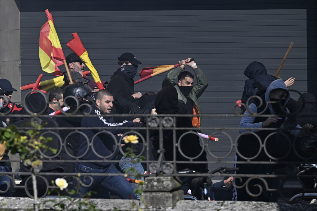 La police espagnole a annoncé dimanche avoir interpellé 17 personnes dans la ville de Vitoria (nord), après des violences entre partisans et opposants de l’ancien dictateur Franco, à l’occasion de la fête nationale.Ces violences surviennent à quelques semaines du 50e anniversaire du décès de celui qui a dirigé la pays d’une main de fer entre 1939 et 1975.Les autorités ont annoncé avoir interpellé 17 personnes soupçonnées de “trouble à l’ordre public”.Une vingtaine de policiers ont subi de “légères contusions” et les manifestants blessés ont été pris en charge sur place par du personnel médical, indique la police dans un communiqué.La Phalange, parti fasciste qui se réclame de l’héritage de la Phalange espagnole fondée en 1933 et pilier du régime franquiste, a tenu dimanche un rassemblement dans le Pays basque, communauté autonome du nord du pays. Le parti est venu affirmer sa défense de “l’unité de l’Espagne” à l’occasion de la fête nationale, dans une région berceau historique d’un mouvement séparatiste.Des dizaines de militants se sont rassemblés sur une place centrale de Vitoria, faisant des saluts fascistes et brandissant des drapeaux espagnols, avant que des contre-manifestants encagoulés n’apparaissent, a constaté un journaliste de l’AFP.Les groupes rivaux se sont mutuellement jeté du mobilier urbain, des chaises, ont incendié des déchets et échangé des tirs de mortiers, avant de subir les charges de la police.