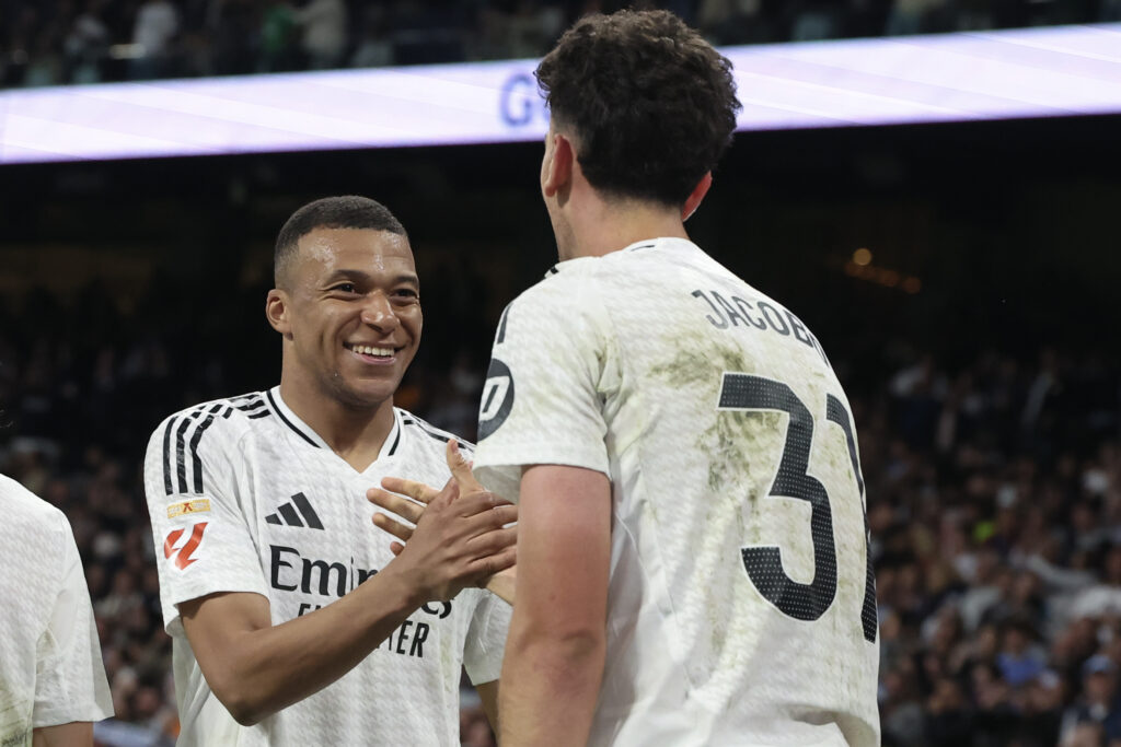 Mené 1-0 jusqu’à la 68e minute, le Real Madrid a renversé Majorque (2-1) dans les dernières secondes mercredi et repoussé le sacre du FC Barcelone, qui devra l’emporter jeudi face à l’Espanyol pour être mathématiquement champion.Longtemps apathique et sans idées, le club madrilène (2e, 78 points) a été relancé dans la partie par l’attaquant français Kylian Mbappé (68e), auteur de sa 40e réalisation de la saison toutes compétitions confondues. Les Merengues ont ensuite arraché la victoire à la 95e minute grâce à un but du jeune défenseur Jacobo Ramon sur la dernière action du match.Un succès in extremis qui oblige le Barça (1er, 82 points) à s’imposer jeudi (21h30) sur la pelouse de son voisin de l’Espanyol Barcelone (16e, 39 points) pour décrocher officiellement le 28e sacre de son histoire.Sur la pelouse d’un stade Santiago Bernabéu clairsemé, le géant espagnol, champion d’Espagne et d’Europe en titre, a longtemps buté sur une défense adverse compacte et le gardien remplaçant des visiteurs, Leo Roman, auteur de dix parades décisives.Il a fallu un nouvel éclair de Mbappé, son 28e de la saison en championnat, pour réveiller une équipe madrilène décimée par les blessures et qui comptait pas moins de douze absents mercredi: Dani Carvajal, Eder Militao, Antonio Rüdiger, Vinicius Junior, Rodrygo, David Alaba, Lucas Vazquez, Andriy Lunin, Brahim Diaz et les Français Ferland Mendy et Eduardo Camavinga, tous blessés, ainsi qu’Aurélien Tchouaméni, suspendu.C’est ensuite le jeune défenseur Jacobo Ramon, 20 ans, titularisé pour la première fois de sa carrière en Liga, qui a offert la victoire et un (très) mince espoir de conserver son titre à la Maison Blanche, plus proche cependant d’une saison sans trophée majeur, hormis la Supercoupe d’Europe et la Coupe intercontinentale.Dans les autres rencontres de cette 36e journée, la victoire d’Alavés (17e, 38 points) contre Valence (11e, 45 points), 1-0, et celle de Villarreal (5e, 64 points), vainqueur 3-0 face à Leganés (18e, 34 points), ont condamné Las Palmas (19e, 32 points) officiellement relégué en deuxième division, avec Valladolid (20e, 16 points).Elles permettent en revanche à Gérone (13e, 34 points), surprenant troisième l’an passé, d’assurer son maintien, malgré une saison ratée.