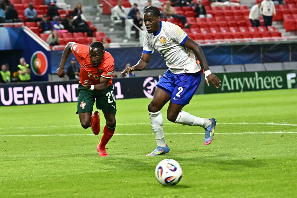 L’équipe de France de Gérald Baticle a débuté son Euro-2025 Espoirs en Slovaquie par un match nul heureux (0-0) face au Portugal mercredi à Trencin, et conserve toutes ses chances de qualification pour les quarts de finale.Privé de nombreux cadres retenus par leurs clubs ou blessés pour la compétition disputée hors des dates FIFA, le sélectionneur français a dû rebâtir son groupe expressément et s’attendait à souffrir pour l’entrée en lice de ses joueurs face au Portugal, autre favori du groupe C.En manque de repères communs, les Bleuets ont effectivement souffert en première période durant laquelle les Portugais ont largement dominé les débats comme en témoignent les trois énormes occasions qu’ils se sont créées en deux séquences distinctes au quart d’heure de jeu. A la 14e minute, Geovany Quenda, l’ailier du Sporting Portugal, en partance pour Chelsea, a adressé une magnifique passe pour son capitaine Paulo Bernardo qui a buté sur son homologue français Chrislain Matsima. Le ballon est revenu dans les pieds de Roger Fernandes, mais la frappe de l’attaquant de Braga a été stoppée miraculeusement sur sa ligne par Castello Lukeba. Première sommation. Une minute plus tard, Tiago Tomas a profité d’une défense trop laxiste de Matsima pour prendre le dessus sur le capitaine français mais sa frappe a cette fois été repoussée par Guillaume Restes, le portier de Toulouse. Deuxième sommation. -collectif portugais, individualités françaises-Face au collectif portugais et ses ailiers de feu, la France s’en est remis à ses individualités, la puissance du Lensois Andy Diouf, l’activité de Wilson Odobert et la conduite de balle de Mathis Abline, l’attaquant nantais convoité en cette période de transferts.Contre le court du jeu, sur l’une des rares offensives françaises, Abline s’est infiltré dans la défense portugaise, avant d’être fauché par Rafael Rodrigues. Manfredas Lukjancukas, l’arbitre lituanien de la rencontre, a sifflé un pénalty avant de le transformer en coup franc après arbitrage vidéo, la faute ayant été commise hors de la surface. Le coup franc (30e) n’a rien donné si ce n’est un contre annihilé du Portugal. Le match, plutôt rythmé, a néanmoins perdu en intensité lors de la seconde période où la partie s’est équilibrée, les Portugais se montrant un peu moins tranchants offensivement. Les deux équipes ne se sont plus procuré d’occasion franche si ce n’est une frappe de Mathys Tel (75e) juste avant qu’il ne sorte du terrain, remplacé par Loum Tchaouna, ou un mouvement de Johann Lepenant (90e+1), tous deux captés par Samuel Soares, le gardien portugais. L’obstacle portugais passé sans prendre de but, Gérald Baticle s’offre un peu de temps pour travailler. Un peu: La France disputera dès samedi à Zilina, la Géorgie, première du groupe après sa victoire 2-1 face à la Pologne que les Bleuets affronteront mardi.
