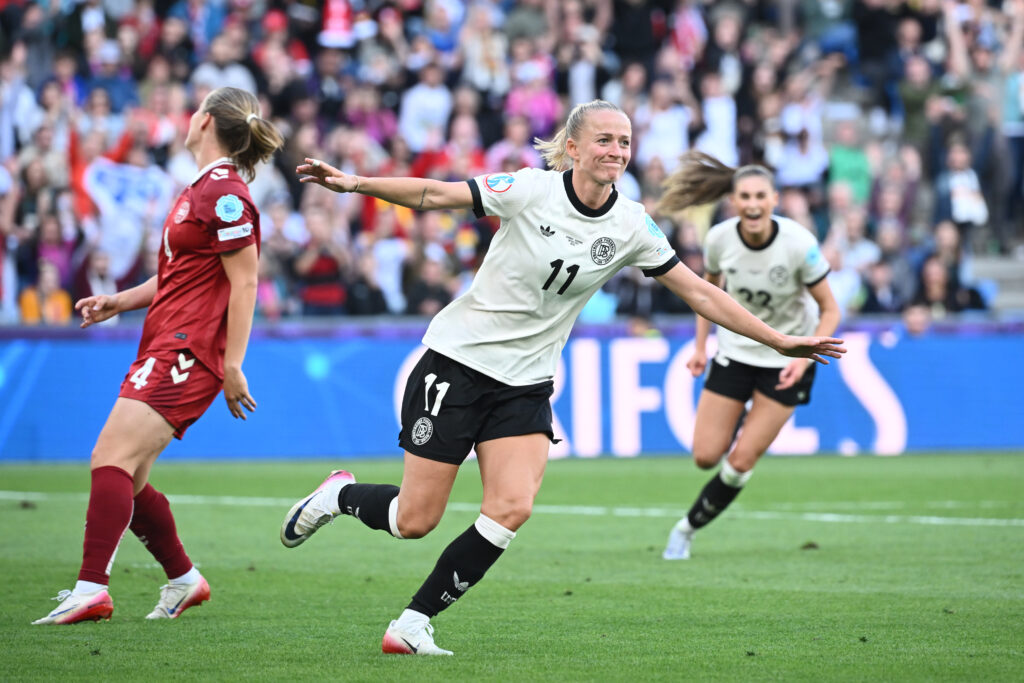 Menée au score et étouffée par une défense de fer, l’Allemagne a réussi mardi soir à renverser le Danemark à Bâle (2-1), pour se qualifier en quart de finale de l’Euro-2025. Avec ce deuxième succès en deux rencontres, les vice-championnes d’Europe en titre et médaillées de bronze des JO-2024 se sont qualifiées en quart de finale après le succès (3-0) de la Suède contre la Pologne, dans l’autre match du groupe C. Les deux nations s’affronteront samedi (21h) pour le choc de cette poule qui déterminera la première place. Si elles finissent en tête de leur poule après l’ultime rencontre face à la Suède, les Allemandes croiseront en quarts le deuxième du groupe D, soit pour l’instant la France, qui doit encore affronter le Pays de Galles et les Pays-Bas.”Sur le plan technique, en termes de jeu, nous avons eu beaucoup de mal. Mais l’autre composante qui distingue toujours une équipe allemande a pris le relais: l’esprit de combat, la volonté de gagner”, a insisté le sélectionneur Christian Wück, retenant “une victoire au mental”.Trois ans jour pour jour après le 4-0 essuyé au même stade de la compétition par les Danoises face aux Allemandes, les joueuses d’Andrée Jeglertz sont passées tout près de tendre à leurs voisines le piège parfait, entre cohésion défensive et contre-attaques éclaires.En quête depuis 2013 d’un neuvième titre continental, les coéquipières de Janina Minge, nouvelle capitaine depuis la blessure au genou gauche de Giulia Gwinn face à la Pologne, ont vite pris les commandes, marquant même par Klara Bühl un but finalement refusé pour hors jeu (18e).Mais c’est le moment que les Danoises ont choisi pour sortir de leur boîte grâce à une chevauchée de Pernille Harder, bien défendue par Sarai Linder, avant que l’attaquante de la Juventus Amalie Vangsgaard ne surgisse sur corner pour tromper Ann-Katrin Berger au premier poteau (1-0, 26e).Le match se débridait alors totalement, passant d’une surface à l’autre, entre des Danoises sautant sur chaque occasion d’aggraver le score (28e, 29e, 30e, 45e), et des Allemandes acharnées à percer la muraille rouge (41e).Et après un pénalty refusé aux joueuses de Christian Wück, pour une main de Frederikke Thorgersen à la limite extérieure de la surface (40e), une faute de Katrine Veje sur Linda Dallmann offrait une occasion d’égaliser.Fraîchement désignée vice-capitaine, la milieu Sjoeke Nüsken plaçait une frappe imparable au ras du poteau droit de Maja Bay Ostergaard (1-1, 56e), faisant exulter le St Jakob-Park et ses 16.000 Allemands venus en voisins.Dix minutes plus tard, les demi-finalistes des derniers JO récidivaient avec un peu de réussite: sur un dégagement danois, la néo-Lyonnaise Jule Brand – déjà buteuse et passeuse décisive face à la Pologne – héritait du ballon et servait Lea Schüller, qui enroulait dans le petit filet opposé (2-1, 66e).