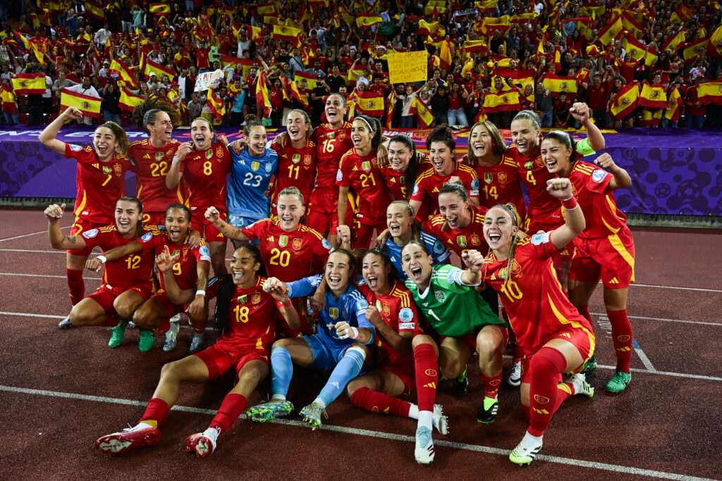 Les championnes du monde espagnoles, portées par la double Ballon d’or Aitana Bonmati, ont réussi mercredi à venir à bout (1-0) des Allemandes en demi-finale de l’Euro et affronteront, comme lors du Mondial-2023, l’Angleterre dimanche en finale à Bâle.Les Allemandes, agressives et combatives, ont tenu tout ce qu’elles ont pu mais ont finalement cédé en seconde période de la prolongation. Et l’Espagne jouera bien sa première finale dans un Euro dimanche contre les Anglaises de Sarina Wiegman.Ce succès est aussi historique car c’est la première victoire de son histoire contre l’Allemagne, que ce soit en amical ou en grandes compétitions. Et c’est aussi une petite revanche du match pour la médaille de bronze des JO à Paris (1-0), remporté par les Allemandes l’été dernier.”C’est incroyable, nous sommes en train d’écrire l’histoire. C’est ce que nous voulions. Ça a été difficile, mais nous sommes en finale”, a réagi la capitaine espagnole Irene Paredes.”Je ne crois pas au destin. Je crois au travail et à la mentalité”, a souligné la meneuse de jeu espagnole Aitana Bonmati.Et tout cela s’est produit en grande partie grâce à elle.Lumineuse pendant tout le match, la N.6 – remise d’une méningite juste avant l’Euro – a sublimé la demi-finale par son talent et a envoyé ses coéquipières en finale: après un magnifique contrôle orienté, elle a trompé la gardienne allemande, jusque-là impeccable, en frappant au premier poteau, mal protégé (1-0, 113e).Son premier but dans la compétition, le plus important et au meilleur moment. Jusque-là, sa technique, sa vista et ses efforts défensifs avaient régalé, sans faire plier les joueuses de Christian Wück. Pendant de longues minutes, les bourreaux des Bleues sont rentrées dans les têtes des Espagnoles et ont même été plus dangereuses en seconde période.Mais depuis maintenant plus de deux ans, c’est bien l’Espagne et son jeu dans les petits espaces qui règnent sur le football européen, aidée par la meneuse de jeu barcelonaise, qui était partout mercredi soir, à la récupération et à la création, à la différence d’Alexia Putellas, très discrète.- Doublé Coupe du monde – Euro ? -Pendant de longues minutes, les jolis mouvements espagnols n’ont la plupart du temps pas été assez dangereux face à défense parfaitement en place (58e). En face l’Allemagne a joué en transitions (29e, 63e) et a été proche de marquer sur coups de pied arrêtés comme en fin de match (85e), et Carlotta Wamser a même eu deux occasions de but en fin de match. L’Allemagne, sans sa capitaine blessée Giulia Gwinn et avec deux joueuses suspendues, a été très solide, notamment pendant les dix dernières minutes de la première période, où les joueuses de Montse Tomé ont poussé (40e, 41e, 44e, 45e). La capitaine Irene Paredes a même trouvé le poteau (41e) sur un corner de Pina. La gardienne allemande Ann-Katryn Berger a sorti de nouveau un gros match comme samedi dernier contre la France (1-1, tab 6-5), à l’image de son arrêt sur cette frappe d’Esther Gonzalez, trouvée sur une belle ouverture de Paredes (45e+1). En tout, la portière allemande a fait plus de 15 parades.En course pour un neuvième titre européen, l’Allemagne a cédé, malgré toute l’expérience et l’agressivité de ses joueuses. Giovanna Hoffmann, alignée en pointe de l’attaque à la place de la vedette Lea Schüller (rentrée en fin de match) a mis beaucoup d’impacts physiques, mais n’a pas pesé dans la défense.”Je ne peux que remercier les 23 joueuses, elles ont été très bien. Je suis très déçu mais très fier de l’équipe”, a réagi le sélectionneur allemandSoudées, à l’image du banc qui a réconforté Kleinherle sortie pendant les prolongations à cause d’une blessure au genou et de Giulia Gwinn allant donner à boire à ses coéquipières ou Sarai Linder qui est allée au pied des tribunes haranguer les spectateurs, elles ont été solidaires comme contre la France. Mais cette fois cela n’a pas suffi face au talent des Espagnoles, championnes du monde et qui visent désormais le doublé Coupe du monde/Euro.