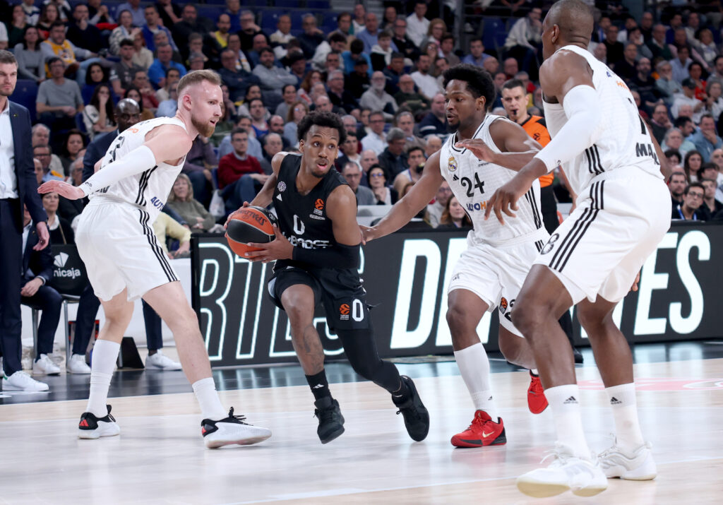 Dominateur en début de rencontre, Paris a frôlé l’exploit jeudi sur le parquet du Real Madrid (105-104) lors de l’avant-dernière journée d’Euroligue et devra impérativement s’imposer face à l’Alba Berlin pour espérer se qualifier pour les play-offs.Sans complexes sur le parquet du géant espagnol aux 11 couronnes européennes, avec qui ils partageaient le même bilan de 18 victoires pour 14 défaites au coup d’envoi, les Parisiens ont fait mieux que résister, et ont sérieusement bousculé des Madrilènes pas habitués à devoir batailler pour une place en play-offs à deux journées de la fin de la saison régulière.Mais ils ont fini par s’incliner (105-104), après un début de quatrième quart-temps raté, malgré l’opiniâtreté de Nadir Hifi (23 points à 9/15 au tir, dont 5/9 à trois points).Grâce à quelques stops défensifs et une belle adresse à trois points (6/10) dans le premier quart-temps, les hommes de Tiago Splitter avaient pris les commandes d’entrée (28-23) et mené de six points (36-30), avant que les Espagnols ne durcissent sérieusement le ton dans la raquette.Le match s’est alors enflammé au milieu du deuxième quart, lorsque les Merengues, revenus à hauteur (40-40), ont repris l’avantage (43-40) sur une séquence folle du vétéran Serge Ibaka, 35 ans, auteur de quatre points dans la peinture en quelques secondes et d’un double-contre sur Bandja Sy.Le club francilien s’en est remis au talent de ses deux stars TJ Shorts et Nadir Hifi, qui ont maintenu leur équipe à flot avec des énormes shoots à trois points, pour rentrer au vestiaire à égalité 53-53, après un panier sur le gong du Finlandais Mikael Jantunen.- Hifi et Shorts n’ont pas suffi -Revenus sur le parquet avec la même envie, les Parisiens ont repris le dessus, dans le sillage du meneur américain (9/16 au tir, dont 3/6 à trois points), allant jusqu’à mener de dix points en fin de troisième quart (75-65).Shorts, encore lui, a bien tenté de repousser la révolte madrilène portée par le Bosnien Dzanan Musa (20 points, 6 passes) et son compère croate Mario Hezonja (26 points à 9/13 au tir, 5/9 à 3 pts). Mais ce fut pour quelques minutes seulement, jusqu’à un nouveau panier en pénétration de l’intenable Musa, avec la faute, pour donner quatre longueurs d’avance aux siens (84-80) et clore un 10-0 qui a sûrement coûté le match aux Parisiens. Paris, si adroit en début de match, n’a en effet plus rentré un tir pendant près de deux minutes trente en début de quatrième quart, alors que le Real poussait fort pour enfoncer le clou. Hifi, qui a brillamment pris le relai de Shorts, n’a pas abdiqué en ramenant son équipe à hauteur à plusieurs reprises. Il était cependant trop seul pour éviter une défaite cruelle face à l’expérience des joueurs de la Maison Blanche, qui sont allés chercher des points dans la raquette avec le géant Edy Tavares, et “Super Dario” Hezonja pour sceller leur succès, 105-104, malgré un dernier shoot au buzzer de l’arrière international français, qui aura vraiment tout tenté.