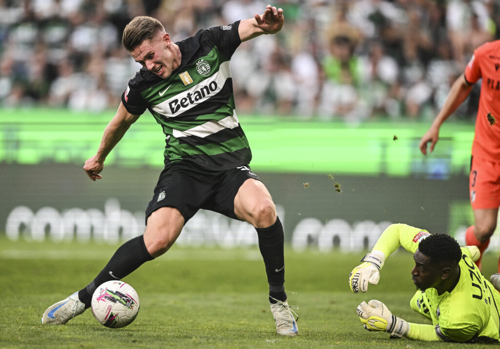 Le Sporting a remporté son 21e titre de champion du Portugal en s’imposant à domicile devant Guimaraes (2-0) pour devancer le Benfica, son grand rival lisboète, tenu en échec à Braga (1-1) samedi lors de la dernière journée.Déjà sacré la saison dernière, le Sporting n’avait pas remporté deux titres d’affilée depuis 1954.Les deux clubs centenaires de la capitale portugaise se retrouveront le dimanche 25 mai en finale de la Coupe du Portugal.À égalité de points avant cette 34e journée, ils n’avaient pu se départager le week-end dernier lors d’un derby survolté, choc au sommet qui s’est terminé par un résultat nul (1-1) au stade du Benfica.Le Sporting avait alors l’avantage dans les confrontations directes car il l’avait emporté (1-0) à l’aller.Avec 82 points en 34 rencontres, la meilleure attaque et la meilleure défense du championnat, le Sporting obtient la seule place qualificative pour la Ligue des champions, tandis que le Benfica (2e, 80 pts) devra jouer les barrages.Au plan individuel, cette saison restera marquée par la superbe performance de l’avant-centre suédois du Sporting, Viktor Gyokeres, auteur de 39 buts en championnat et un total de 50 réalisations toutes compétitions confondues.- Porto déchante -Samedi à Lisbonne, il a signé le deuxième but du Sporting après l’ouverture du score de Pedro Gonçalves.Les deux équipes de la capitale portugaise étaient au coude à coude depuis plusieurs semaines, au bout d’une saison où ils ont chacun changé d’entraîneur en cours de route.Le Benfica s’est séparé fin août de son entraîneur allemand Roger Schmidt, remplacé par le Portugais Bruno Lage avant que le Sporting ne traverse lui aussi une zone de turbulence.Fin décembre, Rui Borges a remplacé Joao Pereira, qui n’a tenu en poste que quelques semaines après avoir succédé à Ruben Amorim, parti à Manchester United.Parmi les “trois grands” du football portugais, c’est le FC Porto qui a déchanté. Après avoir connu lui aussi un changement d’entraîneur à mi-saison, avec l’arrivée de l’Argentin Martin Anselmi, le club termine à la 3e place du classement, à onze points du Sporting, devant Braga.Au fond du tableau, Boavista et Farense sont relégués, et seront remplacés par Tondela et Alverca.