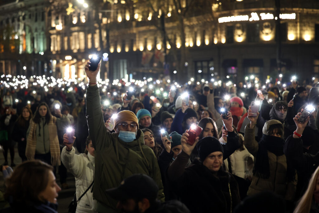 Des milliers de manifestants pro-UE ont marché vers le Parlement géorgien samedi à Tbilissi, donnant le coup d’envoi d’une dixième nuit de protestations contre le gouvernement, accusé d’avoir abandonné les ambitions européennes du pays et truqué les législatives pour s’orienter vers la Russie.La police géorgienne a de nouveau fait usage de gaz lacrymogène et de canons à eau.La présidente géorgienne, Salomé Zourabichvili, en conflit avec le gouvernement et pro-européenne, était pour sa part samedi soir aux cérémonies de réouverture de la cathédrale Notre-Dame à Paris.Elle a affirmé avoir eu une “discussion profonde” avec le président américain élu Donald Trump et son homologue français Emmanuel Macron sur les “élections volées” en Géorgie et “la répression extrêmemement alarmante” des manifestations.”Les Géorgiens ont un ami en Donald Trump”, a-t-elle assuré.Auparavant, elle s’était entretenue avec le président ukrainien Volodymyr Zelensky, dont le pays combat une invasion russe depuis près de trois ans. Il a dit lui avoir exprimé le “plein soutien et la solidarité de l’Ukraine”, appelant à “ne pas céder le pays à Poutine”.L’ex-république soviétique du Caucase est dans la tourmente depuis les élections du 26 octobre, au terme desquelles la victoire annoncée du parti au pouvoir du Rêve géorgien a été contestée par l’opposition pro-occidentale qui dénonce des fraudes.Les manifestations ont repris avec une nouvelle ampleur la semaine dernière après la décision du gouvernement de suspendre jusqu’à 2028 les négociations  d’intégration à l’Union européenne.Au cours de neuf nuits de protestations, émaillées de violences, les manifestants se sont réunis devant le Parlement et aux alentours face à la police, qui a dispersé la plupart des rassemblements par la force.Selon les autorités, 341 manifestants ont été arrêtés au total depuis le début du mouvement. Près de 150 policiers ont été blessés.Des milliers de personnes manifestaient de nouveau samedi, s’étant cette fois d’abord rassemblées devant une université de Tbilissi, avant de se diriger vers le Parlement à grand renfort de klaxons et de sifflets, bloquant l’une des principales artères de la ville, ont constaté les journalistes de l’AFP.- “Nous n’avons pas peur” -“Le gouvernement essaie de nous arrêter, de nous punir, mais nous ne reculons pas, nous n’avons pas peur”, dit Guiorgui Romanadzé, 19 ans. “C’est notre dernière chance d’être libres, d’être heureux. Nous voulons l’Europe et seulement l’Europe”.”Nous nous battons pour notre liberté, pour notre entrée dans l’Union européenne, et nous voulons que la communauté internationale nous aide”, a dit Teona Tchakvetadzé, une manifestante de 32 ans.”Il faut que la communauté internationale sanctionne nos oligarques et ce gouvernement illégitime pour qu’ils soient sous pression, et que nous sachions que nous ne sommes pas seuls”, a-t-elle ajouté. “La chaîne de télévision Pirveli a affirmé que ses journalistes avaient été passés à tabac par des dizaines d’hommes masqués, sous le regard de policiers qui ne sont pas intervenus.La coalition d’opposition, Pour le changement, a quant à elle mis en ligne une vidéo montrant des hommes masqués attaquant ses locaux et battant le dirigeant d’opposition Koba Khabazi.Lors du rassemblement précédent, dans la nuit de vendredi à samedi, “les forces de l’ordre ont arrêté 48 personnes pour désobéissance aux ordres légitimes de la police et vandalisme”, a affirmé le ministère de l’Intérieur dans un communiqué.Le commissaire géorgien aux droits humains, Levan Iosseliani, a pour sa part une nouvelle fois estimé que la police n’avait “pas de fondement légal pour disperser une manifestation pacifique”.- Arrestations d’opposants -Le gouvernement, accusé de dérive autoritaire prorusse par ses détracteurs, a adopté ces derniers jours un discours de plus en plus ferme. Plusieurs figures de l’opposition ont été arrêtées et les bureaux de leurs partis ont été perquisitionnés par la police, qui affirme avoir saisi des feux d’artifice et des cocktails Molotov.Le chef du parti d’opposition Akhali, Nika Gvaramia, a notamment été battu lors de son arrestation devant les caméras de télévision. Il a ensuite été condamné à 12 jours de prison.Le dirigeant du groupe d’opposition Géorgie forte, Alexandre Elisachvili, a été placé en détention provisoire pour deux mois.Vendredi, le Premier ministre Irakli Kobakhidzé avait affirmé avoir “remporté une bataille importante contre le libéralo-fascisme” en Géorgie, terme qu’il emploie pour qualifier ses opposants.Le parti au pouvoir “n’a plus le pouvoir ou les ressources pour faire face au peuple”, a soutenu de son côté vendredi le leader du parti d’opposition Lelo, Mamouka Khazaradzé.Les Etats-Unis et l’Union européenne ont dénoncé cette répression, et Washington a menacé d’adopter de nouvelles sanctions.