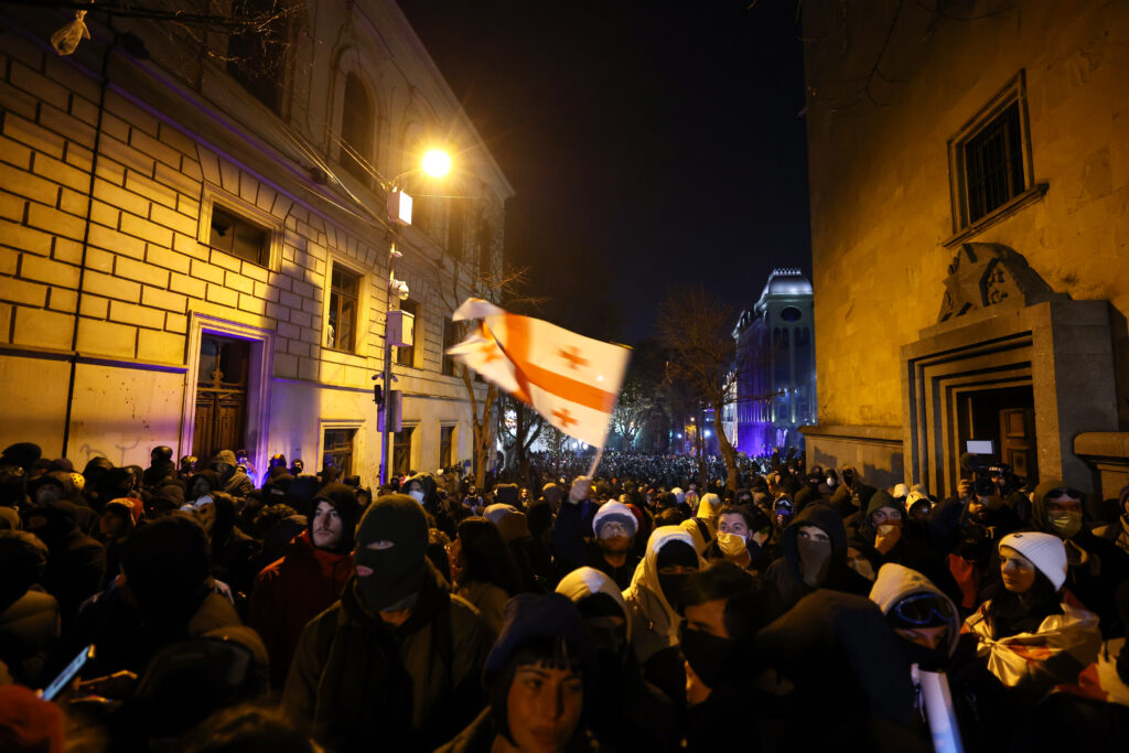 Le pouvoir en Géorgie a juré jeudi d’anéantir l’opposition, accusée de “libéralo-fascisme”, en pleine vague de manifestations pro-UE qui entre dans sa deuxième semaine et fait face à une répression accrue des autorités.Lors d’une conférence de presse, le Premier ministre, Irakli Kobakhidzé, a livré un réquisitoire particulièrement virulent. Son gouvernement, accusé de dérive autocratique prorusse, tente de juguler la contestation par la force, avec notamment l’arrestation mercredi de trois meneurs de l’opposition.”Nous ferons tout le nécessaire pour éradiquer complètement le libéralo-fascisme”, a déclaré M. Kobakhidzé, en accusant à nouveau — sans fournir de preuves — la contestation de fomenter une révolution et d’être financée depuis l’étranger.”Ce type de financement a attisé le radicalisme en Géorgie, intensifié la polarisation et, de façon plus alarmante, généré un libéralo-fascisme”, a martelé Irakli Kobakhidzé, qui accuse régulièrement les ONG d’être des agents d’influence qui combattent le pouvoir.Il s’en est également pris aux chefs de la diplomatie américaine Antony Blinken qui avait condamné mercredi la “violence injustifiée” du pouvoir en Géorgie, disant espérer un changement de position avec l’arrivée aux commandes de Donald Trump en janvier. “J’ai espoir qu’après le 20 janvier nous ne verrons plus ces inventions dans les déclarations américaines”, a dit le dirigeant géorgien.Devant ses collègues des Etats de l’OSCE, réunis à Malte, M. Blinken a répété ses accusations. La Géorgie traverse une grave crise politique depuis les législatives du 26 octobre, remportées par le parti dirigeant, Rêve géorgien, mais dénoncées comme truquées par ses détracteurs.Des manifestations massives ont finalement éclaté le 28 novembre après l’annonce de la suspension des jusqu’en 2028 des ambitions de cette ex-république soviétique d’intégrer l’UE, une décision qui a mis le feu aux poudres dans ce pays qui a inscrit ses ambitions européennes dans la Constitution et dont 20% du territoire est de facto contrôlé par la Russie.Mercredi soir, des milliers de manifestants pro-UE se sont à nouveau rassemblés devant le Parlement à Tbilissi, la capitale, pour une septième nuit de protestation. Les six précédentes avaient été dispersées par la police à coup de canons à eau et de gaz lacrymogène, et près de 300 personnes ont été interpellées.La foule paraissait la nuit dernière plus clairsemée, même si l’affluence restait conséquente pour cette nation d’environ 4 millions d’habitants.- Meneurs arrêtés -Le Premier ministre reste lui sur une ligne dure, menaçant l’opposition et refusant toute concession.Les autorités ont perquisitionné mercredi les bureaux du parti d’opposition Droa. Des policiers cagoulés y ont brutalisé puis embarqué Nika Gvaramia, le dirigeant d’un autre parti allié, Akhali, selon des images de la chaîne de télévision indépendante Pirveli.Selon cette chaîne, deux autres dirigeants de l’opposition, Alexandre Elisachvili et Zourab Datounachvili, ont été arrêtés.Le ministère de l’Intérieur a aussi rapporté l’arrestation de sept personnes accusées d’avoir “organisé” des violences lors des manifestations. Elles encourent jusqu’à 9 ans de prison.Le principal parti d’opposition géorgien, le Mouvement national uni (MNU) de l’ex-président emprisonné Mikhaïl Saakachvili, a dénoncé “une campagne de terreur et de répressions”.Le commissaire géorgien aux droits humains, Levan Ioseliani, a accusé la police de violenter les manifestants “de façon punitive”.Quelque 293 personnes ont été placées en détention depuis le début du mouvement, a annoncé le ministère de l’Intérieur mardi soir, et 143 policiers ont été blessés.- Peur et colère -Mercredi soir, des manifestants interrogés par l’AFP à Tbilissi se demandaient si la pression pouvait étouffer les protestations ou au contraire les galvaniser.Nikoloz Bakouradzé, étudiant de 19 ans à la fine moustache, pense que le mouvement, principalement cantonné à Tbilissi, avait “déjà passé son pic”. Pour Eka Moniava, artiste de 50 ans, les arrestations montrent que le pouvoir “a peur” et cherche à intimider. “Les gens sont de plus en plus en colère”, dit-elle, espérant que cela les poussera dans la rue.Torniké, musicien de 29 ans, dit lui n’avoir pas participé aux manifestations des premiers jours. “Mais en voyant à la télévision comment la police traitait les gens, je suis venu”. L’attitude des forces de l’ordre est “dégueulasse, il n’y a pas d’autres mots”, dit-il.Des hauts fonctionnaires géorgiens ont commencé en outre à exprimer leur opposition au gouvernement en claquant la porte. Plusieurs ambassadeurs et un vice-ministre des affaires étrangères ont démissionné, suivi mercredi d’un cadre du ministère de l’intérieur chargé d’organiser la réponse aux manifestations.