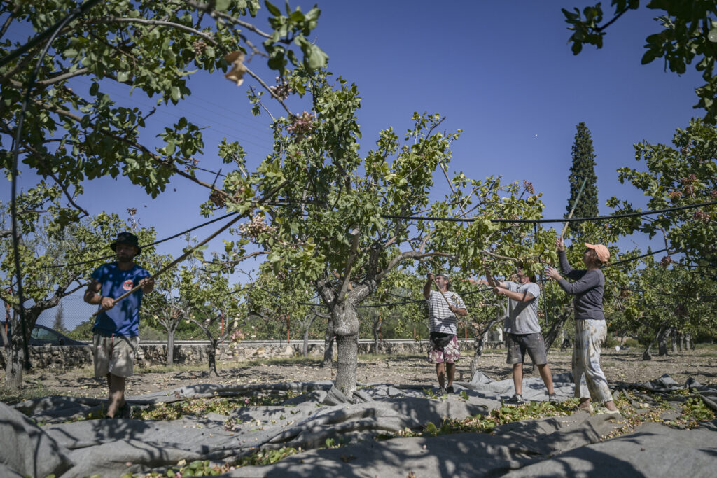 Sur l’île grecque d’Egine, quatre ouvriers agricoles, bâton en main, frappent les branches d’un pistachier pour faire pleuvoir les fruits sur des bâches. La récolte des pistaches bat son plein. Pourtant l’équipe fait grise mine.”Il y a peu de pistaches”, déplore auprès de l’AFP Daso Shpata, un Albanais de 47 ans, sous un soleil de plomb qui fait chanter les cigales. Le changement climatique a fait fondre les récoltes. D’autres problèmes sont venus se greffer: de nouvelles générations peu enclines à reprendre les exploitations familiales et des arbres sacrifiés pour construire de lucratives résidences de vacances dans une Grèce où le tourisme va de record en record.”La culture traditionnelle (des pistaches) telle que nous la connaissons (ici) n’est plus viable”, se désole Eleni Kypreou, la propriétaire du verger de cette île de près de 13.000 habitants, proche d’Athènes et connue dans toute la Grèce pour ses fameuses pistaches.”Si nous voulons sauvegarder les pistachiers, il faut trouver ce dont ils ont besoin (…) Sinon, ils appartiendront au passé et pourront entrer dans un musée”, tranche-t-elle.La production de pistaches à Egine est infime en comparaison de celle des États-Unis ou de l’Iran où sont récoltées plusieurs centaines de milliers de tonnes chaque année. Mais ces fruits produits sur ce territoire situé à une heure en ferry du port du Pirée sont considérés comme particulièrement savoureux.”Les pistaches d’Egine ont un goût spécial”, assure Mme Kypreou. “Ca vient de la terre et de l’eau. L’eau est un peu salée”.Cette femme de 88 ans chérit ses 750 pistachiers au point de leur chanter et de leur parler.”Les deux dernières années, nous n’avions presque rien”, poursuit-elle, soit 20 kg seulement en 2024 après 100 kg en 2023. “Nous attendions une bonne récolte cette année. Mais elle n’est pas bonne”, soupire-t-elle. – “Planter des maisons” -En 2023, la Grèce a produit près de 22.000 tonnes de pistaches, contre 12.000 seulement en 2015, selon l’office grec des statistiques Elstat. Mais à Egine, la production a baissé pour passer de plus de 2.600 tonnes à 2.300 tonnes. Le nombre d’arbres en âge de production et les hectares de terre ont également diminué.”Ces deux dernières années ont été mauvaises” principalement en raison des hivers particulièrement cléments qu’a connus le pays méditerranéen, diagnostique Kostas Peppas, président de la coopérative des producteurs de pistaches d’Egine. Or les arbres ont besoin pendant “certaines heures de températures en dessous de 10 à 12°C. Pour dormir, pour se reposer. Donc si l’hiver est doux, ce n’est pas bon”, assure-t-il.La coopérative vend les pistaches dans les magasins et supermarchés dans tout le pays et, à Egine, tout particulièrement notamment auprès des nombreux touristes, ainsi que dans son propre kiosque sur le port. Pour M. Peppas, il ne fait pas de doute que la plupart des vendeurs du port ont acheté des pistaches ailleurs, faute de pouvoir s’approvisionner auprès des producteurs locaux.Le dirigeant de la coopérative possède 230 arbres, principalement des femelles, qui produisent les pistaches, avec deux mâles plus grands pour la pollinisation. A Egine, “ils coupent des arbres et construisent des maisons à la place,” soutient ce capitaine de bateau à la retraite, âgé de 79 ans.Avec le boom du tourisme en Grèce, qui a accueilli 40 millions de visiteurs en 2024, les locations de courte durée, lucratives, explosent à Athènes et sur les îles.Thanasis Lakkos, 53 ans, soulève une branche de l’un de ses 3.500 pistachiers qu’il arrose avec l’eau de pluie collectée en hiver pour l’aider à grandir.La plupart des producteurs suivent le savoir faire ancestral en se disant “mon grand-père faisait comme ça, moi je vais continuer à faire comme ça”, explique-t-il. “Mais ce n’est pas comme cela que ça marche”, souligne-t-il, invitant les producteurs à chercher de nouvelles techniques. Il compte “continuer aussi longtemps que possible” malgré les difficultés. Dans son entourage, certains lui disent “mieux vaut vendre la terre et gagner un million d’euros et se reposer pour le reste de sa vie”. Son fils est devenu DJ et les jeunes qui veulent se lancer dans l’agriculture sont rares, constate M. Lakkos qui fait partie de “la dernière génération” qui récoltera les pistaches à Egine. “La tradition va se perdre”, prédit-il désolé.