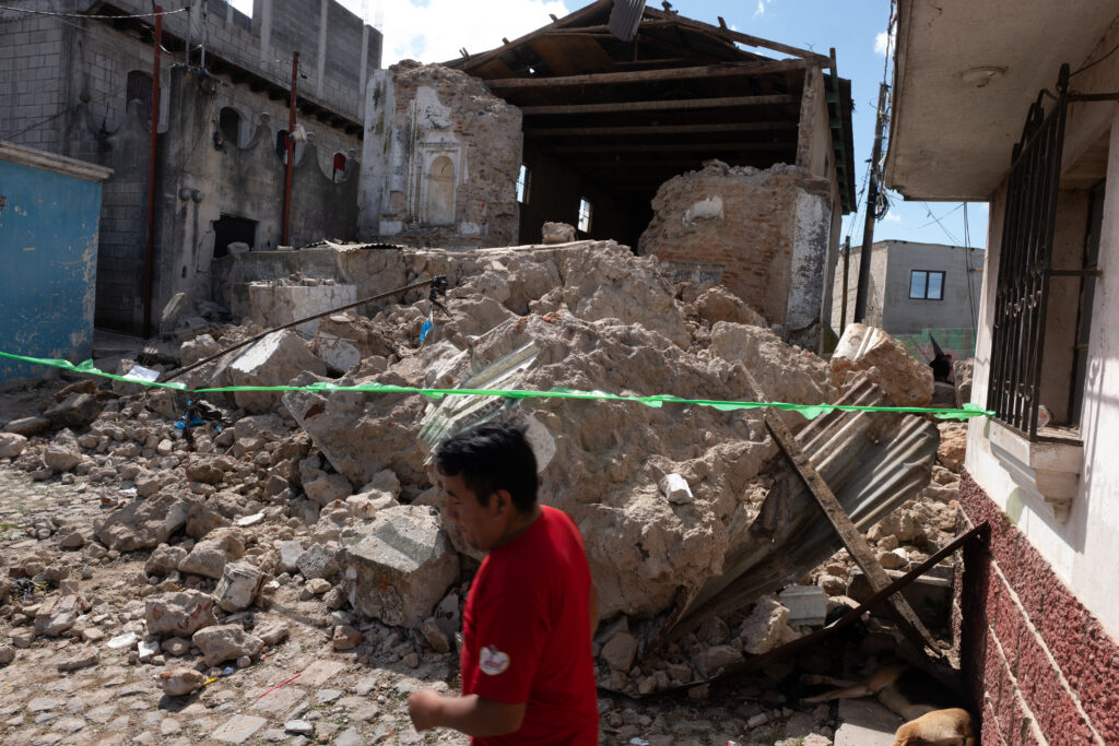 Le bilan de la série de séismes qui ont secoué le Guatemala mardi s’est alourdi à cinq morts après qu’un homme a été retrouvé mort à son domicile, a-t-on appris mercredi auprès des autorités locales.Les séismes les plus forts ont atteint, mardi après-midi, une magnitude de 4,8 et 5,7, avec des épicentres situés dans les localités d’Amatitlan et d’Alotenango, près de la capitale, selon le service géologique américain USGS.Selon l’agence de coordination des catastrophes Conred, le nombre de morts est passé à cinq avec la découverte du corps d’un homme de 30 ans décédé d’une crise cardiaque à son domicile dans le village de Santa Ines (sud).La Conred avait précédemment rapporté la découverte du corps d’un adolescent à Santa Maria de Jesus (sud-ouest), la zone la plus touchée par les séismes.Quelques heures auparavant, le président Bernardo Arévalo avait annoncé sur X que deux hommes dont le véhicule a été enseveli par des pierres et une femme victime d’un éboulement dans un village étaient morts.Dans son dernier bilan, la Conred indique également que les séismes ont fait des centaines de sinistrés et endommagé des dizaines de maisons ainsi que plusieurs routes et un pont.M. Arévalo a suspendu mercredi les cours dans les écoles ainsi que la journée de travail dans les trois départements les plus touchés: Guatemala, Escuintla et Sacatepéquez.Après le premier tremblement de terre, survenu vers 15H00 locales (21H00 GMT), quelque 200 répliques ont été enregistrées, dont une vingtaine ressenties par la population, a précisé l’Institut local de sismologie.Des centaines de personnes ont passé la nuit de mardi à mercredi dans la rue ou les parcs par crainte de répliques.Carmen Carrillo, 49 ans, a ainsi dormi dehors avec sa famille à Palin, situé à 35 km au sud de la capitale. Les séismes de la veille “ont été très forts”, a-t-elle dit à l’AFP. A Santa Maria de Jesus, 50% des maisons présentent des dommages, y compris des bâtiments historiques, selon le maire Mario Pérez. La ville est privée d’électricité et est presque isolée en raison des éboulements qui encombrent les routes.Mercredi, le président Arévalo est arrivé en hélicoptère dans cette ville à majorité indigène maya pour évaluer les dégâts. “Sachez que nous travaillons sans relâche pour la sécurité de toute la population”, a indiqué le dirigeant sur X, exprimant ses “plus profondes condoléances aux familles des défunts”.L’Amérique centrale subit fréquemment des séismes en raison de la convergence des plaques tectoniques des Caraïbes et de Cocos, ainsi que de failles géologiques locales.