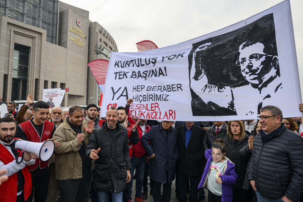 Istanbul’s powerful opposition mayor, Ekrem Imamoglu, condemned on Friday what he described as “judicial harassment” targeting him, as thousands of supporters demanded justice outside the court. Imamoglu, President Recep Tayyip Erdogan’s main political rival, spoke after giving a statement in connection with two investigations opened against him earlier this month. He is also fighting several other legal cases.”We are experiencing the highest level of judicial harassment in Istanbul,” he told the crowds, standing on the roof of a bus after leaving Istanbul’s Caglayan court. Imamoglu, who belongs to the main opposition CHP party and was re-elected mayor last year, vowed not to give up.”We will keep on fighting against injustice,” he said.His statement on Friday was in connection with two investigations into remarks he made about Istanbul’s chief public prosecutor and about a court-appointed expert witness involved in cases against CHP-run local councils. He is accused of threatening, insulting and targeting an official and attempting to influence fair trial.In his statement to the prosecutor, a copy of which was seen by AFP, Imamoglu denied all the allegations, saying he was simply exercising his right to free speech.”There was no threat or targeting in my words. What I said was freedom of expression,” he said. “Freedom of expression is a constitutional right.. (which) includes the right to criticise judicial authorities and the way they function,” he said. -‘Conspiracy’-Addressing the huge crowd, Imamoglu said there was a “conspiracy” against him. Ankara’s opposition mayor Mansur Yavas, who was there to support him, accused the government of turning Turkey into an “open prison”. Turkish authorities regularly target journalists, lawyers and elected political representatives, especially since the failed 2016 coup. An Istanbul court on Thursday ordered the arrest of an opposition TV journalist for broadcasting an interview the authorities allege was conducted without the consent of the interviewee — none other than the court-appointed expert Imamoglu had criticised.Among the crowd, some supporters wore Imamoglu face masks while others waved banners. There was a significant police presence. “The government is trying to limit the space for opponents, including journalists, and intimidate them with unfair accusations,” said Fethi Kocaer, 71, holding a banner reading: “We will fight together.””Mayor Imamoglu’s courage and strong stance will help unite us. We will not give up but will step up the fight against injustice,” he told AFP.Fevziye Yalcin, 57, said the cases against Imamoglu were meaningless. “It just makes us even stronger in our desire to fight them. We will hold the government to account at the ballot box,” she said defiantly. “Imamoglu will never walk alone.”