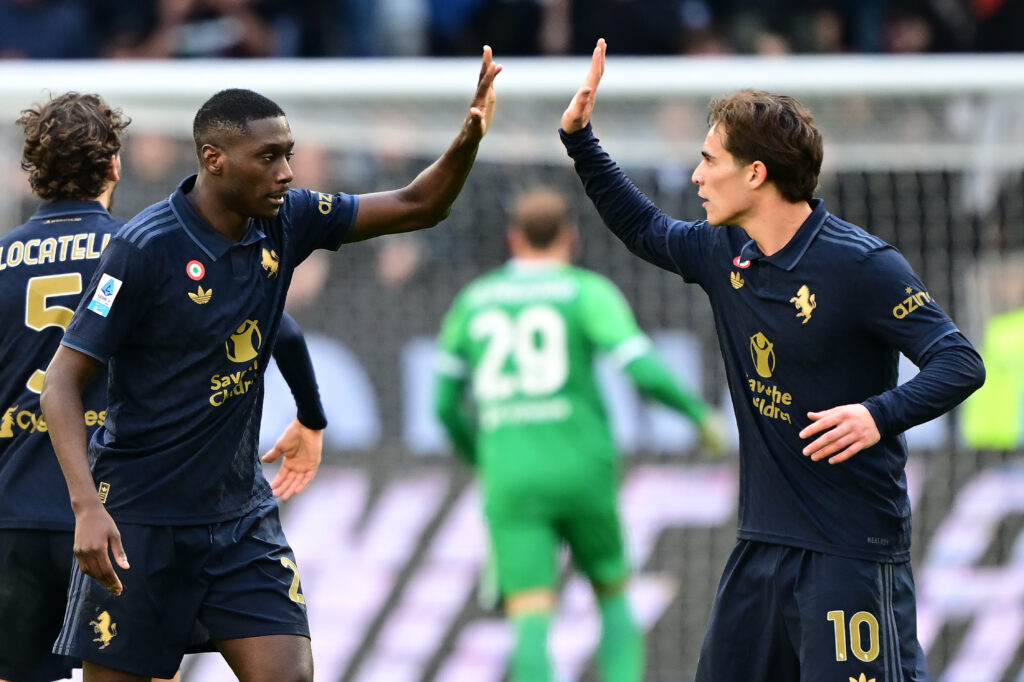 Deux matches, trois buts: Randal Kolo Muani a déjà pris ses marques à la Juventus Turin qu’il a sauvée d’une troisième défaite consécutive avec un doublé face à Empoli (4-1) dimanche lors de la 23ème journée du Championnat d’Italie.Battue à Naples, leader de Serie A, le week-end dernier (2-1) malgré l’ouverture du score par Kolo Muani, puis sans réponses face au Benfica (2-0) en Ligue des champions mercredi à domicile, la Juve a débuté son duel face à Empoli de la pire des façons en concédant un but dès la 4ème minute sur la première action offensive du mal classé (17e).L’équipe de Thiago Motta, conspuée par ses tifosi, a bien failli toucher le fond lorsque l’arbitre a accordé un penalty à Empoli à la 15ème minute, avant de revenir sur sa décision après consultation de l’arbitrage vidéo.La Juve a dû attendre l’heure de jeu pour reprendre espoir grâce à un exploit personnel de Kolo Muani (61e) qui a pris le dessus sur son défenseur et égalisé dans un angle fermé.L’international français, prêté jusqu’à la fin de la saison par le PSG qui ne compte plus sur lui et de nouveau préféré à Dusan Vlahovic, a doublé la mise (64e) avec beaucoup de réussite cette fois, en détournant un tir de loin de Timothy Weah.- “Juste incroyable” -“Plus que mes trois buts (en deux matches), ce qui est important, ce sont les trois points de la victoire, on veut gagner un maximum de matches cette saison, nous sommes contents ce soir”, a déclaré “RKM” sur la plateforme DAZN.”C’est juste incroyable ce que je vis depuis mon arrivée avec les fans, avec mes sensations, je suis très heureux”, a-t-il reconnu. La Juve a donné plus de relief à cette laborieuse victoire avec deux buts en fin de match par Vlahovic (90), son premier depuis un mois et demi, et Francisco Conceiçao (90+2).”Avec des attaquants aussi rapides que Randal ou Francisco, on sait qu’on peut mettre en difficultés n’importe quelle équipe, il faut qu’on en profite plus”, a espéré Motta.Après seulement sa neuvième victoire de la saison, la Juve a doublé la Lazio provisoirement pour la 4ème place, qualificative pour la prochaine Ligue des champions, mais accuse avec ses 40 points treize longueurs de retard sur Naples qui affronte l’AS Rome dans la soirée.Avant (18h), l’affiche de la 23ème journée opposera à San Siro l’AC Milan, distancé à la 7e place, à l’Inter qui peut en cas de succès revenir au moins provisoirement à la hauteur du Napoli.
