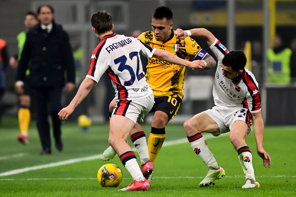 La troisième tentative lors des deux dernières semaines a été la bonne: l’Inter Milan a battu difficilement le Genoa (1-0) samedi lors de la 26e journée du Championnat d’Italie, pour déloger au moins provisoirement Naples de la première place.L’équipe de Simone Inzaghi, privée pour un mois de son gardien de but Yann Sommer, blessé au pouce droit, a monopolisé le ballon mais a dû attendre la 78e minute pour prendre le dessus sur le Genoa de Patrick Vieira, solide à défaut d’être enthousiasmant.Le salut pour les champions d’Italie en titre est venu de leur capitaine argentin Lautaro Martinez qui a trompé de la tête le gardien du Genoa. Grâce à cette deuxième victoire en cinq matches, l’Inter a dépassé le Napoli, leader depuis la 19e journée, et compte un point d’avance (57 points) sur son rival (56 pts) qui vient d’enchaîner trois nuls de suite, avant son déplacement dimanche (12h30) à Côme (13e, 25 pts).Quelle que soit l’issue de ce match, le choc de la 27e journée samedi prochain entre Naples et l’Inter pourrait être décisif pour le titre 2025.Rien ne va plus pour l’AC Milan: quatre jours après son élimination de la Ligue des champions par Feyenoord, le club lombard s’est incliné 2 à 1 sur le terrain du Torino samedi.Le Milan a concédé un premier but sur une bourde de son gardien français Mike Maignan, dont le dégagement a été propulsé dans son propre but par Malick Thiaw (5).Le gardien du Torino Vanja Milinkovic-Savic a stoppé un pénalty de Christian Pulisic (32). Le Milan a fini par égaliser à la 74e minute, avant de concéder un second but, synonyme de défaite, deux minutes plus tard.Les Rossoneri restent bloqués à la 7e place avec 41 points, à six longueurs de la 4e place, la dernière qualificative pour la prochaine C1, occupée par la Lazio Rome (47 pts), neutralisée plus tôt (0-0) par Venise.Pour ses débuts sur le banc de Parme, l’ancien international roumain Cristian Chivu a vu son équipe s’imposer 2 à 0 face à Bologne et sortir de la zone dangereuse (17e), avec deux points d’avance sur Empoli (18e).