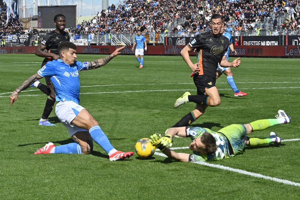 Naples est revenu provisoirement à la hauteur de l’Inter Milan après son nul sur le terrain du mal classé Venise (0-0) dimanche lors de la 29e journée du Championnat d’Italie.Le Napoli totalise désormais 61 points comme l’Inter, mais le club lombard a conservé sa première place grâce à sa meilleure différence de buts (+36, contre +22).L’Inter peut reprendre ses aises en tête de la Serie A s’il s’impose en début de soirée (20h45) à Bergame face à l’Atalanta. Si l’Atalanta, 3e avec 58 points, s’impose en revanche, on assisterait à un regroupement inédit dans l’histoire du championnat italien à ce stade de la saison, avec trois équipes à 61 points à neuf journées de la fin.C’est pourquoi les joueurs d’Antonio Conte faisaient grise mine au coup de sifflet final, avec le sentiment d’avoir laissé échapper deux points contre l’avant-dernier du championnat (20 pts).Ils se sont certes créés l’occasion la plus nette, par Romelu Lukaku (45e), mais le ballon, stoppé in extremis par Ionut Radu n’avait pas franchi intégralement la ligne.Le Napoli tourne au ralenti depuis un mois et demi: son nul de dimanche est le cinquième en sept matches pour une défaite et une seule victoire.