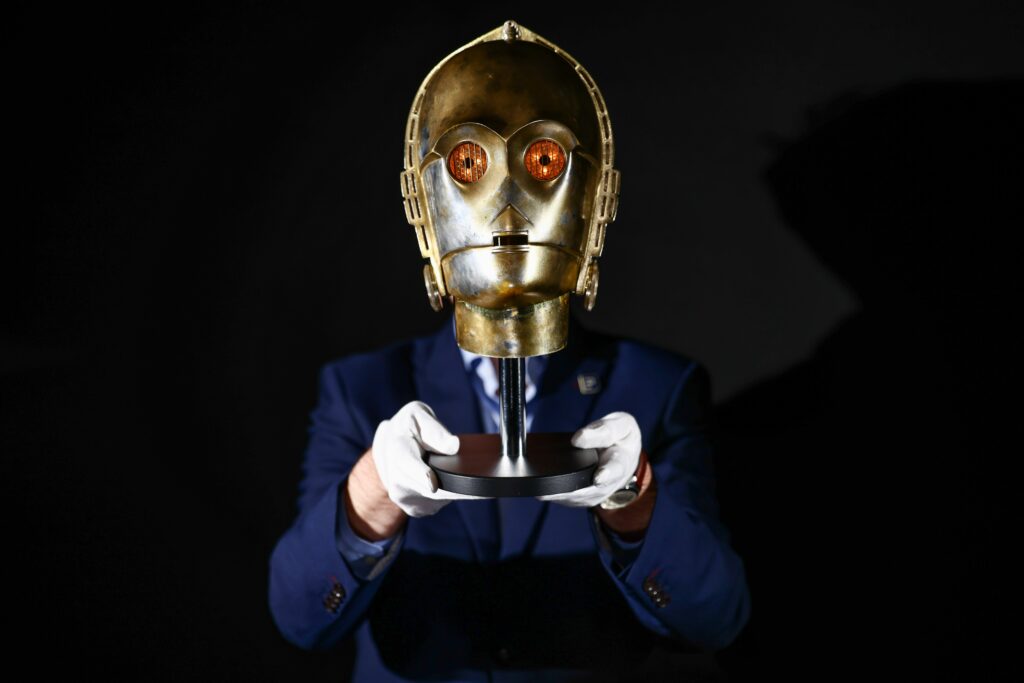A harpoon gun from “Jaws,” a jacket worn by “The Terminator,” and a “Star Wars” lightsaber hilt and C-3PO head are among the eye-catching items to be sold at auction next month.The collection of around 1,550 pieces of film and TV history will go under the hammer over three days from March 25, with in-room bidding on the first day only at the Petersen Automotive Museum in Los Angeles.From props to costumes, a selection of the memorabilia will also go on show for a day — on March 11 — at The Maybourne Beverly Hills hotel.The lots, which also include the so-called Marauder’s Map from the “Harry Potter” films, have a combined pre-sale estimate of $9 million, according to Propstore, the auctioneers staging the sale.It noted that buyers from around the world, who increasingly utilise online bidding, were forging a new global collectors market.”We’re seeing 20 to 30 percent more engagement, more registration, more people bidding,” Ibrahim Faraj, Propstore’s UK consignments manager, explained at a media preview of some British-based items before they headed to California.”It’s growing bigger and it’s the new, modern thing people are collecting now.”- ‘Star Wars history’ -The fibreglass C-3PO head worn by “Star Wars” stalwart Anthony Daniels in “The Empire Strikes Back” (1980) is near the top of the pricing charts, with an estimate of $350,000 to $700,000.Featuring illuminated eyes in the film, and with original wiring in the right socket, this particular C-3PO head boasts several unique features including a forehead antenna.”These things rarely come up… so it’s quite exciting,” Faraj said. Another “Star Wars” piece of memorabilia on offer is the lightsaber hilt from “The Force Awakens,” which is valued at up to $100,000.”This is no ordinary lightsaber,” he noted, branding it “the Skywalker” version as it was used by Luke Skywalker (Mark Hamill) and Rey (Daisy Ridley).They rediscover it in the 2015 installment after prior generations wield it — albeit another model — in earlier franchise films.”It’s arguably one of the most important pieces in ‘Star Wars’ history,” Faraj argued.- ‘Absolutely brilliant’ -The harpoon gun wielded by Quint (Robert Shaw) and Matt Hooper (Richard Dreyfuss) in Steven Spielberg’s 1975 favourite “Jaws” is expected to generate similar buzz.Estimated to fetch up to $500,000, it is being offered alongside Quint’s Fenwick fishing rod and reel, which featured during the film’s early shark encounter scenes.The rod is priced at up to $150,000, with Propstore branding the two props “the most significant artifacts to ever surface from the movie” at auction.The jacket from the 1984 cult classic “The Terminator” will require similarly deep pockets, with a price estimate of $75,000 to $150,000.It was worn during the first half of the film, after the T-800 cyborg steals and wears it through several violent sequences.Featuring a leather collar, metal chains over the left shoulder, and metal studs on the back, it has been heavily distressed with stage blood, rips, mock bullet holes, and burns. Two top lots from Ridley Scott’s “Gladiator” (2000) will also be offered, including the helmet and mask worn by Maximus (Russell Crowe) in his arena battles. That is predicted to go for up to $250,000.Meanwhile the rare Marauder’s Map joins other “Harry Potter” movie props in the auction and is expected to fetch up to $80,000.”It pops up, it opens out, it’s absolutely brilliant,” Faraj said.