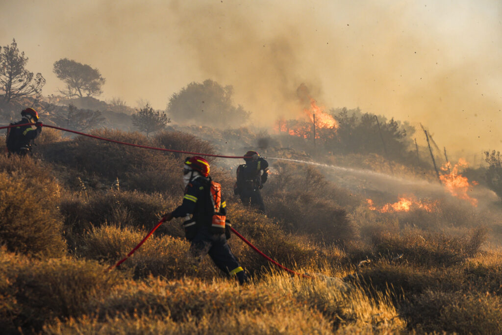 Les pompiers grecs luttaient contre les flammes jeudi dans le sud-est de l’île de Crète, qui ont entraîné l’évacuation par précaution de quelque 5.000 personnes, mais aussi près d’Athènes, selon les autorités. Dans la Turquie voisine, deux incendies faisaient également rage dans la province touristique d’Izmir.A une trentaine de kilomètres à l’est d’Athènes, près du port de Rafina, actif notamment pour les ferries à destination de certaines îles touristiques, un feu s’est déclaré jeudi après-midi, attisé par les vents importants qui soufflent dans cette zone périurbaine. “D’importants moyens terrestres et aériens luttent pour contenir l’incendie”, a annoncé Vassilios Vathrakoyannis, porte-parole des pompiers lors d’un point-presse, avec 170 pompiers déployés, 48 véhicules, 17 avions et 7 hélicoptères.Quelque 300 personnes ont été évacuées et 51 secourues, a-t-il indiqué.Il a également prévenu que les prochains jours “s’annoncent difficiles” en Grèce en raison d’une hausse des températures attendue associée à des vents violents, notamment dans la région d’Athènes.En Crète, l’une des principales destinations touristiques de Grèce, l’incendie qui s’est déclenché mercredi dans des broussailles a poussé les autorités à évacuer “3.000 touristes et 2.000 habitants dans la nuit de mercredi à jeudi”, a assuré le président de l’Union des hôteliers de la région, Yorgos Tzarakis, à l’AFP.”Six hôtels et de nombreuses chambres louées par des touristes ont été évacués” dans la région autour de la ville côtière de Iérapetra, selon lui.”La plupart des touristes ont été transférés dans le nord de l’île”, la plus grande de Grèce, a-t-il ajouté, joint par téléphone.- Message d’urgence -Près de Rafina, les fumées se sont répandues jusqu’aux abords de l’aéroport international d’Athènes sans toutefois perturber le trafic aérien.La télévision publique ERT a diffusé des images de maisons brûlées tandis que Dimitris Markou, le maire des communes de Spata-Artemis touchées par le feu avançait le chiffre de “5 à 6 maisons incendiées et des véhicules”.”La situation est très difficile”, a également assuré l’élu de ces communes proches de l’aéroport, à l’agence de presse ANA. “Le front de feu est vaste. Les vents changent de direction”, a-t-il ajouté. “Nous livrons une grande bataille avec toutes nos forces pour que l’incendie soit maîtrisé avant la tombée de la nuit”.La route principale en direction d’Athènes a été bloquée à la circulation, et selon ERT, les autorités portuaires ont interdit à un ferry d’accoster.Dans la Turquie voisine, deux incendies ravagent les forêts depuis mercredi soir de part et d’autre de la ville d’Izmir, poussés par des vents changeants de plus de 85 km/h qui compliquent le travail des pompiers, selon les responsables locaux.En Crète, des renforts ont été envoyés d’Athènes pour aider les pompiers locaux dont la tâche est rendue difficile par l’intensité des vents qui soufflent sur la région. Quelque 270 pompiers, 10 hélicoptères et des drones luttent contre les flammes, selon les pompiers.- Terrain accidenté -La lutte contre le feu est rendue particulièrement difficile par le terrain accidenté et aride dans cette partie de la plus grande île de Grèce.Selon des médias, des maisons et des cultures, en particulier des serres, ont été endommagées dans cette région productrice de légumes et de fruits.Outre l’agriculture, Iérapetra qui compte 23.000 d’habitants, est une station balnéaire. Comme sur le reste de l’île, la saison touristique bat son plein.Le mois de juillet est chaque année “le plus chaud de l’été et le risque d’incendie est toujours très fort”, a souligné le porte-parole des pompiers grecs.Au cours des dernières 24 heures, 40 incendies de végétation et de forêt se sont déclarés, selon M. Vathrakoyannis.La Grèce a jusqu’ici été épargnée par la canicule qui frappe une partie de l’Europe, en particulier l’Espagne, le Portugal et la France.Mais à partir de ce weekend, les températures vont grimper et atteindre jusqu’à 43°C dans certaines régions, selon les prévisions météorologiques de la chaîne ERT. Le risque d’incendies reste lui aussi très élevé vendredi dans plusieurs régions, dont celle d’Athènes, l’Attique.Située dans le sud-est de l’Europe sur la Méditerranée, la Grèce est particulièrement vulnérable aux incendies chaque été, alimentés par des vents violents, la sécheresse et des températures élevées. Quelque 45.000 hectares avaient été brûlés, selon le WWF Grèce et l’Observatoire national d’Athènes.Mais 2023 reste l’année la plus destructrice en terme de superficie brûlée avec près de 175.000 hectares partis en fumée et 20 morts.