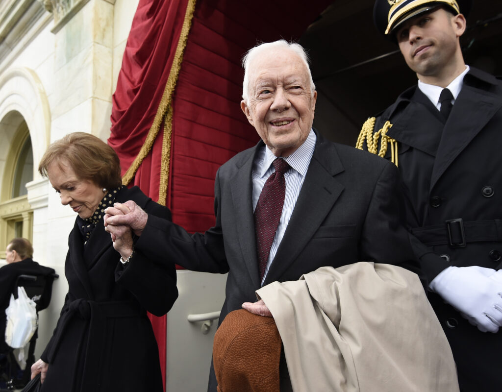 L’ex-président américain et prix Nobel de la paix Jimmy Carter est mort dimanche à l’âge de 100 ans dans sa ville natale de Géorgie, dans le sud-est des Etats-Unis, provoquant une pluie d’hommages de ses successeurs à la Maison Blanche et dans le monde.Le président sortant Joe Biden a décrété une journée de deuil national le 9 janvier en l’honneur du démocrate, salué par de nombreux dirigeants étrangers pour son engagement en faveur de la paix et des droits humains bien au-delà de son unique mandat (1977-1981).”Jimmy Carter, 39e président des Etats-Unis et lauréat du prix Nobel de la paix en 2002, est décédé paisiblement dimanche 29 décembre à son domicile de Plains, en Géorgie, entouré de sa famille”, a annoncé sa fondation Carter Center dans un communiqué.”Mon père était un héros, pas uniquement pour moi, mais pour tous ceux qui croient en la paix, aux droits de l’Homme et à l’amour désintéressé”, a déclaré Chip Carter, le fils de l’ancien dirigeant démocrate cité par la fondation.Tous les anciens présidents américains qui lui ont succédé se sont empressés de saluer la longue existence de celui que rien ne destinait à être président et qui était l’ancien locataire de la Maison Blanche le plus âgé.Le démocrate et 46e président sortant Joe Biden, 82 ans, a demandé lors d’une adresse à la Nation que la vie de son lointain prédécesseur soit “évaluée à l’aune de ce qu’il a fait, pas de ce qu’il a dit”. Il a annoncé la tenue de funérailles nationales dans la capitale fédérale Washington, sans en préciser la date, pour l’architecte des accords de Camp David qui ont abouti au premier traité de paix entre Israël et un pays arabe, l’Egypte, mais à l’héritage terni par la crise des otages en Iran.Le milliardaire républicain Donald Trump, qui fera son retour à la Maison Blanche le 20 janvier, a fait part de son “plus grand respect” pour Jimmy Carter qui “a travaillé dur pour que l’Amérique soit meilleure”.Il fut “un homme remarquable”, selon le démocrate Barack Obama, et “a œuvré sans relâche pour un monde meilleur et plus juste” a renchéri le démocrate Bill Clinton. Ce qu’il a accompli “inspirera des générations d’Américains”, a salué le républicain George W. Bush.Jimmy Carter avait annoncé en 2015 qu’il souffrait d’un cancer du cerveau et bénéficiait de soins à domicile depuis près deux ans.Après une série d’hospitalisations, il avait en février 2023 “choisi de passer le temps qu’il lui restait” chez lui, entouré de ses proches. Il y recevait des soins palliatifs.Des élus, dirigeants et responsables associatifs s’étaient alors empressés de saluer la carrière de ce président atypique, ancien militaire et propriétaire d’une exploitation familiale d’arachides.Son épouse et fidèle compagne de route, Rosalynn, est décédée à ses côtés le 19 novembre 2023 à l’âge de 96 ans. Elle a été enterrée à Plains, après un hommage national. Le visage émacié, Jimmy Carter y était présent, pour l’une de ses rares apparitions publiques ces dernières années.- Camp David et crise des otages -Jimmy Carter avait été élu à la Maison Blanche en 1976, dans une Amérique encore marquée par le scandale du Watergate qui avait poussé le président Richard Nixon à la démission.Président d’un seul mandat, il fut le premier chef d’Etat américain à reconnaître la République populaire de Chine. Le président chinois Xi Jinping s’est dit lundi “profondément attristé” par la disparition de celui qui a “contribué de façon significative à faire avancer les relations entre la Chine et les Etats-Unis et encourager des échanges amicaux et la coopération entre les deux pays”.Jimmy Carter “avait de longue date contribué de façon significative à faire avancer les relations entre la Chine et les Etats-Unis et encourager des échanges amicaux et la coopération entre les deux pays”, a déclaré Xi Jinping, se disant “profondément attristé par son décès”, selon CCTV.Artisan des accords de Camp David qui ont abouti, en mars 1979, à la signature du traité de paix israélo-égyptien, le 39e président des Etats-Unis avait été vivement critiqué dans son pays lors de la prise d’otage d’Américains en Iran.L’annonce, le 24 avril 1980, de l’échec de la mission militaire pour assurer leur libération avait anéanti ses espoirs de réélection.En 1982, après avoir quitté la Maison Blanche, Jimmy Carter a fondé le Carter Center pour promouvoir le développement, la santé et la résolution des conflits à travers le monde.En 2002, il est récompensé du prix Nobel de la paix, pour “ses décennies d’efforts infatigables afin de trouver des solutions pacifiques à des conflits internationaux”.De M. Carter, le monde se souviendra de “sa solidarité avec les plus vulnérables, sa grâce constante et sa foi inébranlable dans le bien commun et notre humanité commune”, a déclaré lundi le secrétaire général des Nations Unies Antonio Guterres.- Sur les chantiers à 90 ans -Très impliqué dans l’ONG Habitat for Humanity, il travaillait encore sur des chantiers caritatifs à 90 ans passés, toujours aux côtés de sa femme Rosalynn, rencontrée en 1945.Mais en 2019, ce chrétien très religieux avait connu une série de problèmes de santé et été hospitalisé à plusieurs reprises.Il avait timidement commencé à s’effacer de la vie publique, absent par exemple en janvier 2021 de la cérémonie d’investiture de Joe Biden, qu’il avait toutefois reçu dans sa petite ville natale de Plains, en Géorgie, où il résidait depuis son départ de Washington.Devant la Maison Blanche dimanche soir, des Américains ont exprimé leur émotion, à l’instar de Yoni Neirman, venue du Vermont (nord-est) pour qui Carter “fut un vrai homme d’Etat, ce genre de personnalité qui ne 