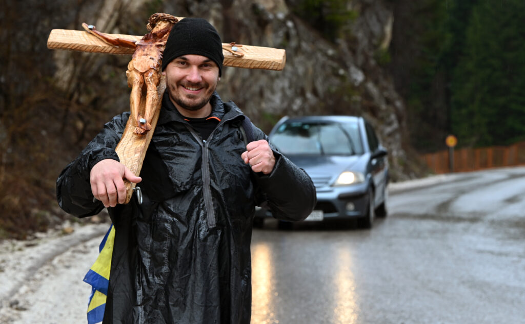 A genoux, appuyé sur un crucifix en bois, sous une pluie battante, Josip Jelinic prononce des mots rares en Bosnie, pays dont les plaies sont encore à vif, 30 ans après la guerre : “Je pardonne à tout le monde, et je prie pour le pardon.”Sa croix de 8 kilos sur le dos, un drapeau de la Bosnie accroché au sac à dos, il traverse villes et villages, va d’un monument aux morts à un autre, et rend hommage aux victimes des trois communautés qui forment le pays – bosniaques musulmans, serbes orthodoxes et croates catholiques.En pleine crise politique et alors que les dirigeants des Serbes de Bosnie multiplient les provocations sécessionnistes, le pèlerinage de ce catholique de 32 ans a un grand retentissement dans ce pays des Balkans.Les gens sortent de chez eux pour l’inviter à manger, lui proposent un logement, les voitures klaxonnent, leurs occupants s’arrêtent sur la route pour l’embrasser, faire une photo ou lui donner de l’argent “pour la route”, souvent les larmes aux yeux.Mardi, dans la cour de la mosquée blanche de Stupni Do, au coeur de la Bosnie, le jeune homme se fait tout petit au pied d’un monument qui rend hommage aux 38 civils bosniaques tués en octobre 1993 par des membres des forces croates de Bosnie.Les yeux fermés, front appuyé contre la croix, il prie sous le regard de l’imam Ramiz Zubaca.”Seigneur, tu connais la douleur de ce peuple, tu sais leurs souffrances. Je te prie pour que la guerre ne survienne plus jamais en Bosnie-Herzégovine. Je te prie de nous offrir la paix, toi qui en es le roi.”- 1.000 kilomètres -Honorés de cette visite, l’imam et quelques villageois l’invitent dans la mosquée. La discussion est chaleureuse autour d’une table ornée d’un bouquet de roses rouges. Les hôtes jeûnent – c’est le ramadan – mais un homme apporte des gâteaux, des dattes chocolatées et un jus de cerises au marcheur.”Ca signifie beaucoup pour nous”, dit M. Zubaca, assurant que les trois communautés du pays “sont prêtes” pour une véritable réconciliation.”Mais le problème, ajoute-t-il, c’est la politique qui, malheureusement, s’impose comme une entrave à la réconciliation. Elle produit des problèmes artificiels, amène le doute, l’insécurité. Ce que Josip fait, c’est ce dont nous avons besoin.”Stupni Do est l’une des étapes du “chemin de croix” de 1.000 kilomètres que Josip Jelinic a entamé le 26 février au sanctuaire marial de Medjugorje (sud). Sa “marche pour la réconciliation des peuples en Bosnie-Herzégovine” doit se terminer le 18 avril, deux jours avant Pâques.”Je marche depuis vingt jours et je rencontre des gens des trois communautés. Ce sont tous des gens bien qui m’ont ouvert leur coeur. Une écrasante majorité des gens souhaite la paix”, assure le pèlerin lors d’une halte entre Stupni Do et le village de Borovica, où 18 civils et militaires croates ont été tués en novembre 1993 par des membres des forces bosniaques.- “C’est ça la Bosnie” -Le conflit inter-communautaire (1992-1995) a fait près de 100.000 morts en Bosnie.Né pendant la guerre, Josip ne s’en souvient pas. Mais ce physiothérapeute de Ljubuski (sud), et depuis peu évangélisateur catholique, dit aller à la rencontre de la douleur.”Il y a sûrement des gens aujourd’hui encore qui sont très blessés”, dit-il à l’AFP”Nous ne devons pas oublier les victimes, et nous ne les oublierons jamais (…) Mais pour nous, pour la paix dans notre coeur, j’appelle au pardon”, car “la rancune est un poison qui ravage l’être humain”.”C’est exceptionnel, rare, quel honorable jeune homme ! Nous avons besoin de ça, et pas de tensions entre les peuples”, dit Ismet Abdulahovic, un retraité bosniaque de 68 ans qui s’arrête sur la route à Vares pour saluer Josip.Un peu plus loin, dans le village de Pogar, le jeune homme doit s’arrêter. Andjelka Petrovic, 52 ans, et son mari, Croates, installent une table devant leur maison et insistent pour lui servir à manger et à boire.”Il est porteur de messages d’amour, de paix. Il a uni tous les gens, toute la Bosnie-Herzégovine”, dit Andjelka, 52 ans, “émue et honorée”.”C’est ça la Bosnie!”, veut croire Josip entre deux bouchées.