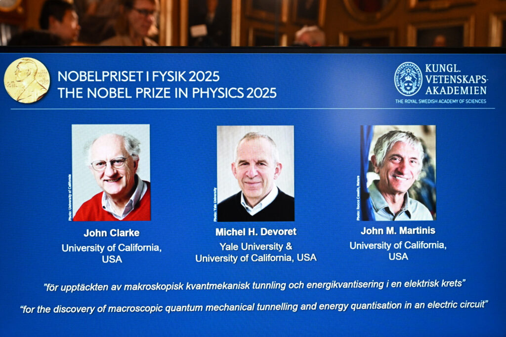 Le prix Nobel de physique 2025 a été décerné mardi à un trio britanno-franco-américain pour la découverte à l’échelle macroscopique de “l’effet tunnel” en mécanique quantique, une science qui décrit le monde de l’infiniment petit.Les trois physiciens ont été récompensés “pour la découverte de l’effet tunnel quantique macroscopique et de la quantification de l’énergie dans un circuit électrique”, a déclaré le comité Nobel.Une question majeure en physique est celle de la taille maximale d’un système pouvant démontrer des effets de mécanique quantique.Cette science contre-intuitive décrit la façon dont les choses fonctionnent à des échelles incroyablement petites – au niveau des particules – où les choses peuvent simultanément exister, ne pas exister et être quelque part entre les deux.Par exemple, lorsqu’une balle ordinaire frappe un mur, elle rebondit. Mais à l’échelle quantique, une particule peut en réalité traverser directement un mur comparable, un phénomène appelé “effet tunnel”.Le prix décerné mardi récompense des expériences menées dans les années 1980 qui ont montré que l’effet tunnel quantique peut également être observé à une échelle macroscopique, impliquant de multiples particules, grâce à l’utilisation de supraconducteurs.Ils ont réalisé une série d’expériences pour démontrer que “les propriétés étranges du monde quantique” peuvent être rendues concrètes dans un système assez grand pour être tenu dans la main, explique l’Académie des sciences de Suède.Leur système électrique supraconducteur pouvait passer d’un état à un autre comme s’il traversait directement un mur. Ils ont également montré que le système absorbait et émettait de l’énergie par quantités de tailles précises, exactement comme le prédit la mécanique quantique.”Ce prix récompense une expérience qui élève l’échelle à un niveau macroscopique, c’est-à-dire à une échelle que nous pouvons comprendre et mesurer selon les normes humaines”, a expliqué pour l’AFP Ulf Danielsson du comité Nobel de physique.- “Fondement de toute technologie numérique” -“C’est merveilleux de pouvoir célébrer la manière dont la mécanique quantique centenaire offre continuellement de nouvelles surprises. Elle est également extrêmement utile car la mécanique quantique est le fondement de toute technologie numérique”, a souligné Olle Eriksson, le président du Comité Nobel de physique.Ces découvertes jettent les bases “pour développer la prochaine génération de technologies quantiques, notamment la cryptographie quantique, les ordinateurs quantiques et les capteurs quantiques”, a ajouté le jury.”C’est la surprise de ma vie!”, a réagi le physicien John Clarke, 83 ans, joint par le comité Nobel lors de la conférence de presse.”Nous n’aurions jamais imaginé que cette découverte ait un tel impact”, a-t-il dit, soulignant que lui et les deux autres lauréats “étaient alors submergés par le poids de la compréhension de la physique et des calculs qui entraient en jeu”.L’exemple le plus probant de l’utilité de cette découverte est le téléphone mobile. “C’est notamment grâce à tous ces travaux que les téléphones portables fonctionnent”, a dit John Clarke.Lui et ses collègues Michel Devoret, 72 ans, et John M. Martinis, né en 1958, travaillent à l’Université de Californie.Pour Eleanor Crane, physicienne quantique au King’s College de Londres, le fait qu’il “soit parti aux Etats-Unis est un exemple de la fuite des cerveaux, un phénomène qui est en train de s’inverser avec la nouvelle administration” Trump, a-t-elle dit à l’AFP.”La coopération est essentielle aux progrès de la science — et en particulier la coopération internationale, sans laquelle une grande partie de ces recherches n’aurait pas pu être réalisée”, a-t-elle ajouté.Les coupes budgétaires décidées par Donald Trump alimentent le débat sur le risque d’affaiblissement de la recherche américaine à moyen terme.L’an dernier, le prix Nobel de physique avait distingué le Britanno-Canadien Geoffrey Hinton et l’Américain John Hopfield pour leurs recherches dès les années 1980 sur les réseaux de neurones artificiels, ouvrant la voie au développement de l’intelligence artificielle contemporaine.A la réception du prix, les deux scientifiques s’étaient dit très inquiets des récentes avancées technologiques de l’IA.Le Nobel consiste en un diplôme, une médaille d’or et un chèque de 11 millions de couronnes suédoises (près d’un million d’euros) à partager entre les lauréats.