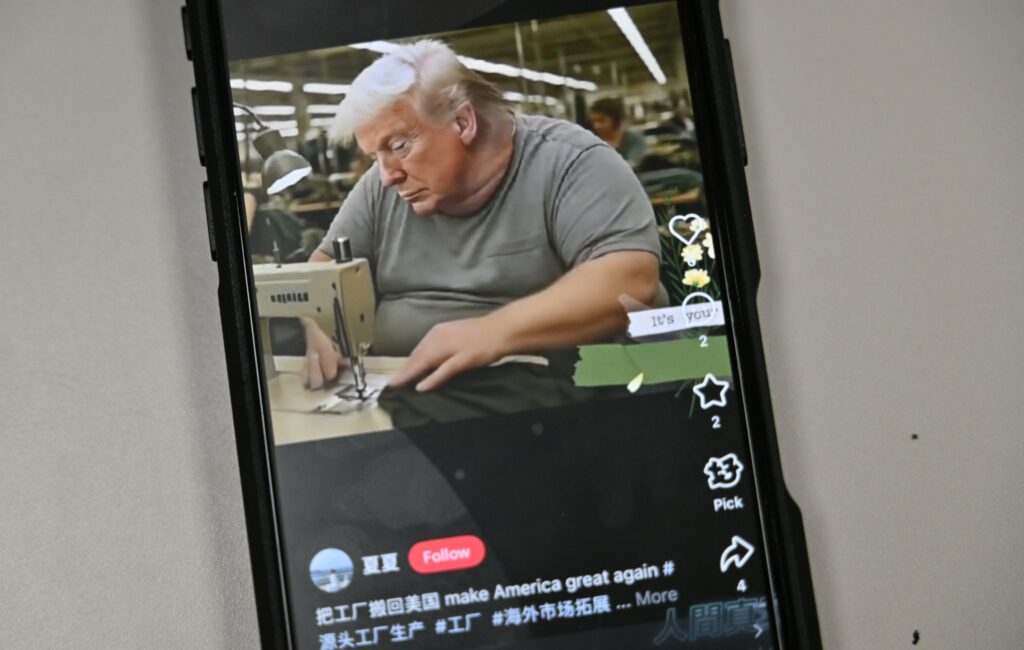 Des rangées d’ouvriers américains en surpoids, confus, s’emmêlant les doigts dans des machines à coudre: l’image, générée par intelligence artificielle, tourne en dérision les Etats-Unis contraints de produire eux-mêmes leurs biens de consommation en raison de la guerre commerciale.Sur l’internet chinois, très contrôlé, les surtaxes colossales imposées par Washington aux produits chinois ont déchaîné les publications sarcastiques et humoristiques – non sans une pointe de chauvinisme.Les Etats-Unis ont imposé des droits de douanes supplémentaires sur les produits chinois pouvant atteindre jusqu’à 145%, alors que Washington a suspendu l’escalade de ses taxes douanières pour le reste du globe.S’ajoutant à ceux imposés par l’administration Biden, ces surtaxes peuvent atteindre 245% dans certains secteurs.La Chine a répliqué par ses propres taux majorés de 125 points de pourcentage sur les produits américains et affirme vouloir mener ce bras de fer commercial “jusqu’au bout”.En écho à la rhétorique officielle, les publications moquant la dépendance américaine aux produits chinois ont inondé les réseaux sociaux.Dans une vidéo, un internaute affirme vouloir montrer dans ses mains les biens américains qu’il a achetés… avant d’ouvrir ses paumes vides.Ses dizaines de vidéos se moquant des Etats-Unis cumulent des millions de vues sur l’application de vidéos TikTok, bloquée en Chine par les autorités mais qui reste accessible via un réseau privé virtuel (VPN).Ces publications sont un moyen “d’évacuer sa colère”, explique à l’AFP l’auteur de ces vidéos, un internaute de la province chinoise du Liaoning (nord-est), répondant au pseudonyme de “Budddhawangwang”.Ce trentenaire explique avoir déménagé en Californie en 2019 avant de “jeter” sa carte de résident permanent quatre ans plus tard, furieux face aux “préjugés contre la Chine”.Cela inclut, selon lui, de “fausses informations” sur le Xinjiang, région du nord-ouest du pays, où Pékin est accusé de mener une répression des Ouïghours et d’autres ethnies musulmanes – des allégations fermement démenties par la Chine.Ses vidéos lui permettent aujourd’hui de “contester la propagande occidentale”, affirme-t-il.- Elon Musk à l’usine -Le président américain assure que ses surtaxes aideront à rapatrier la production manufacturière aux États-Unis après des décennies de délocalisations. Une perspective peu réaliste, selon des internautes chinois.Des vidéos générées par intelligence artificielle, devenues virales, montrent Donald Trump, son vice-président JD Vance, et le magnat de la tech Elon Musk sur des chaînes d’assemblage de chaussures ou d’iPhones.Une autre publication affirme qu’une robe portée par la porte-parole de la Maison Blanche, Karoline Leavitt, vient de la plateforme chinoise de commerce en ligne Taobao.”Ils critiquent le ‘Made in China’ (“Fabriqué en Chine”, ndlr) au travail, mais profitent du ‘Made in China’ dans la vie”, ironise un commentaire.Une autre publication partagée par Mao Ning, une porte-parole du ministère chinois des Affaires étrangères, représente la célèbre casquette rouge de Donald Trump avec une étiquette “Made in China” indiquant une hausse du prix – en raison des surtaxes américaines.- De l’inquiétude -Certains internautes chinois expliquent également aux Américains comment contourner les surtaxes prohibitives sur les produits de leur pays: venir directement les acheter en Chine.Dans une vidéo sur TikTok, un homme affirmant travailler dans une usine Birkenstock à Yiwu, coeur industriel de l’est du pays, propose de passer commande pour des paires de ces sandales à seulement 10 dollars.”Nous avons sept couleurs”, dit-il, en désignant plusieurs modèles exposés sur une boîte en carton.”Si vous êtes intéressés, contactez-moi”, ajoute-t-il.”Il y a clairement une forme de nationalisme” dans ces publications, affirme Gwen Bouvier, professeure à l’Université des études internationales de Shanghai, spécialiste notamment des réseaux sociaux.Mais derrière l’humour se cache probablement une vive inquiétude face à l’impact de la guerre commerciale sur l’économie chinoise, dépendante de ses exportations.Sur internet, des censeurs semblent d’ailleurs avoir effacé des commentaires alertant sur les répercussions possibles du conflit commercial pour les consommateurs et les industriels chinois.Sur Weibo, plateforme comparable au réseau social X, tous les commentaires associés au mot-dièse “#Les États-Unis vont imposer des droits de douane de 104% sur les produits chinois” ont ainsi été supprimés.A l’inverse, le mot-dièse “#Les États-Unis mènent une guerre commerciale tout en mendiant des oeufs” — une référence à la flambée des prix de cet aliment sur le territoire américain — a été consulté 230 millions de fois.