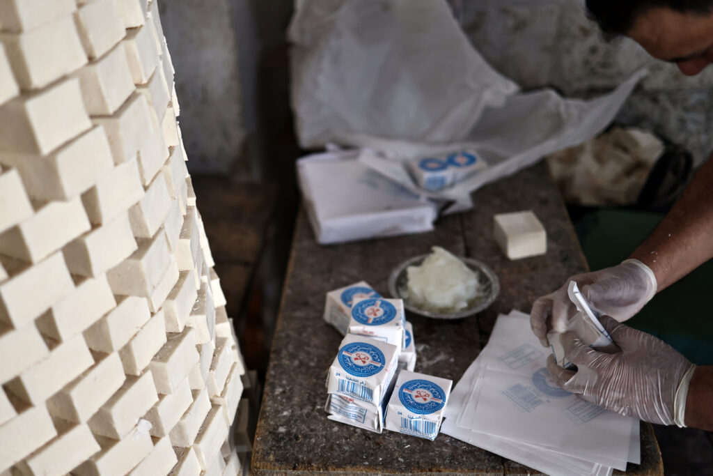 Oum Al-Abed a été initiée aux secrets du savon de Naplouse par une parente éloignée. Puis cette Palestinienne a transmis à son tour ce savoir-faire vieux de mille ans et désormais classé au Patrimoine mondial immatériel de l’humanité.Comme ailleurs dans la Cisjordanie occupée, dans de petits ateliers de Hébron (sud), Ramallah (centre), ou Tulkarem (nord), mais aussi dans la bande de Gaza, Oum Al-Abed confectionne le savon à la main chez elle, dans le village de Salem, à l’est de Naplouse.La fabrication est rustique. Un seau en plastique posé sur le béton de la petite cour, et trois ingrédients: de l’huile d’olive, de l’eau et de la soude.”La personne qui nous a appris à fabriquer du savon est une vieille parente du village d’Immatin. Il y a longtemps, environ 20 ou 30 ans, elle est venue ici et a fabriqué du savon”, raconte Oum Al-Abed.”Lorsqu’elle faisait cuire l’huile (pour la fabrication du savon), j’ai observé comment elle le faisait, j’ai appris le processus et j’ai commencé à fabriquer du savon moi-même. J’en ai fabriqué pour tous les habitants” de la localité.Derrière elle, des femmes s’activent. L’une vide un bidon d’huile d’olive, puis verse de la soude. D’une main elle mélange avec un long bâton en bois, de l’autre elle verse de l’eau et la mixture prend des couleurs safran.La cuisson se fait dans un grand tonneau, sous un feu doux alimenté de planches de bois. Puis la pâte encore liquide est versée dans des grands bacs couverts de plastique, et sèchera.C’est tout ce processus artisanal transmis de génération en génération qui a rejoint notamment la “hikaye (forme de récit narratif pratiquée par des femmes), la “dabkeh” (danse populaire) ou encore l’art de la broderie dans la liste des traditions palestiniennes inscrites au patrimoine culturel immatériel de l’Unesco.Selon l’organisation onusienne pour l’éducation, les sciences et la culture, l’utilisation de l’huile d’olive reflète “le lien étroit que la population entretient avec la terre”, et “la plupart des familles en Palestine partagent la tradition”, hommes et femmes participant à toutes les étapes du processus de production et les enfants aidant leurs parents à couper et à emballer le savon”.- “Préserver” -A Naplouse, grande ville palestinienne du nord de la Cisjordanie, la fabrique Touqan, créée en 1872, tourne toujours.Elle a été fondée “pendant la période ottomane et a continué à produire du savon depuis”, explique Naël Qoubbaj, son directeur. Dans le bureau, trônent fièrement des portraits jaunis d’hommes en cravate ou portant un fès, des membres de la famille d’Abdoul Fattah Touqan qui était l’un des cofondateurs de la fabrique de savon éponyme.Le rendement y est plus élevé que dans l’atelier artisanal d’Oum Al-Abed.Les barres de savon forment une sorte de mosaïque blanche géante, tapissant le sol d’une vaste salle. Un artisan pied-nu trace manuellement de longues lignes pour quadriller ce tapis de savon. Il en extraira, un par un, des cubes de savon qui seront empilés comme des tours circulaires de plusieurs mètres de haut. Pour M. Qoubbaj, la reconnaissance du savon de Naplouse par l’Unesco est “une reconnaissance par la communauté mondiale et ceux qui s’intéressent aux industries traditionnelles de l’importance de cet artisanat et de la nécessité de le préserver”. Cette reconnaissance, estime-t-il, est “d’autant plus importante que l’occupation israélienne”, en cours depuis 1967, “s’efforce de détruire ces industries traditionnelles”.