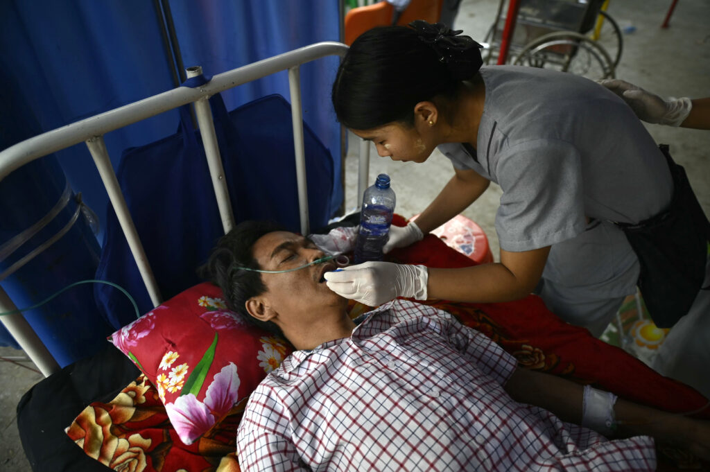 Entombed under his hotel bed for five days in the debris, two things enabled teacher Tin Maung Htwe to survive Myanmar’s devastating earthquake: old school lessons and his own urine.The primary school headmaster was on a training course in Sagaing, the closest place to the epicentre, when the 7.7-magnitude earthquake struck.The 47-year-old remembered a decades-old school lesson to shelter under a bed if the world starts to shake. “As soon as I went under the bed, the whole hotel fell down and was blocked. All I could afford was to say ‘save me’,” he said. “I was shouting ‘save me, save me’.”The Swal Taw Nann guesthouse where he was staying was reduced to a pile of bricks and twisted metal strips, the broken shell of its top storey resting on the remains of those below, and Tin Maung Htwe in a ground floor room underneath it all. “I felt as though I was in hell,” he said weakly, an oxygen tube running to his nose and two intravenous drips into his reduced frame.”My body was burning hot and all I needed was water. I couldn’t get that water from anywhere.”So I have to refill the water my body needed with fluids coming out of my body.”– ‘I am free’ –The intensity of destruction in Sagaing, closer to the epicentre, is far higher than in neighbouring Mandalay, with a much greater proportion of its buildings reduced to piles of debris. Great gouges have been opened up in the main road towards it –- jamming traffic and hampering those trying to help the victims -– and the Ava bridge across the Irrawaddy linking the two cities is down, one end of six of its 10 spans resting in the placid waters. Residents said the Myanmar Red Cross were recovering bodies from the site and were not expecting to find anyone alive when they located him, and a Malaysian rescue team was called in to extract him. One of eight siblings, his sister Nan Yone, 50, was one of several of his relatives watching and waiting as they worked at the site. “I can’t describe it,” said Nan Yone of his rescue on Wednesday. “I was dancing, crying and beating my chest because I was so happy.”When he arrived at Sagaing’s main hospital he gave her a thumbs-up and told her: “Sister I am very good.””His will is very strong and I think that is why he survived,” she said on the day he was rescued.As she spoke nurses tended to her semi-conscious brother on a outdoor gurney, his head lolling occasionally from side to side. No one is being treated indoors at the facility, for fear of an aftershock wreaking more havoc.”I am glad I am free now,” Tin Maung Htwe told AFP.”I wouldn’t be able to do anything if I was dead. I didn’t die so now I can do whatever I wish.” He wants to go back to his work as a schoolteacher. But he added: “I am considering becoming a Buddhist monk.”