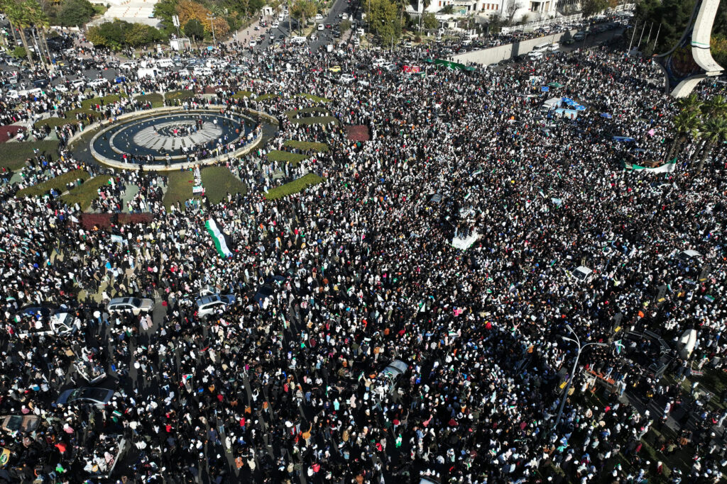 Dans l’immense cour de la mosquée des Omeyyades à Damas, des milliers de manifestants scandent en chœur “le peuple syrien est uni”, une scène inimaginable il y a encore une semaine, quand Bachar al-Assad était au pouvoir.Dimanche, la coalition armée dominée par les islamistes de Hayat Tahrir al-Sham (HTS) s’est emparée du pouvoir à Damas, à l’issue d’une offensive fulgurante de onze jours qui a renversé le pouvoir de Bachar al-Assad.”La Syrie a été libérée, nous avons été libérés de la prison dans laquelle nous vivions”, s’est exclamée Nour Zi al-Ghina, 38 ans, depuis la cour de la célèbre mosquée.”C’est la première fois que nous nous rassemblons en si grand nombre dans un seul lieu, la première fois que nous assistons à une telle scène. Nous n’avions jamais imaginé qu’un tel jour arriverait”, a insisté auprès de l’AFP cette diplômée en économie.Des milliers de Syriens ont convergé dès les premières heures de la journée de vendredi, jour de prière hebdomadaire, vers la mosquée des Omeyyades à Damas où flottait un parfum de fête et célébrations.Beaucoup brandissaient le drapeau de l’indépendance à trois étoiles, symbole du soulèvement prodémocratie de 2011, désormais adopté par les nouvelles autorités, ont constaté des journalistes de l’AFP.”Uni, uni, uni, le peuple syrien est uni”, ont scandé les fidèles.Des jeunes faisaient le signe de la victoire devant les caméras des médias arabes et occidentaux.Cette scène inédite à Damas a rappelé les souvenirs des premières manifestations pacifiques qui avaient éclaté dans les quatre coins de la Syrie, avant d’être réprimées dans le sang par Bachar al-Assad.- “Entamer le travail” -Quelques heures plus tôt, le chef de HTS, Abou Mouhammad al-Jolani, qui se fait appeler désormais par son vrai nom, Ahmad al-Chareh, avait “félicité le peuple syrien pour la victoire de la révolution” et demandé à la population de “descendre dans les rues pour exprimer leur joie”, dans une vidéo sur Telegram.Il avait ensuite appelé à “construire le pays”. Dans la vieille ville, des commerçants vendaient ces nouveaux drapeaux qu’il aurait été impossible de voir dans les rues de Damas il y a quelques jours. Sur un mur, des dizaines de photos de disparus et de prisonniers étaient affichées, avec des numéros de téléphone à appeler en cas d’informations sur leur sort.Depuis le début du soulèvement en 2011, qui a dégénéré en guerre civile, plus de 100.000 personnes ont péri dans les prisons du régime syrien, notamment sous la torture, estimait en 2022 l’Observatoire syrien des droits de l’homme (OSDH).Assistant à la prière de vendredi, Amani Zanhour, une professeure d’ingénierie informatique, soutient que plusieurs de ses étudiants ont disparu dans les geôles du régime.”Rien ne peut être pire que ce qu’il y avait. Nous n’avons pas peur de la situation”, a-t-elle indiqué à l’AFP, exprimant son soutien à un Etat basé sur les préceptes de l’islam mais respectueux des traditions des autres communautés religieuses.Un peu plus loin, Omar al-Khaled, venu tout droit de la province d’Idleb dans le nord-ouest, fief de HTS, n’en revient pas.”C’était mon rêve de venir à Damas, c’est la première fois de ma vie que je m’y rends”, a souligné le jeune couturier de 23 ans.”Je peux difficilement décrire ce que je ressens. Le peuple vivait étouffé, mais maintenant les portes se sont ouvertes”, a-t-il ajouté.Après plus d’un demi-siècle de pouvoir sans partage du clan Assad, le nouveau gouvernement affirme vouloir instituer “un Etat de droit”.Après la prière, les fidèles et d’autres habitants de Damas ont convergé vers la place des Omeyyades où un énorme drapeau a été brandi, sur le monument de l’épée damascène, près de l’ancien siège de l’armée.Mohammed al-Saad, un ancien cadre de HTS, se dit prêt à participer à la mise en place d’un nouveau gouvernement.”Ca fait 13 ans que nous attendons cela”, a affirmé l’homme de 32 ans, vêtu d’une veste, originaire de la province d’Idleb. “Nous sommes là pour entamer le travail”.