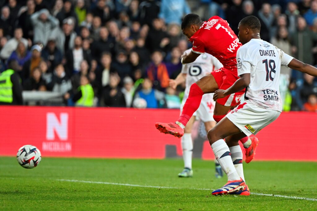Montpellier freine Lille, candidat au podium en forme européenne, et entretient l’espoir d’une remontée au classement après son nul 2-2 dimanche à la Mosson, lors de la 13e journée de Ligue 1, au bout d’une rencontre tendue.Par deux fois, l’équipe de Jean-Louis Gasset a trouvé les ressources mentales pour riposter à des penalties transformés par l’attaquant lillois Jonathan David (44e, 54e). Le défenseur Issiaga Sylla (45+2e) et l’attaquant Arnaud Nordin (90+3e) ont égalisé au bout d’une rencontre ternie par les expulsions tardives de Tanguy Coulibaly et Mitchel Bakker (90+9e).Coulibaly a touché l’entraîneur de Lille Bruno Genesio en dégageant un ballon, un fait de jeu qui a provoqué une échauffourée et ces deux cartons rouges. “Un jeune joueur a dégagé, je ne sais pas si c’est volontairement ou pas, et le ballon m’a tapé la jambe (…) Mais ce n’est pas ça qu’il faut retenir de ce match”, a estimé Genesio.Montpellier reste à la dernière place, mais garde le contact avec les autres candidats au maintien puisque la Paillade compte toujours trois points de retard sur le barragiste Nantes.Ce résultat, trois semaines après le succès devant Brest (3-1), lui permet d’entrevoir l’avenir d’un autre œil et de retrouver un peu de certitudes à domicile.A moins d’un large échec de Marseille face à Monaco, en fin de soirée, Lille (4e) ne grimpera pas sur le podium. Si les Dogues étirent leur invincibilité à 13 matches sans défaite, ils avaient mieux à faire à Montpellier.Quatre jours après leur succès à Bologne (2-1), l’équipe de Bruno Genesio, peu remaniée, a peut-être manqué de fraîcheur pour se créer plus d’occasions.Montpellier, positionné très bas, a plutôt bien contrôlé les Nordistes, avant d’être piégé juste avant et après la pause par deux penalties. Les deux fautes ont été commises par ses milieux défensifs Jordan Ferri et Joris Chotard aux dépens de Matias Fernandez-Pardo (44e) et de Rémy Cabella (54e), coupable par la suite d’un mauvais geste sur Téji Savanier.Par deux fois, l’avant-centre canadien David, auteur de ses huitième et neuvième buts, a trompé le gardien Benjamin Lecomte, seulement sollicité sur une frappe de Bakker (39e) et une frappe de Gabriel Gudmundsson (85e).Dans l’intervalle, dans le temps additionnel de la première période, Montpellier a égalisé grâce à son latéral gauche guinéen Sylla, qui a repris d’une tête décroisée un corner de Savanier (45+2).Dans une rencontre très équilibrée, le très remuant attaquant jordanien Mousa al-Tamari a eu la balle d’égalisation, mais sa frappe a ricoché sur la transversale de Chevalier.Montpellier a été récompensé de ses efforts et de sa ténacité par un but de Nordin dans le temps additionnel (90+3e) lui permettant d’arracher un nul mérité.