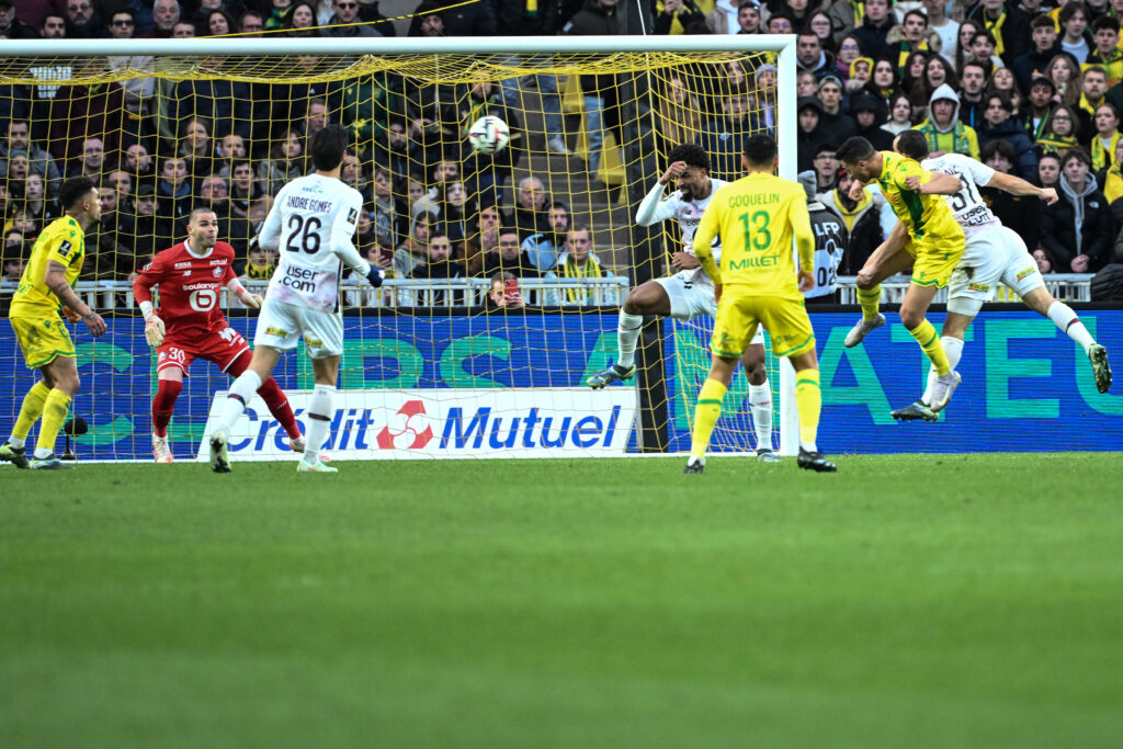 Eliminé en milieu de semaine de la Ligue des champions, Lille, bien qu’en supériorité numérique en fin de match, a perdu à Nantes (1-0), samedi lors de la 26e journée de la Ligue 1.Les Nordistes laissent passer une occasion de rejoindre Nice, accroché la veille par Auxerre (1-1), à la troisième place et restent cinquièmes avec 44 points.Grâce à un but de l’entrant Mostafa Mohamed (83e), les Canaris font, eux, une excellente opération dans la course au maintien en prenant provisoirement 6 points d’avance sur Le Havre, 16e et barragiste virtuel.Cette semaine risque de peser sur le moral du Losc, impuissant face à Dortmund mercredi et qui a vu son rêve européen s’arrêter en huitièmes de finale alors qu’il menait (1-1, 1-0) aux trois-quarts de la double confrontation.On attendait un rebond trois jours plus tard, face à un mal classé et si les hommes de Bruno Genesio ont dominé le match dans les grandes largeurs, leur insigne maladresse devant le but leur a coûté cher.Anthony Lopes a sorti un récital en s’étendant de tout son long sur une tête de Hakon Haraldsson (18e) peut-être un peu trop appliquée, avant que Marcus Coco n’intervienne in extremis devant Osame Sahraoui (31e) et que Jonathan David ne croise trop son tir (38e).En seconde période, les Dogues ont eu plus de mal à approcher des buts adverses même si Lopes a encore brillé devant Chuba Akpom (71e). Tois minutes plus tard, l’arbitre Benoît Millot a décidé d’expulser Jean-Charles Castelletto pour une “cravate” sur le même Akpom qui partait dans son dos (74e).A dix non seulement Lille a fini par encaisser un but, mais sa réaction après l’ouverture du score a été bien molle. La reprise de Mitchel Bakker (80e) et la volée au-dessus d’Ismaily (89e) ont été de nouvelles illustrations du manque de tranchant du Losc dans le dernier geste.On ne peut d’ailleurs même pas dire que la victoire des Jaunes, d’abord apathiques puis séduisants, soit un hold-up total.Les locaux ont quand même touché la transversale à trois reprises avant même le but décisif inscrit par Mostafa Mohamed d’une tête smashée (83e).Louis Leroux (10e), d’une frappe enveloppée au point de penalty, Saïdou Sow de la tête (58e) et Sorba Thomas, qui avait devancé Lucas Chevalier (69e), avaient ainsi trouvé la barre et retardé l’échéance.Au final, si Lille veut retrouver la Ligue des champions, il va devoir s’y prendre autrement et rapidement, alors que Nantes peut partir tranquille pendant la trêve internationale avec une confiance reboostée dans ses chances de maintien.