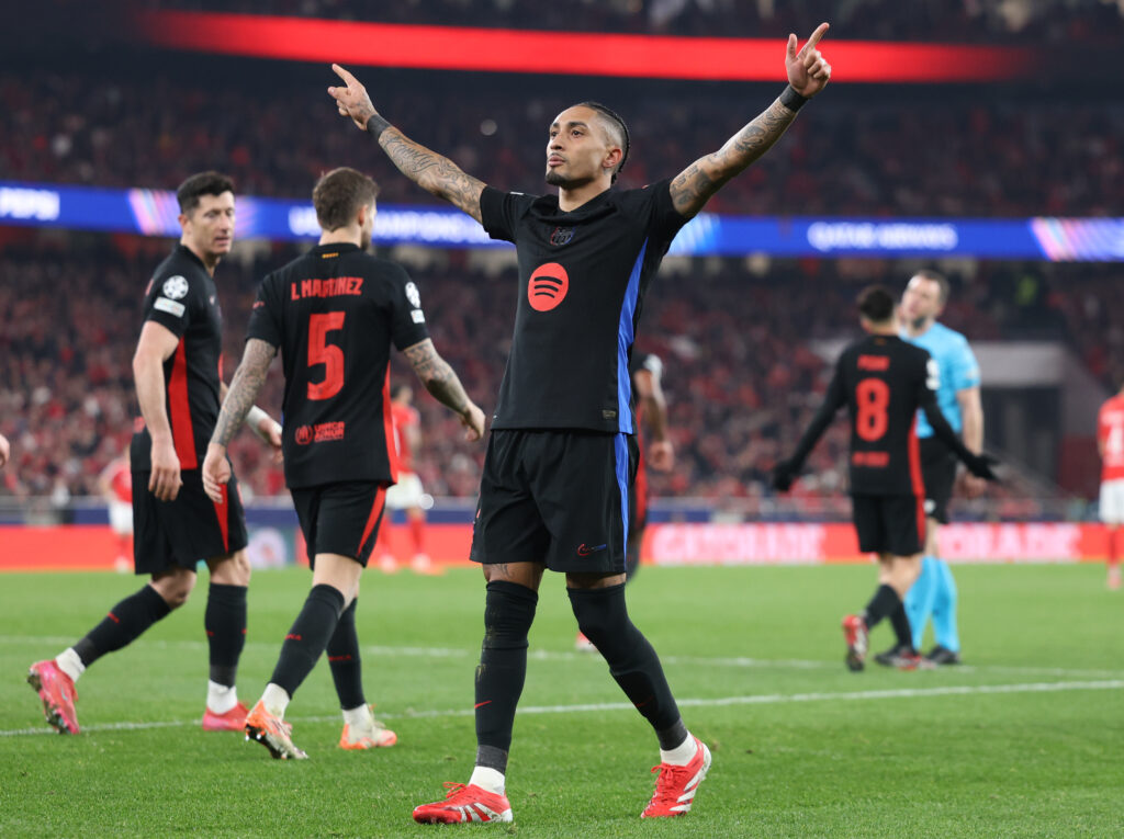 Le FC Barcelone s’est imposé mercredi soir sur la pelouse de Benfica (1-0) à Lisbonne, malgré sa réduction à dix dès le début de la première période, grâce à un but de Raphinha lors des 8e de finale aller de la Ligue des Champions.Après un début de match assez équilibré, il a fallu attendre la 60e minute pour que Barcelone fasse la différence grâce au Brésilien. L’attaquant brésilien a profité d’une erreur d’inattention d’Antonio Silva, pour récupérer le ballon et tenté sa chance en frappant fort du pied gauche, en dehors de la surface de réparation, sans que le gardien lisboète n’ait le temps de réagir (61e).Les hommes de l’Allemand Hansi Flick avaient commencé très fort, se montrant très offensifs dès les premières secondes de la rencontre.Mais ils ont trouvé devant eux une équipe, pourtant privée de plusieurs de ses poids-lourds, comme Di Maria ou Florentino, tous deux blessés, avec une défense bien organisée, un gardien, l’Ukrainien Anatoly Trubin, d’une grande efficacité et un Pavlidis, en grande forme, qui a su créer plusieurs occasions.A la 22e minute, le défenseur du Barça Pau Cubarsi a été expulsé pour avoir fauché l’attaquant grec Vangelis Pavlidis, les Catalans se retrouvant à dix contre onze jusqu’à la fin du match, mais les Aigles rouges de Benfica ont eu du mal à tirer parti de leur supériorité numérique, ne parvenant pas à concrétiser.- Une défense organisée -Après une première période achevée sur un score nul, et marquée par de nombreux cartons jaunes, malgré de belles occasions de Pavlidis pour Benfica et de Robert Lewandowski pour Barcelone, les deux clubs ibériques, qui s’étaient affrontés pendant la phase de ligue en janvier à Lisbonne (5-4 pour le Barça), sont repartis à l’assaut.Benfica, deuxième du championnat, avait lancé la première offensive avec une reprise du pied droit du milieu de terrain turc Kokçu, mais le ballon a été arrêté par Szcesny. Avant l’unique but de la rencontre par Raphinha, les Catalans ont semblé en difficulté et Hansi Flick s’apprêtait à effectuer quelques remplacements dans l’équipe.Dans les dernières minutes, le Benfica a fait face à une défense bien organisée et les hommes de Bruno Lage ne sont jamais parvenus à aller chercher une égalisation.