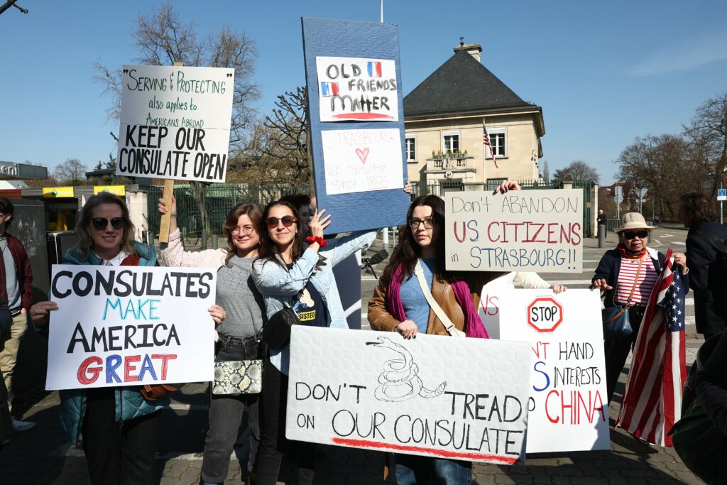 “C’est notre maison mère”: une manifestation contre une possible fermeture, sur ordre de l’administration Trump, du consulat américain à Strasbourg, a rassemblé vendredi une soixantaine de personnes, inquiètes de perdre une institution installée dans la ville depuis 1866.Sur le trottoir opposé au consulat, les manifestants, arborant pour certains le drapeau américain, ont brandi des pancartes sur lesquelles on pouvait lire: “Don’t abdandon US Citizens in Strasbourg” (N’abandonnez pas les citoyens américains à Strasbourg), “Consulates make America Great” (Les consulats font la grandeur de l’Amérique), “Russia + China will fill the vacuum” (Russie+Chine rempliront le vide) ou encore “Old friends Matter” (Les vieux amis comptent).Des médias américains ont rapporté ces derniers jours les plans éventuels de l’administration de Donald Trump de fermer plusieurs consulats en France pour réaliser des économies, dont celui de Strasbourg, où travaillent sept personnes. Mais aucune décision n’a été confirmée dans l’immédiat.”Je suis consternée”, déclare à l’AFP Emma Krasnopoler, 27 ans, historienne de l’architecture. “Ce consulat représente plus de 150 années d’amitié entre Strasbourg et les Etats-Unis. Ca représente aussi la protection des intérêts des entreprises américaines à Strasbourg et en Europe, et des relations diplomatiques et amicales avec l’Union Européenne. C’est très important.”Plusieurs manifestants s’inquiètent du maintien de certains partenariats, notamment universitaires, en cas de fermeture du site.”C’est une présence rassurante, je peux vous dire que c’est important pour les étudiants et leurs parents aux Etats-Unis de savoir qu’il y a cette présence ici”, dit Alex Neff, responsable du programme d’échanges universitaires “Access Study Abroad”.Plusieurs élus se sont joints à l’événement pour défendre le maintien des liens entre les Etats-Unis et la région, mais aussi avec les institutions européennes qui siègent à Strasbourg.”Le consulat américain est un acteur-clé de notre dynamique internationale, facilitant les échanges diplomatiques et économiques, et son départ pourrait avoir des répercussions non négligeables en termes de liens internationaux tissés de longue date entre les États-Unis et le Conseil de l’Europe”, a réagi dans un communiqué la maire de la ville, Jeanne Barseghian (EELV).Cette possible fermeture “est une menace pour nos relations diplomatiques et économiques”, a également déclaré sur LinkedIn Franck Leroy, président de la région Grand Est. “Avec d’autres élus, je me mobilise pour son maintien.””L’information change: Strasbourg est sur la liste, parfois oui, parfois non. Ce qu’on sait, c’est que Marseille reste ouvert, même si cette liste risque de changer”, indique Vivianne Beller, vice-présidente de l’association Alsace Etats-Unis.”C’est notre maison mère. C’est un réseau, ce n’est pas que pour les passeports”, se lamente-t-elle. “C’est un acteur de la vie politique, associative, des affaires. Et c’est aussi des amis qui pourraient se faire virer du jour au lendemain.”A Bordeaux, où le consulat est aussi sur la sellette, le maire (EELV) Pierre Hurmic s’est entetenu mercredi avec le consul général des Etats-Unis, Hector Brown. Ce dernier a remercié le maire de son soutien et de sa mobilisation pour le maintien du consulat général dans sa ville.Il a également transmis la position officielle du Département d’Etat, ainsi formulée: “Nous continuons d’évaluer notre posture globale dans le monde entier pour nous assurer que nous sommes le mieux placé pour relever les défis actuels au nom du peuple américain”.