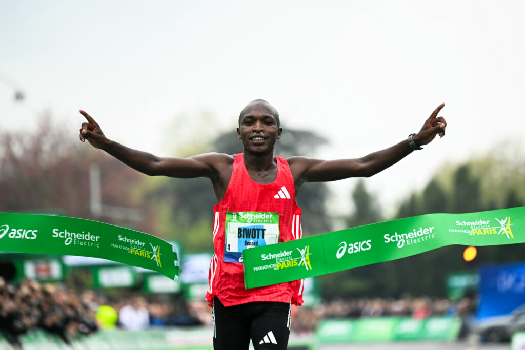 Sur une route pas encore complètement sèche et par un temps nuageux, le Kényan Benard Biwott, en solitaire, et l’Ethiopienne Bedatu Hirpa, au finish, se sont tous deux imposés dimanche lors du marathon de Paris.Après une première moitié de course peu soutenue, une vingtaine de coureurs, dont les favoris, s’est détachée au 23e kilomètre, avant que Biwott ne mette un coup d’accélérateur fatal à ses poursuivants à 10 kilomètres de l’arrivée.Largement en tête, le Kényan de 22 ans s’est même permis un sprint pour accélérer encore dans les derniers mètres, améliorer son record personnel (2 heures 5 minutes 25 secondes) et remporter son deuxième marathon en autant de participations, après celui de Francfort en octobre.Le Djiboutien Ibrahim Hassan, qui avait été le seul à suivre le Kényan sur son accélération, a franchi la ligne deuxième en 2 heures 6 minutes 13 secondes, devant un autre Kényan, Sila Kiptoo, qui explose son record personnel de près de deux minutes (2 h 06 min 21 sec).Chez les femmes, dix coureuses se sont rapidement démarquées en tête. A huit kilomètres de l’arrivée, elles n’étaient plus que quatre (Dera Dida, Bedatu Hirpa, Angela Tanui et Magdalena Shauri) à pouvoir prétendre au sacre dans les rues parisiennes. Ce sont finalement les deux premières, Ethiopiennes, qui se sont joué le titre au finish dans un remake du marathon de Dubaï mi-janvier.Au bout de l’effort, Hirpa a lâché Dida dans les derniers 500 mètres, avant d’haranguer la foule lorsqu’elle a compris qu’elle ne serait pas rattrapée.- Sixième succès pour Casoli -A 25 ans, elle décroche donc son deuxième marathon de l’année, après celui de Dubaï, déjà devant Dida.Après avoir cédé dans les derniers mètres, sa compatriote a terminé en 2 heures 20 minutes 49 secondes. La coureuse kényane Angela Tanui se place elle à la dernière place du podium en 2 heures 21 minutes 7 secondes.Détentrice du record de l’épreuve à Paris depuis 2022, la Kényane Judith Jeptum Korir a fini pour sa part huitième (2 h 25 min 30 sec).Dans la catégorie handisport, le Français Julien Casoli a gagné, à 42 ans, son sixième marathon de Paris en 1 h 33 min 03 sec en devançant lui aussi dans les 500 derniers mètres son compatriote, Thibault Daurat, qui participait à son tout premier marathon (1h 33 min 04 sec).Ils ont fait la course seuls en tête pendant plus de la moitié du parcours, après avoir lâché le Colombien Francisco Sanclemente (3e) et le Néerlandais Gert Schipper, vainqueur l’an dernier.Pour le premier marathon dans les rues parisiennes depuis le “Marathon pour tous” des Jeux olympiques, quelque 55.000 participants ont couru les 42,195 kilomètres dans les rues de la capitale, dont la majorité d’entre eux (51%) s’élançait pour la première fois sur cette distance.Le parcours était sensiblement le même que l’an dernier avec un départ des Champs-Elysées, en direction du bois de Vincennes, avant que les engagés ne reviennent le long de la Seine vers le bois de Boulogne pour franchir la ligne d’arrivée non loin de l’Arc de Triomphe.