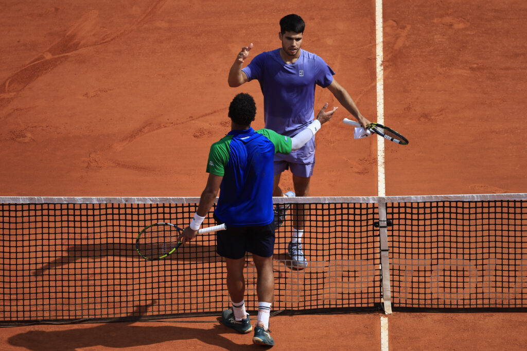 Le Français Arthur Fils a calé vendredi une troisième fois de suite en quarts d’un Masters 1000, vaincu par Carlos Alcaraz au tournoi de Monte-Carlo, d’où le tenant du titre Stefanos Tsitsipas a été expulsé par l’Italien Lorenzo Musetti.Au terme d’un peu moins de deux heures et demie de match sur la terre battue de Monte-Carlo, le verdict est cruel pour le chef de file du tennis français, abattu en conférence de presse après sa défaite 4-6, 7-5, 6-3 contre l’Espagnol (N.3 mondial): “Je suis comme un fou, ça m’énerve.” “C’est dur de perdre des matches comme ça. C’est agaçant, surtout quand on a des occasions”, a regretté à chaud le 15e joueur mondial. “Je suis au niveau, mais ça ne passe pas parce que je perds la concentration. Et il y a des moments où il ne faut pas la perdre…”, a soupiré le droitier, seul joueur du circuit à avoir atteint au moins les quarts de finale des trois premiers Masters 1000 de la saison.En mars à Indian Wells, le joueur né en région parisienne s’était incliné au tie-break du troisième set contre l’ex-N.1 mondial Daniil Medvedev (11e). Deux semaines plus tard à Miami, il avait éliminé le N.2 mondial Alexander Zverev en huitièmes de finale avant de céder contre le futur vainqueur du tournoi, le Tchèque Jakub Mensik (alors 54e). Alcaraz, qui affrontait Fils pour la première fois, atteint lui sa troisième demi-finale de la saison, après son titre à l’ATP 500 de Rotterdam en février et sa demi-finale à Indian Wells. – Tsitsipas sorti par Musetti -Il défiera pour une place en finale son compatriote et ami Alejandro Davidovich (42e), qui s’est débarrassé sans difficulté majeure de l’Australien Alexei Popyrin (27e), dominé 6-3, 6-2.”C’est un des matches les plus difficiles que j’aie joués cette année”, a soutenu Alcaraz après sa victoire contre Fils.Alcaraz (21 ans) n’avait jamais remporté de match à Monte-Carlo: il s’était fait éliminer dès son entrée en lice en 2022 et avait déclaré forfait les deux années suivantes. Sa conférence de presse était à peine terminée que l’Australien Alex De Minaur validait à son tour son billet pour les demi-finales, grâce à une victoire expéditive 6-0, 6-0 contre le Bulgare Grigor Dimitrov (18e).”C’est assez dingue”, s’est émerveillé le 10e mondial après cette double bulle. “C’est un sentiment d’autant plus génial que la terre battue m’a donné du fil à retordre dans ma carrière”, a poursuivi l’Australien de 26 ans.”Je suis très heureux de jouer de mieux en mieux chaque année” sur la surface ocre, s’est satisfait De Minaur, qui affrontera Lorenzo Musetti pour une place en finale.Dans le dernier match de la journée, l’Italien de 23 ans s’est en effet offert le triple lauréat du tournoi (2021, 2022 et 2024) Stefanos Tsitsipas. Vainqueur 1-6, 6-3, 6-4 après deux échecs en quarts de Masters 1000 (Paris 2022 et Monte-Carlo 2023), Musetti disputera samedi sa première demi-finale à ce niveau.Alors qu’il était mené 5-0 dans ses confrontations avec Tsitsipas avant sa victoire en quarts de finale, il possède un bilan équilibré contre De Minaur (1-1), qui l’a battu sur dur en 2022 à l’Open d’Australie mais s’est incliné sur gazon en 2024 au Queen’s.La victoire a “une saveur particulière”, a expliqué l’Italien: “non seulement parce que Tsitsipas est le tenant du titre mais aussi parce que je n’avais jamais gagné contre lui, il incarnait jusqu’ici un des défis les plus difficiles à relever dans ma carrière.”Alcaraz, dont le match lancera les demi-finales du simple samedi à 13h00 (11H00 GMT), a pour sa part battu Davidovich lors de leur unique duel sur le circuit ATP, en 2023 sur la terre battue de Barcelone.