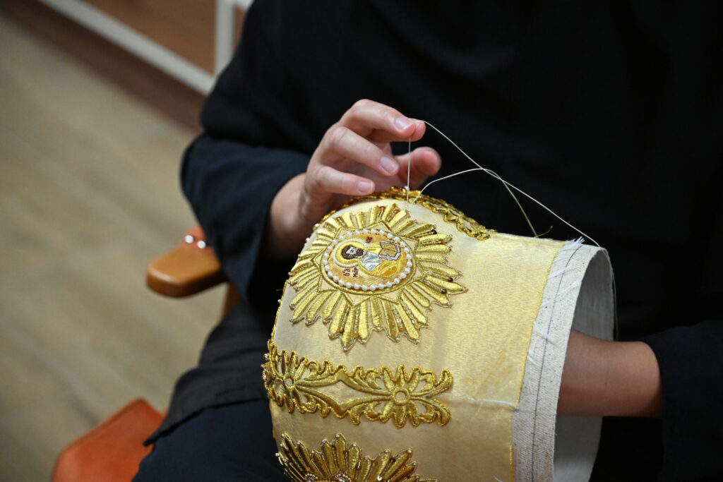Dans un silence que rien ne parait pouvoir troubler, sœur Élisabeth brode point après point au fil doré les motifs qui viendront orner la mitre d’un évêque, et qui font la renommée de son monastère de Macédoine du Nord à travers tout le monde orthodoxe.Entre ses mains expertes, la mitre -une coiffe que portent les prélats orthodoxes- qu’on lui a confiée pour réparation ressuscite et scintille comme si elle était faite d’or.Nichée en altitude à environ 130 km à l’ouest de la capitale Skopje, le monastère de Saint Georges le victorieux fabrique ou répare ces couvre-chefs ornés d’icônes, de perles, de fils d’or … dont la tradition remonte à l’empire byzantin.”Nous sommes les seules au monde à fabriquer ce type de mitre”, explique sœur Efimija, 44 ans, qui fait partie de l’atelier d’une dizaine de femmes. Avec deux novices, les sœurs travaillent en équipe, chacune d’entre elles étant spécialisée dans une étape du processus de fabrication – et gardant précieusement leurs secrets. “Chaque sœur a sa propre tâche”, précise Efimija en observant les dernières retouches que sa collègue apporte à la mitre confiée par un responsable de l’église orthodoxe dont elle préfère taire le nom. D’abord habité par des moines, le monastère a été transformé en étable lorsque la Macédoine du Nord a fait partie de la Yougoslavie socialiste, de 1945 à 1990. Rouvert en 2001, il est habité par ces sœurs orthodoxes qui ont, en près d’un quart de siècle, fabriqué 1.700 mitres, détaille Efimija.-Une mitre pour le pape François-Si seuls les hauts responsables de l’Eglise orthodoxe peuvent ceindre ces coiffes, les sœurs ont déjà fait une exception, pour le Pape François, mort au printemps. Elles avaient passé 5 mois sur la coiffe offerte au pape par une délégation de Macédoine du Nord en visite au Vatican. “Il fut agréablement surpris”, explique la religieuse sans cacher sa fierté. Chaque mitre, brodée de couleurs flamboyantes et de bijoux, pèse entre un et deux kilos – et nécessite, si elle est simple, un mois de travail. Pour les plus richement ornées, cela peut monter à 6 mois.Les nonnes respectent le style byzantin, mais les secrets de fabrication du monastère ajoutent une touche de modernité, explique encore Efimija.Devenue richement décorée au fil des siècle, la mitre symbolise à l’origine la couronne d’épine qui fut placé sur la tête de Jésus pendant la crucifixion, selon la bible.Mais, met en garde Efimija, “si un évêque porte un objet aussi inestimable sur sa tête et ne ressent pas le poids des tourments de l’homme contemporain, alors il porte la mitre en vain”.