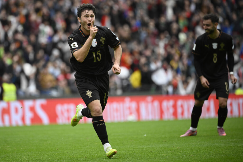 Sans sa star Cristiano Ronaldo, suspendue après son expulsion en Irlande, le Portugal s’est qualifié pour le Mondial-2026 en écrasant l’Arménie (9-1), dimanche à Porto, grâce notamment à des triplés de Bruno Fernandes et Joao Neves.Premier du groupe F avec quatre succès, un nul et une défaite, le Portugal a validé son ticket pour la Coupe du monde de l’été prochain aux Etats-Unis, au Mexique et au Canada, sa neuvième participation à une phase finale.”Nous sommes à la Coupe du monde ! Allez le Portugal !” a écrit le grand absent du match, CR7, sur X.Face à une faible équipe arménienne, dernière du groupe, les Lusitaniens ont démarré fort, avec une ouverture du score dès la 7e minute par le défenseur Renato Veiga, son premier but en sélection.Une dizaine de minutes plus tard, l’Arménie a créé la surprise en égalisant grâce à un but de Spertsyan (18e).Privé de Cristiano Ronaldo, exclu jeudi lors de la défaite contre l’Irlande (2-0) à la suite d’un coup de coude, le Portugal a mis un peu de temps à réagir mais tout est ensuite allé très vite.En deux minutes, les deux joueurs du PSG, l’attaquant Gonçalo Ramos (2-1, 28e) et le milieu de terrain Joao Neves (3-1, 30e) ont creusé l’écart.Juste avant la pause, Neves a marqué à nouveau sur un coup franc magistral laissant Avagyan sans réaction (4-1, 41e). Quelques minutes plus tard Bruno Fernandes a transformé un penalty (5-1, 45e+3).En seconde période, Bruno Fernandes a encore brillé, déclenchant une frappe puissante après un service de Ramos (6-1, 52e). Bruno Fernandes (7-1, 72e) et Joao Neves (8-1, 81e) ont signé chacun un triplé avant que Francisco Conceiçao ne scelle l’éclatante victoire de la Seleçao 9-1, 90e+2). “Maintenant, nous pouvons vraiment rêver de la Coupe du monde. J’ai été très satisfait de la réaction des joueurs”, a réagi le sélectionneur Roberto Martinez.Deuxième du groupe F, l’Irlande, seule équipe à avoir battu le Portugal durant les qualifications, s’est qualifiée pour les barrages en s’imposant en Hongrie 3-2.