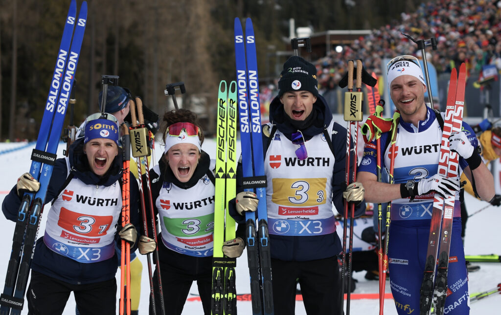 Les relayeurs français Julia Simon, Lou Jeanmonnot, Éric Perrot et Émilien Jacquelin ont remporté mercredi le relais mixte des championnats du monde de biathlon à Lenzerheide (Suisse), conservant leur titre sans trembler.La République tchèque et l’Allemagne complètent le surprenant podium de cette première course des Mondiaux-2025, où les relais norvégiens et suédois n’ont pas été à la hauteur de leurs ambitions.C’est la quatrième fois que la France remporte le titre mondial en relais mixte après 2009, 2016 et 2024.Tombée en début de parcours lors d’un accrochage avec la première relayeuse suédoise, Julia Simon s’est vite ressaisie au tir et a transmis en tête le témoin à Lou Jeanmonnot.”Je suis très fière de moi, d’être restée calme, mon tempérament électrique aurait pu me sortir de la course”, a réagi au micro d’Eurosport Simon, dont c’est le 7e titre mondial à 28 ans (trois en individuel, quatre en relais).Jeanmonnot, N.2 mondiale et six victoires individuelles au compteur cette saison en Coupe du monde, a parfaitement enchaîné, n’allant chercher qu’une fois, comme Julia Simon, une balle de pioche.Perrot a ensuite fait un sans-faute, à l’inverse de Jacquelin qui, sans doute pris par le stress, a dû passer par un tour de l’anneau de pénalité – anecdotique tellement l’avance était confortable: plus d’une minute à l’arrivée sur les poursuivants.Les Norvégiens et les Suédois, autres favoris, ont eux payé cher l’imprécision sur le pas de tir de leurs premières relayeuses, réduisant à néant leurs chances de titre. Dernier relayeur, la star norvégienne Johannes Boe a tout de même failli ramener une médaille de bronze pour son équipe, échouant à trois petites secondes de l’Allemagne.Avant mercredi, deux relais mixte avaient eu lieu cet hiver sur le circuit de Coupe du monde, avec une victoire de la Norvège à Kontiolahti (Finlande) et de la Suède à Oberhof (Allemagne). La France avait terminé deuxième à chaque fois. Lors de ces Mondiaux qui courent jusqu’au 23 février, la France espère se rapprocher de son butin de l’an dernier, quand elle avait gagné 13 médailles dont six en or.