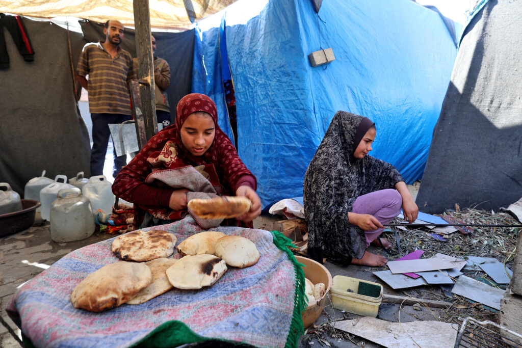 In Gaza, where hunger gnaws and hope runs thin, flour and bread are so scarce that they are carefully divided by families clinging to survival. “Because the crossing points are closed, there’s no more gas and no flour, and no firewood coming in,” said Umm Mohammed Issa, a volunteer helping to make bread with the few resources still available.Israel resumed military operations in the Palestinian territory in mid-March, shattering weeks of relative calm brought by a fragile ceasefire.The United Nations has warned of a growing humanitarian catastrophe unfolding in the besieged territory, where Israel’s blockade on aid since March 2 has cut off food, fuel and other essentials to Gaza’s 2.4 million people. Israel has repeatedly said it will not allow aid in, accusing Hamas of diverting the supplies, a claim the Palestinian militant group denies.Once again, residents have had to resort to increasingly desperate measures to feed themselves.To cook a thin flatbread called “saj”, named after the convex hotplate on which it is made, Issa said the volunteers have resorted to burning pieces of cardboard.”There’s going to be famine,” the Palestinian woman said, a warning international aid groups have previously issued over the course of 18 month of war. “We’ll be in the situation where we can no longer feed our children.”- ‘Bread is precious’ -Until the end of March, Gazans gathered each morning outside the few bakeries still operating, in the hope of getting some bread. But one by one, the ovens cooled as ingredients — flour, water, salt and yeast — ran out.Larger industrial bakeries central to operations run by the UN’s World Food Programme also closed for lack of flour and fuel to power their generators.On Wednesday, World Central Kitchen (WCK) sounded the alarm about a humanitarian crisis that is “grows more dire each day.”The organisation’s bakery is the only one still operating in Gaza, producing 87,000 loaves of bread per day. “Bread is precious, often substituting for meals where cooking has stopped,” it said.”I built a clay oven to bake bread to sell,” said Baqer Deeb, a 35-year-old father from Beit Lahia in northern Gaza.He has been displaced by the fighting, like almost the entire population of the territory, and is now in Gaza City.”But now there’s a severe shortage of flour,” he said, “and that is making the bread crisis even worse.”There is no longer much food to be found for sale at makeshift roadside stalls, and prices are climbing, making many products unaffordable for most people.- ‘Mould and worms’ -Fidaa Abu Ummayra thought she had found a real bargain when she bought a large sack of flour for the equivalent of 90 euros at Al-Shati refugee camp in the north of the territory.”If only I hadn’t bought it,” the 55-year-old said. “It was full of mould and worms. The bread was disgusting.”Before the war, a typical 25-kilo sack like the one she bought would have gone for less than 10 euros.”We are literally dying of hunger,” said Tasnim Abu Matar in Gaza City.”We count and calculate everything our children eat, and divide up the bread to make it last for days,” the 50-year-old added.”We can’t take it any more.”People rummage through debris searching for something to eat as others walk for kilometres (miles) to aid distribution points hoping to find food for their families. Germany, France, and Britain on Wednesday called on Israel to stop blocking humanitarian aid into Gaza, warning of “an acute risk of starvation, epidemic disease and death”. According to the UN humanitarian agency OCHA, displaced people at more than 250 shelters in Gaza had no or little access to enough food last month.Hamas, whose unprecedented October 7, 2023 attack on southern Israel ignited the war, accuses Israel of using starvation as a weapon of war. True to their reputation for resilience after multiple wars, Palestinians in the Gaza Strip have devised countless ways to cope with growing hardship.But in interviews with AFP, many said these improvised solutions often make them feel as though they’ve been thrust back centuries.