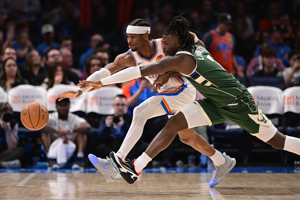 Oklahoma City et Memphis, premier et deuxième de la conférence Ouest, ont été intraitables lundi soir en NBA, dominant sans difficulté Milwaukee et San Antonio, malgré les 27 points inscrits par Victor Wembanyama pour les Spurs.. Bucks et Spurs en terrain hostilePrivé de Giannis Antetokounmpo, Damian Lillard, Brook Lopez, Khris Middleton et Bobby Portis -rien que ça-, Milwaukee a pris la foudre sur le parquet du Thunder, s’inclinant 125-96. L’écart a même atteint 44 unités au cours du troisième quart, dans une rencontre où la star canadienne d’OKC Shai Gilgeous-Alexander n’a eu besoin que d’une grosse vingtaine de minutes pour inscrire 34 points. A l’entame du dernier quart-temps, le Thunder était ainsi sur un rythme de 160 points, mais a logiquement baissé de pied, n’en inscrivant que neuf durant cette ultime période.Cette 39e victoire permet à OKC de garder à distance Memphis, qui a remporté un 34e succès (128-109) face à San Antonio, grâce notamment à Jaren Jackson Jr. (31 pts) et Ja Morant (25 pts, 9 sur 18). En sortie de banc, le jeune GG Jackson (20 ans) a lui aussi brillé (27 pts).Bien qu’en double-double (27 pts, 10 rbds), Wembanyama s’est ainsi retrouvé un peu seul face à ce trio, et les Spurs restent scotchés à la 12e place (21 v., 26 d.).. Les NY Knicks au finishMenés de 11 points par les Rockets au début du dernier quart, les Knicks ont lâché les chevaux et inscrit la bagatelle de 46 points durant cette seule période, parvenant à l’emporter 124-118. Avec 42 points à lui tout seul, Jalen Brunson a été le grand artisan de ce 33e succès de NY, à l’image de ses deux derniers lancers francs, qui ont scellé le sort de la rencontre.”Vous devez être capables de gagner des matches de différentes façons”, a commenté le coach des Knicks, Tom Thibodeau. “On s’est retrouvé dans un tunnel mais on est parvenu à trouver le chemin de la victoire, et j’ai adoré notre réponse dans le quatrième quart-temps”, a-t-il ajouté.Les Knicks (33-17) et les Rockets (32-17) restent 3e de leurs conférences, mais Houston laisse filer OKC et Memphis à l’Ouest quand NY garde le contact avec Boston à l’Est.. Jokic, comme d’habitudePositionné 4e, juste derrière les Rockets, Denver a encore pu profiter d’un Nikola Jokic des grands soirs pour dominer les New Orleans Pelicans 125 à 113. Si Michael Porter Jr. a été le plus prolifique avec 36 points (dont 7/12 à longue distance), le pivot serbe a réalisé son 23e triple-double de la saison (27 pts, 14 rbds, 10 passes).. Phoenix et Golden State au coude-à-coudeA l’Ouest, Phoenix et Golden State restent à égalité (25 v., 24 d.) à la 10e place, après leur victoire respective contre Orlando (104-99) et à Portland. Les deux franchises ont toutefois dû batailler pour cela, les Warriors durant un quatrième quart très indécis et les Suns en prolongation (121-119).Andrew Wiggins (25) et Stephen Curry (24) ont combiné 49 points pour les Californiens. Mais c’est Devin Booker qui a décroché la stat du soir dans l’Oregon en dépassant le record de points pour un joueur de Phoenix, détenu jusqu’ici par Walter Davis (15.666 pts, dans les années 1980).. Soirée réussie pour Coulibaly et RisacherContrairement à Victor Wembanyama, les efforts des Français Bilal Coulibaly et Zaccharie Risacher ont été couronnés de succès. Le premier a été, avec 26 points, le meilleur marqueur des Wizards, vainqueurs des Charlotte Hornets 124 à 114. Le second, dans le sillage de Trae Young (34 pts), a inscrit 17 unités lors du succès à l’arraché des Hawks à Detroit 132-130.Si cette 8e victoire laisse Washington bon dernier, Atlanta (23 v., 27 d.) reste dans la course pour les play-offs.