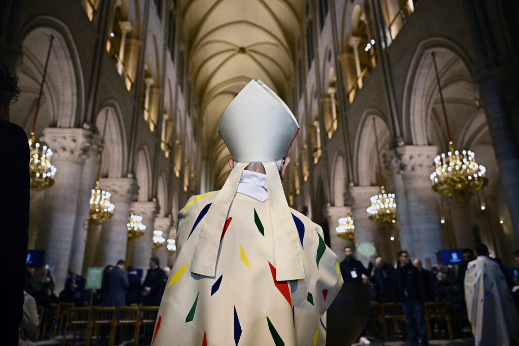 Cinq ans après un incendie ravageur, Notre-Dame de Paris célèbre dimanche matin sa première messe devant un parterre de dirigeants, représentants de l’Eglise, bénévoles et personnes précaires, au lendemain de sa réouverture officielle.Toute de rouge vêtue, une petite croix en or visible par-dessus son écharpe, Monique Kashale, venue de Kinshasa avec son époux, s’est dite “heureuse, sur le parvis, de voir la cathédrale “rénovée”.”Il y a cinq ans, j’ai beaucoup pleuré, parce qu’elle était en feu”, a confié la femme âgée de 75 ans, venue “pour prier” en dépit du froid et de la pluie. “Hier, c’était pour les politiciens, mais aujourd’hui c’est pour nous, le peuple. Pour qu’on vienne dire merci au Seigneur”, ajoute-t-elle.La célèbre cathédrale située au cœur de Paris accueille sa première messe depuis l’incendie ravageur survenu en avril 2019. Après la réouverture en mondovision samedi soir avec une cérémonie à laquelle assistaient des dizaines de chefs d’Etat – dont l’Américain Donald Trump et l’Ukrainien Volodymyr Zelensky, le public, moins nombreux, était massé près des barrières et devant les écrans géants dimanche matin pour suivre cette messe, en ce jour de célébration de L’Immaculée-Conception de la Vierge Marie.Célébrée dès 10H30 (09H30 GMT) par l’archevêque de Paris Laurent Ulrich, elle sera notamment rythmée par la consécration de l’autel et des lectures bibliques, et doit durer plus de deux heures.Au début de la messe, Mgr Ulrich a salué les fidèles “avec une intense émotion”, “que vous soyez présents dans cette cathédrale ou devant un écran, y compris peut être sous la pluie”.Comme la veille, sont autorisés à assister à la messe plusieurs chefs d’Etat, dont Emmanuel Macron, aux côtés de 150 personnes en situation de précarité – qui seront ensuite invités à un déjeuner -, de 150 évêques de France et du monde, ainsi qu’un prêtre de chacune des 106 paroisses parisiennes et des sept églises catholiques de rite oriental.- “Oui” -Le président français, qui a prononcé un discours à l’intérieur de la cathédrale samedi soir, ne communiera pas, a précisé l’Elysée, alors que le respect de la séparation des Eglises et de l’Etat donne régulièrement lieu à des polémiques en France.A l’intérieur de Notre-Dame, Patrick Orhand, bénévole au secours catholique 68 ans, est venu “rendre hommage à toutes ces personnes, pour l’énergie qu’elles ont mises à restaurer Notre-Dame”. Le retraité, émerveillé, “a regardé toute la journée à la télé (samedi)” la cérémonie de réouverture.Non loin, Florence Leroux, 51 ans, est l’une des fidèles venues représenter sa paroisse de Saint-Pierre de Montmartre. Au début “je ne pensais pas pouvoir venir. Quand on m’a proposé d’être porte bannière, j’ai tout de suite dit oui”, se réjouit-elle.L’accès à la messe du matin s’est fait sur invitation. Et si la seconde, à 18H30 (17H30 GMT), est prévue pour le grand public, une réservation est nécessaire pour y accéder. La billetterie ayant été prise d’assaut dès son ouverture mardi matin, plus aucun créneau n’est disponible, ni pour la messe de dimanche, ni pour celles de la semaine suivante.- “Gratuitement” -Le diocèse organise jusqu’au week-end prochain une semaine d'”octave” avec deux messes quotidiennes, à 10H30 et 18H30 locales. Un point fort de la semaine sera le retour, vendredi après-midi, de la couronne d’épines à Notre-Dame.Pour les visiteurs souhaitant admirer les murs blonds, le mobilier minimaliste et les vitraux partiellement restaurés sans pour autant assister à une messe, l’accès à la cathédrale sera possible à partir de lundi 15H30 (14H30 GMT) – là aussi sur réservation.Après ces cérémonies de réouverture, l’affluence devrait durer, le diocèse de Paris attendant désormais de 14 à 15 millions de visiteurs chaque année.Le pape François a plaidé samedi pour continuer à accueillir “gratuitement” les visiteurs, alors que la ministre française de la Culture démissionnaire Rachida Dati a lancé un pavé dans la mare en évoquant une entrée payante.Le souverain pontife s’exprimait par écrit, ayant décliné l’invitation à cette cérémonie fastueuse – une absence d’autant plus remarquée qu’il se rendra le week-end prochain en Corse, à l’occasion d’un modeste colloque sur la religiosité populaire.Le dispositif de sécurité exceptionnel reste inchangé dimanche, avec 6.000 policiers et gendarmes mobilisés, selon une source sécuritaire.