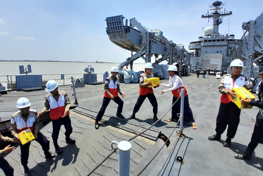 La marine indienne a livré samedi des centaines de tonnes d’aide alimentaire à la Birmanie, frappée par un séisme, au lendemain d’une rare rencontre entre le Premier ministre indien Narendra Modi et le chef de la junte militaire, Min Aung Hlaing. L’Inde a été parmi les premiers pays à envoyer d’urgence de l’aide et des équipes de secours chez son voisin après le séisme de magnitude 7,7 du 28 mars qui a fait plus de 3.300 morts à ce jour.Plus d’une semaine après la catastrophe, les survivants, désespérés, manquent toujours de nourriture et d’abris. La dernière aide en provenance de l’Inde comprenait 442 tonnes de nourriture, dont du riz, de l’huile de cuisson, des pâtes et des biscuits, a indiqué l’ambassade d’Inde à Rangoun.Vendredi, M. Modi a eu une rare rencontre en face à face avec M. Hlaing à Bangkok, en marge du sommet régional Bimstec, le groupement des sept nations du golfe du Bengale. “L’Inde fait tout son possible pour aider nos frères et sœurs du Birmanie en cette période critique”, a déclaré M. Modi dans un communiqué du gouvernement.Selon le ministère indien des Affaires étrangères, M. Modi a déclaré au chef de la junte militaire qu’il n’y avait “pas de solution militaire au conflit”, alors que le pays est en proie à des troubles accrus depuis le coup d’Etat de 2021.Le dirigeant indien a souligné “l’importance d’un rétablissement rapide d’un processus démocratique par le biais d’élections inclusives et crédibles”.Le général Min Aung Hlain avait lancé un rare appel à l’aide internationale après le séisme, témoignant de la gravité de la crise.Mercredi, la junte birmane a annoncé un cessez-le-feu temporaire pour faciliter les secours après le séisme dévastateur.Les précédents régimes militaires du pays ont refusé toute aide étrangère, même après des catastrophes naturelles majeures.