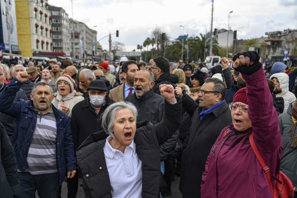 “On est en dictature”, lâche Kuzey, un commerçant d’une rue donnant sur l’emblématique place Taksim d’Istanbul, dont le maire d’opposition, principal rival du président Recep Tayyip Erdogan, a été arrêté mercredi matin pour “corruption”.Le quadragénaire en jean et veste noire, qui vient tout juste de lever le rideau, ne décolère pas contre le chef de l’Etat au pouvoir depuis 2003 et dénonce l’arrestation d’Ekrem Imamoglu, selon lui purement politique.”Ce gars et sa sale bande nous haïssent. Dès qu’ils ont affaire à quelqu’un de fort, ils font quelque chose d’illégal, ils paniquent”, fustige-t-il.”Mais nous, les Turcs, sommes un peuple fort, nous avons l’habitude de nous battre”, enchaîne-t-il en surveillant d’un oeil des policiers marchant en direction de la place Taksim.Quatre camions antiémeutes équipés de canons à eau sont alignés en haut des marches surmontant la vaste place, autour de laquelle des barrières métalliques ont été dressées mercredi matin pour empêcher tout rassemblement sur ce lieu devenu l’épicentre, en 2013, d’une vague de contestation contre M. Erdogan, alors Premier ministre.”Nous traversons une mauvaise passe, et je ne sais pas quelle sera la prochaine étape. On ne sait jamais ce qu’ils préparent… Je suis en colère, mais que pouvons-nous faire ?”, s’interroge Mustafa, un passant filant d’un pas pressé vers la place Taksim.Une rue plus bas, sous son béret gris, un retraité déplore lui aussi l’arrestation du maire d’Istanbul et de plus d’une centaine de ses collaborateurs, élus et membres de son parti. “Je suis triste pour mon pays”, balaye-t-il avant de poursuivre, refusant comme beaucoup de donner son nom et prénom. – “Pays sans justice” -Devant le siège de la police où l’édile est détenu depuis le lever du jour, plusieurs centaines de personnes, maintenues à distance par des barrières de la police, ont convergé aux cris de “Imamoglu tu n’es pas seul!”, “Gouvernement Démission!”, ou promettant encore: “Un jour le vent tournera et l’AKP (le parti au pouvoir, ndlr) rendra des comptes au peuple”.Sur l’avenue Istiklal, principale artère piétonne de la ville, les bureaux de change où se pressent à longueur d’années les touristes ont le tournis.L’arrestation du maire de la ville a donné le vertige à la déjà très volatile livre turque, qui a atteint un nouveau plus bas historique face au dollar et à l’euro dans la matinée.Devant l’un des bureaux de change, Hasan Yildiz, 63 ans, écarquille les yeux et dénonce comme l’opposition un “coup d’Etat” contre son maire, qui devait être investi dimanche candidat du Parti républicain du peuple (CHP, social-démocrate), principale formation de l’opposition, pour la prochaine présidentielle prévue en 2028.”Autrefois, c’étaient les soldats qui menaient des coups d’Etat, mais aujourd’hui ce sont les politiques qui les fomentent les uns contre les autres”, déclare-t-il d’une voix calme, indifférent à la voiture de police stationnée dix mètres plus loin.”Les investisseurs étrangers ne vont plus investir en Turquie. Qui voudrait investir dans un pays sans justice ni Etat de droit ?”, ajoute-t-il derrière ses fines lunettes rondes.”Je ne suis même plus surpris. On va bientôt atteindre 50 livres pour un euro”, prédit Emre, un employé du quartier. “Et cela va se répercuter sur le prix du pain, sur le prix de tout. Tout ça à cause des actions injustes décidées par un seul homme”.”Je suis furieuse” lâche Zeynep Kara, retraitée de 68 ans: pour elle, “les raisons (de cette arrestation) sont évidentes .. mais il fallait lui trouver un prétexte”. “La situation ne va pas en s’améliorant”, conclut-elle.
